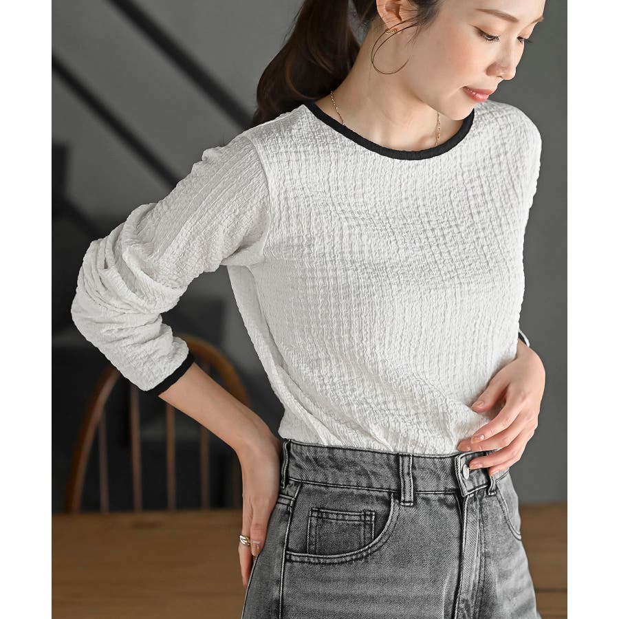 配色ふくれジャガードアソートカットソー