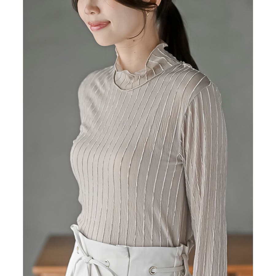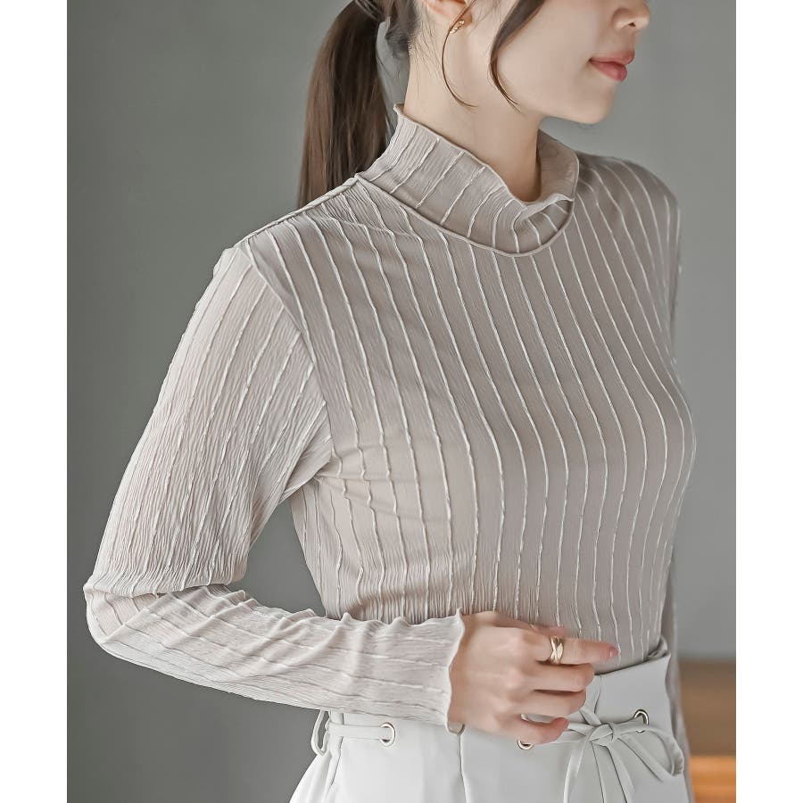 シアーストライプハイネックカットソー