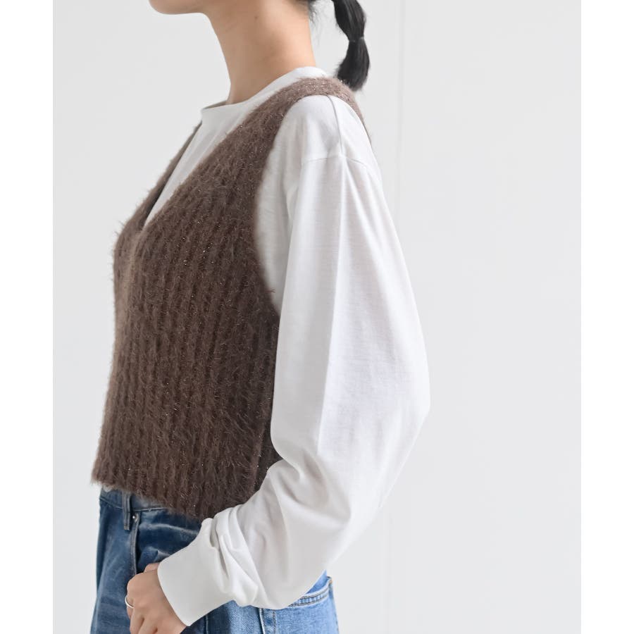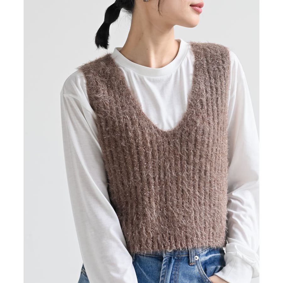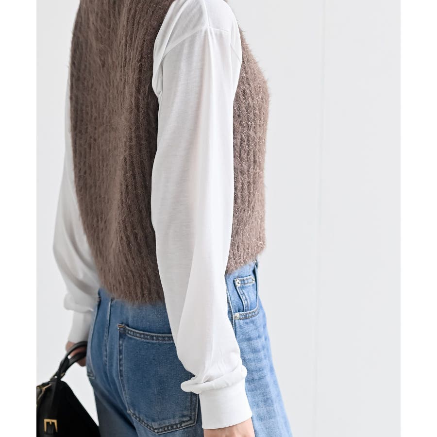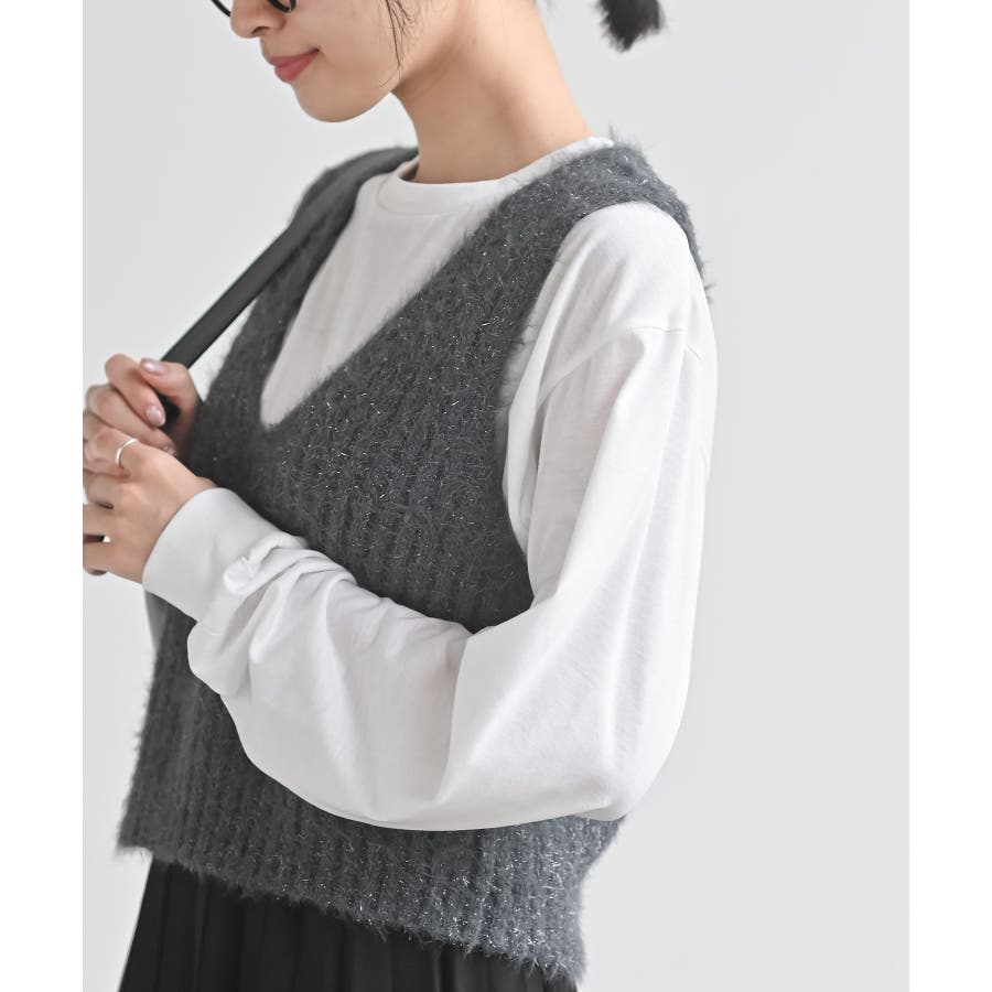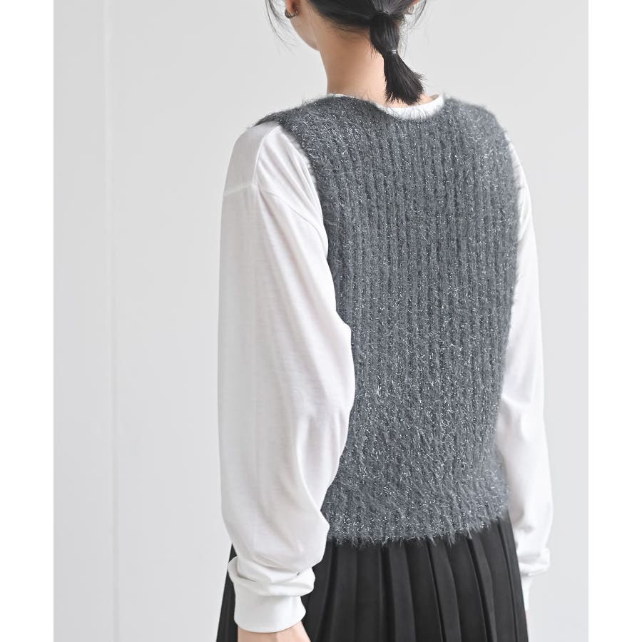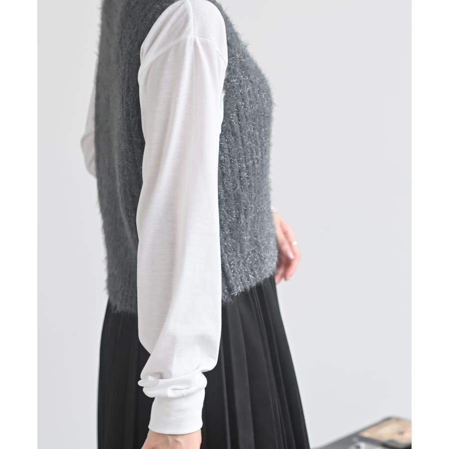 Tシャツセットラメフェザーベストアンサンブル