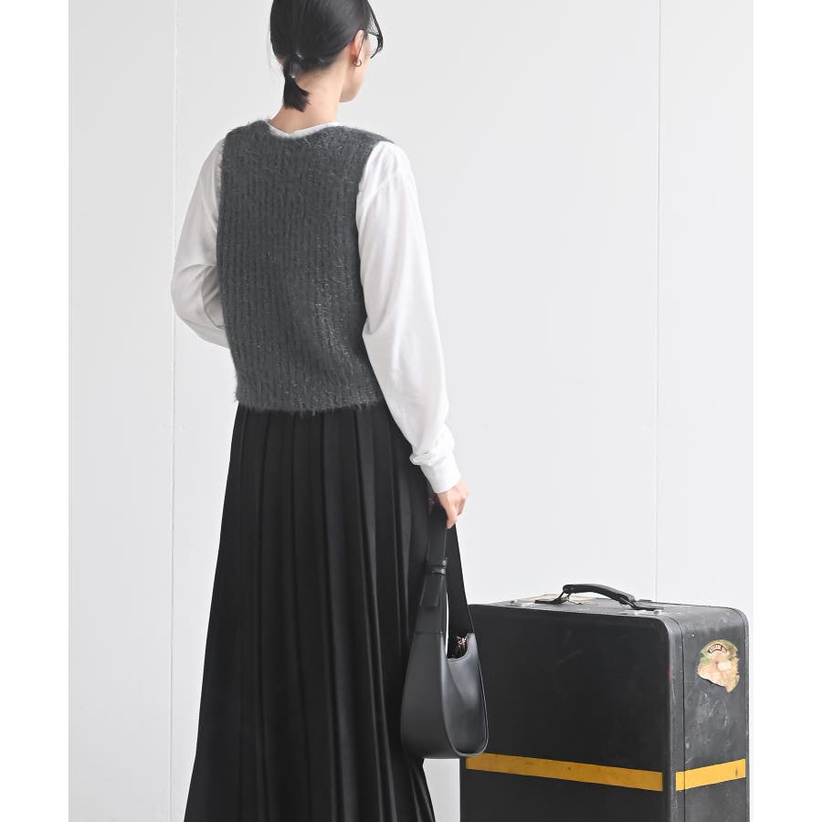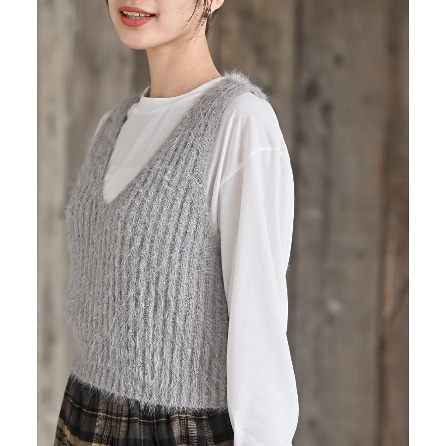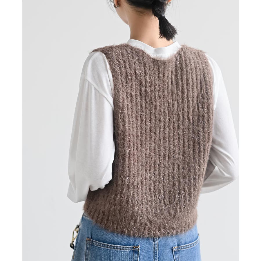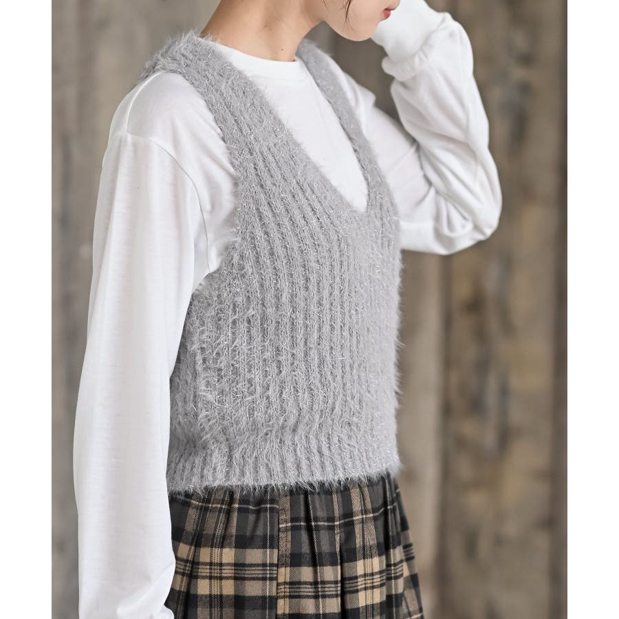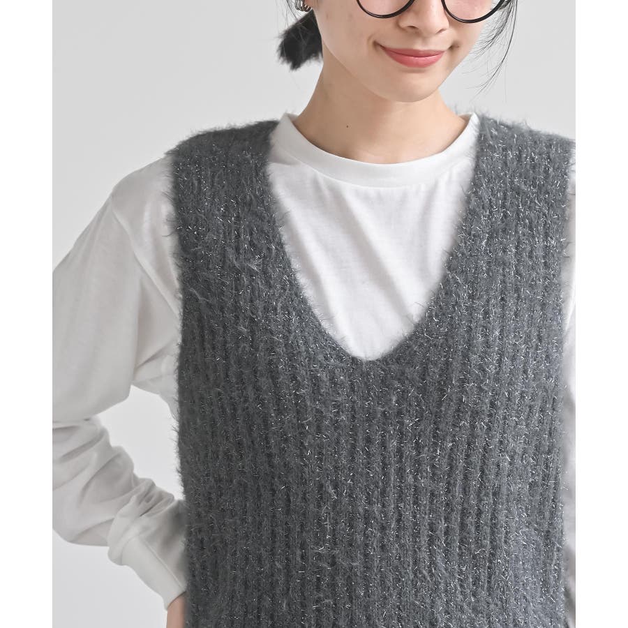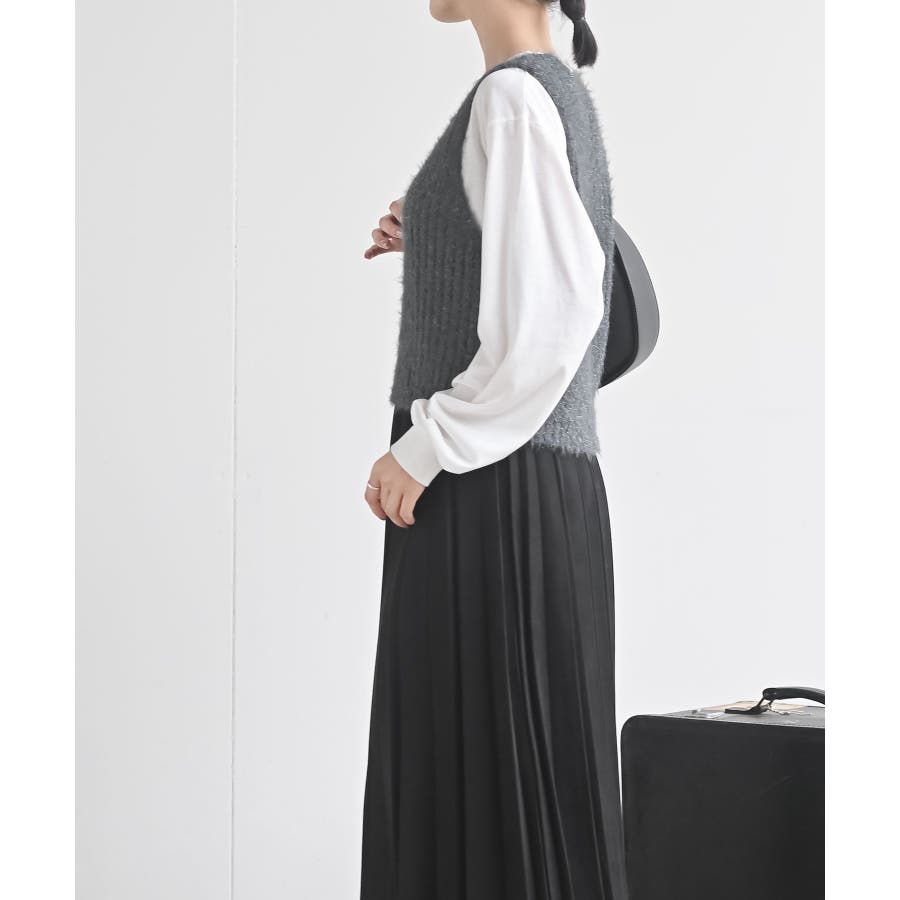 Tシャツセットラメフェザーベストアンサンブル