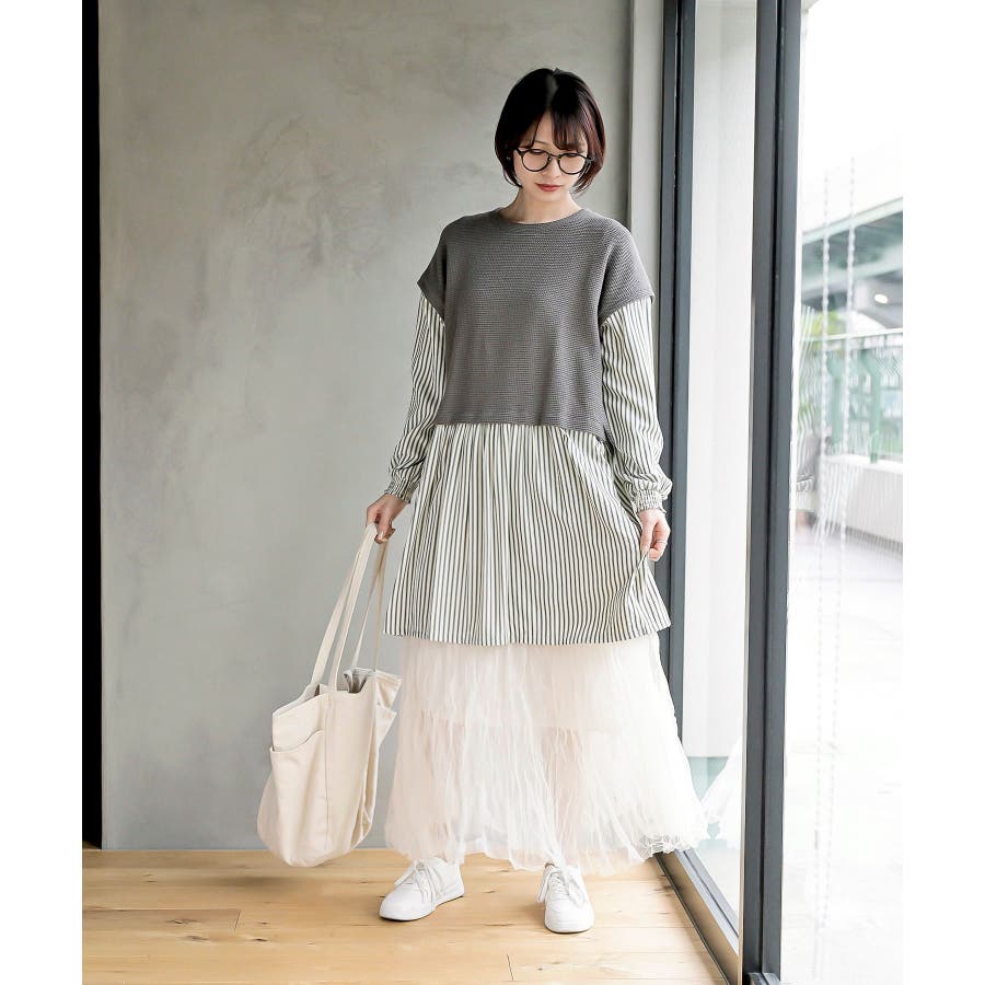 ニットソーベストレイヤード風チュニック