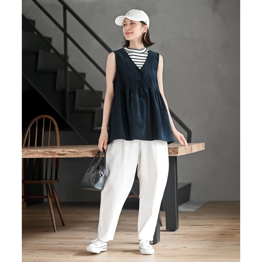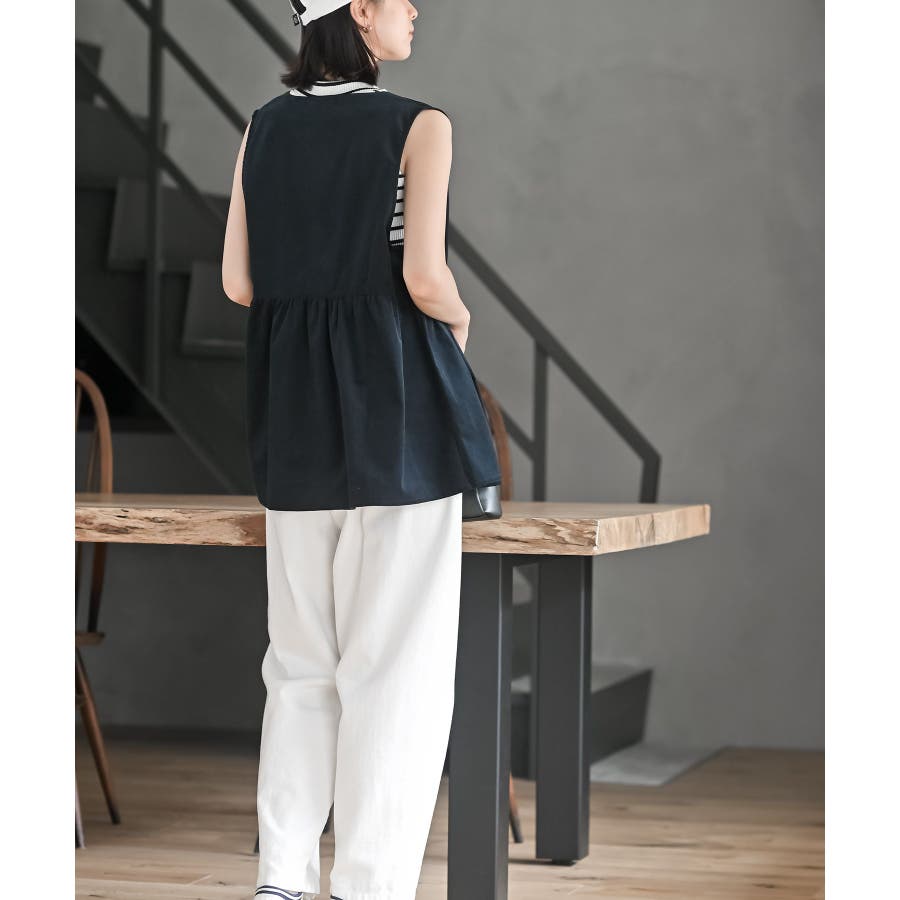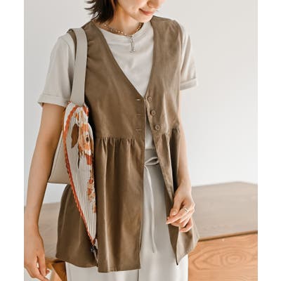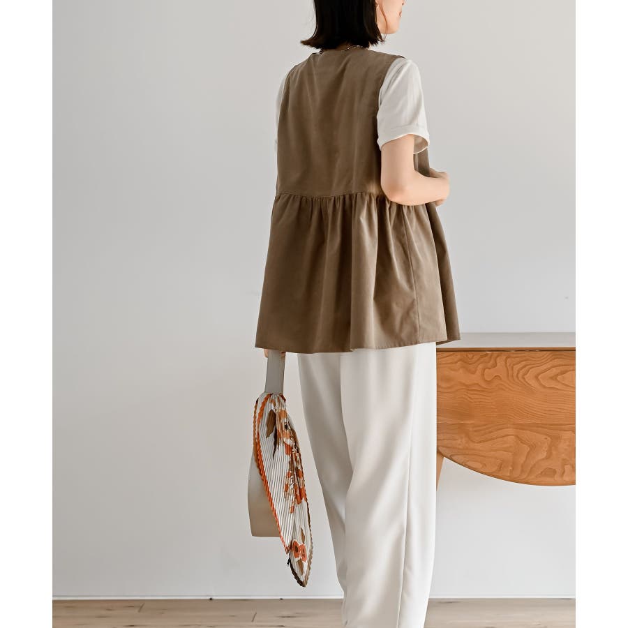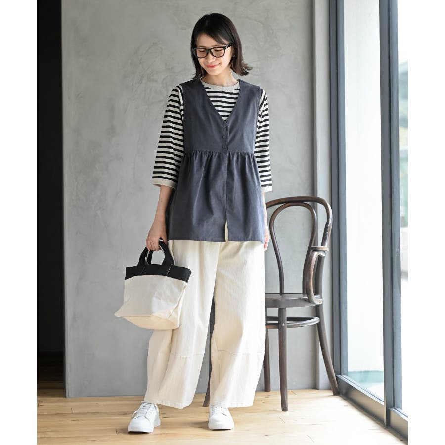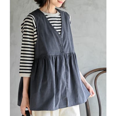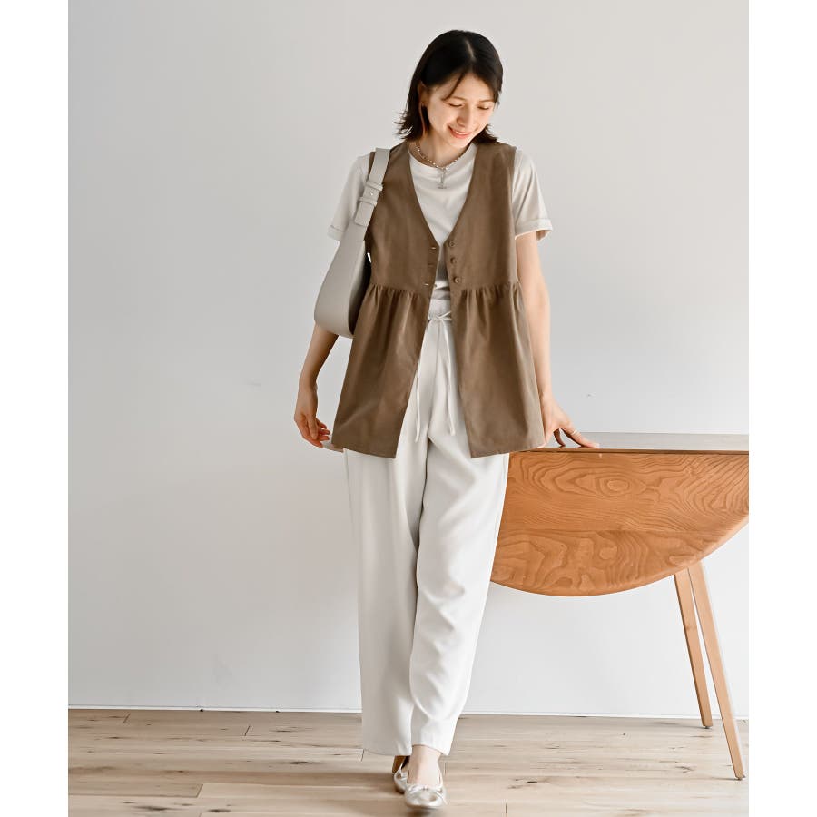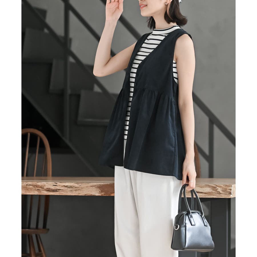 ★2025/AW NEW★プラスワンで季節感の生まれるコーデュロイベストシーズンムードを高めてくれるコーデュロイのベスト。細畝の素材なのでカジュアルになり過ぎず幅広いスタイリングにお使いいただけます。ウエストからふわっと広がる女性らしいペプラムシルエット。薄手で軽く、裏地もないのでロングシーズンお楽しみいただけるアイテムになっています。裏地なし伸縮性なし薄手前開きボタン留めポケットなし織キズやだま等みられる場合もございます洗濯:洗濯機使用可
