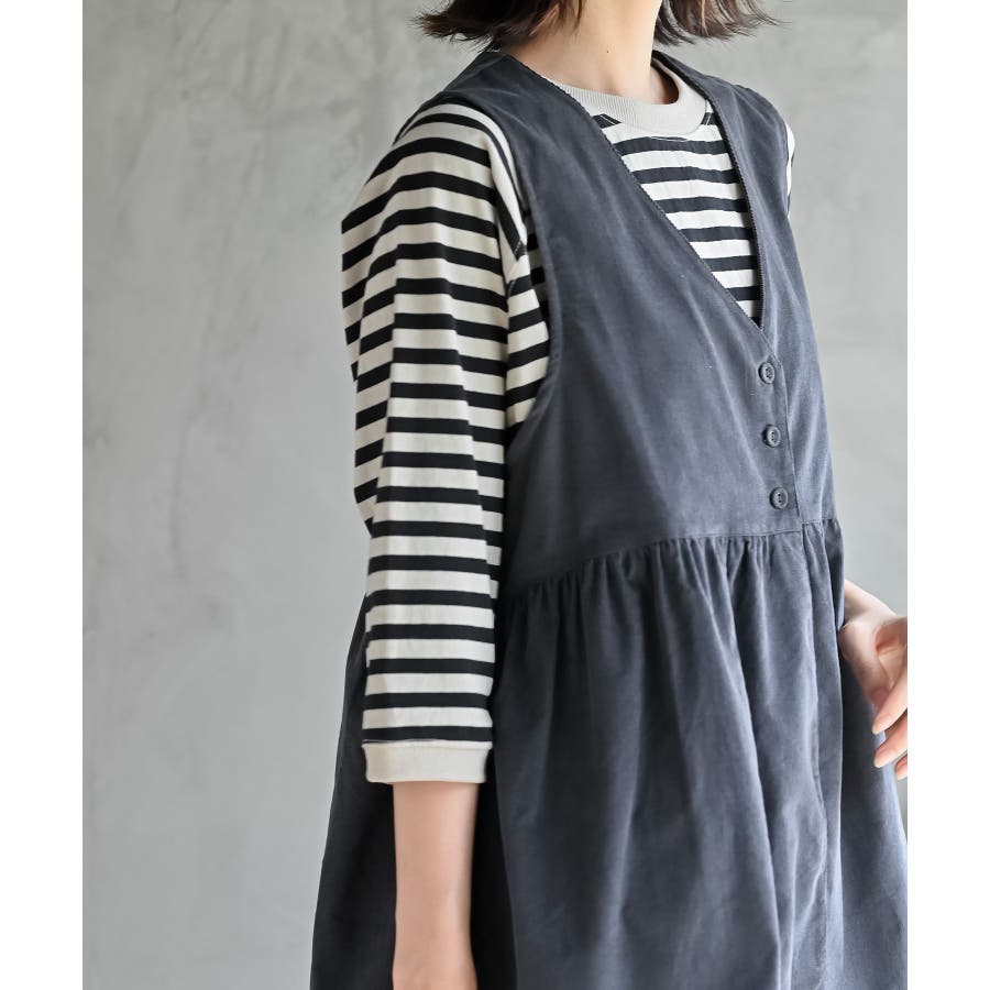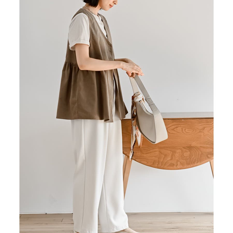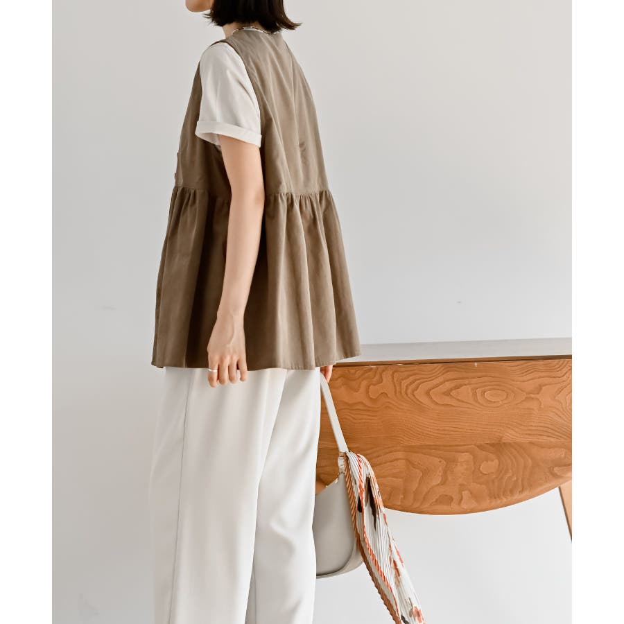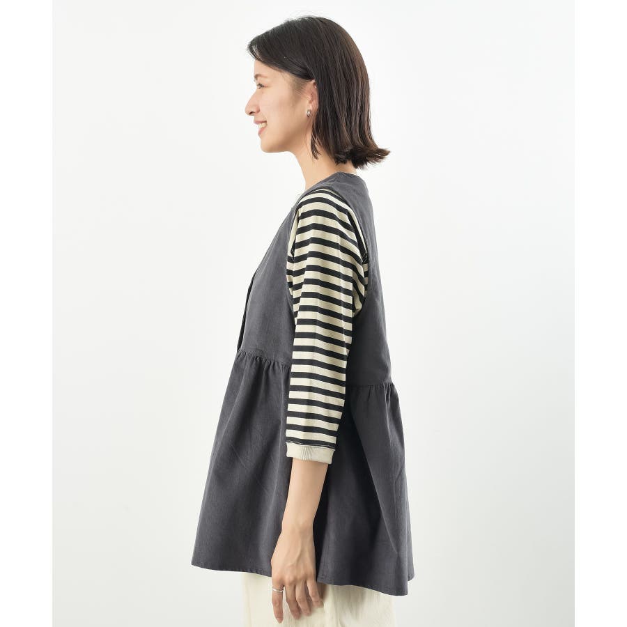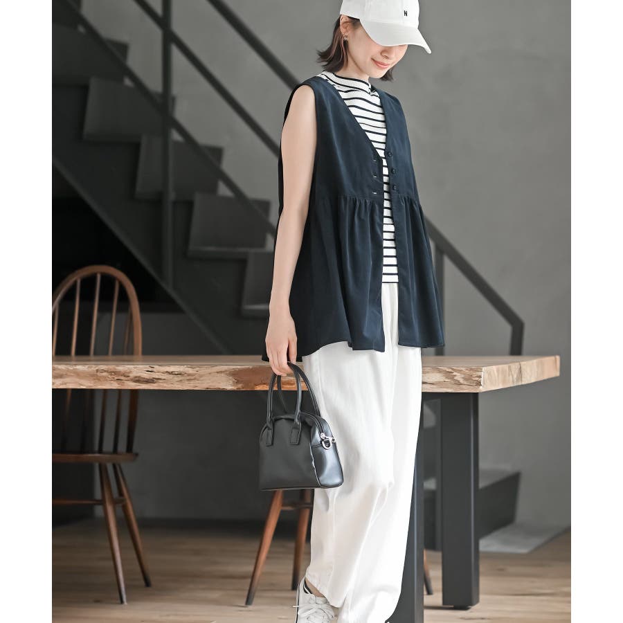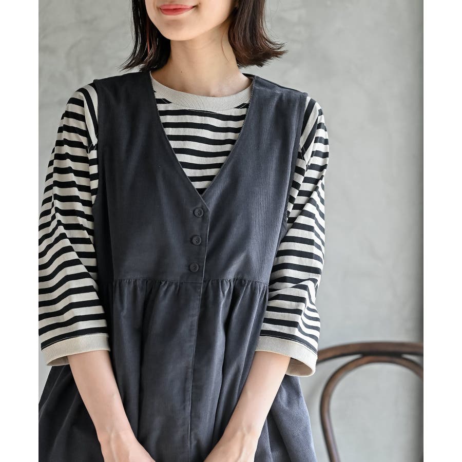 ★2025/AW NEW★プラスワンで季節感の生まれるコーデュロイベストシーズンムードを高めてくれるコーデュロイのベスト。細畝の素材なのでカジュアルになり過ぎず幅広いスタイリングにお使いいただけます。ウエストからふわっと広がる女性らしいペプラムシルエット。薄手で軽く、裏地もないのでロングシーズンお楽しみいただけるアイテムになっています。裏地なし伸縮性なし薄手前開きボタン留めポケットなし織キズやだま等みられる場合もございます洗濯:洗濯機使用可
