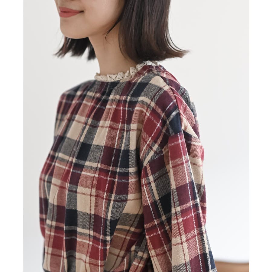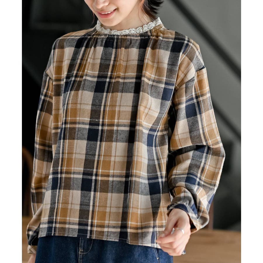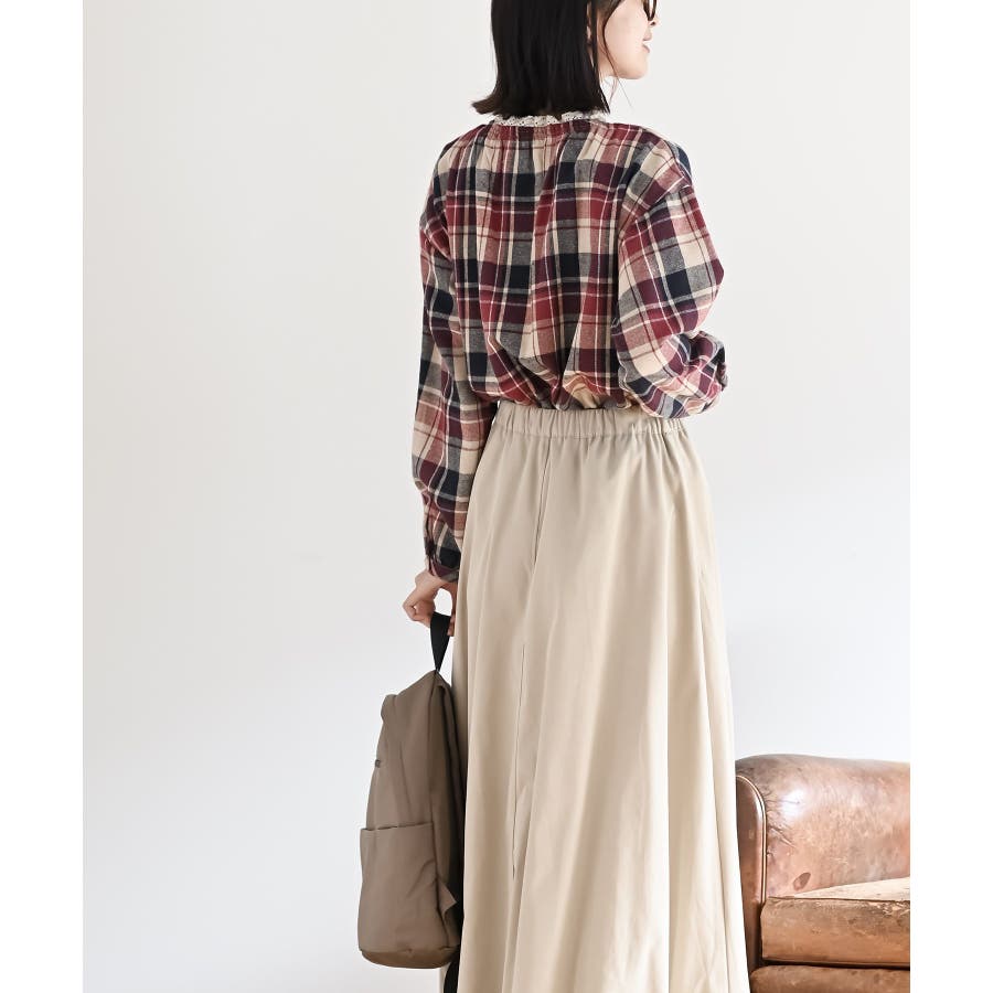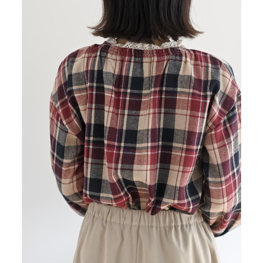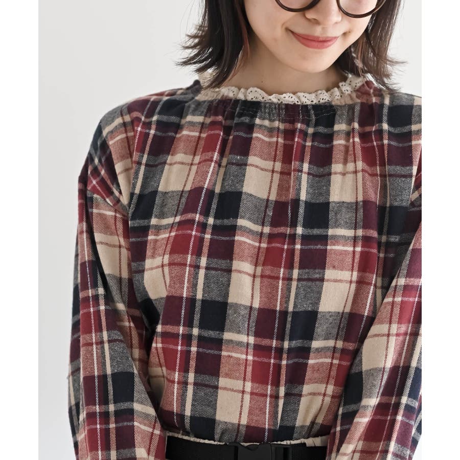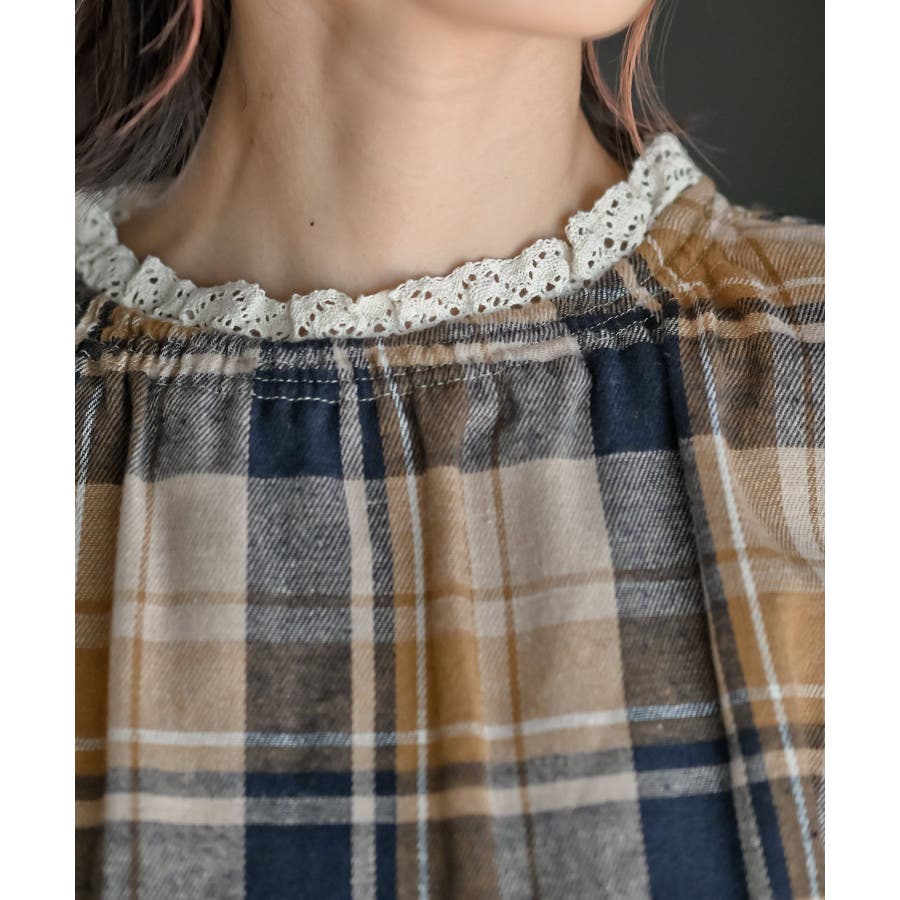 | 素材 | 本体: (マスタード・レッド) ポリエステル70%, 綿30%, (ブラウン・ネイビー) ポリエステル80%, 綿20%, レース部分: 綿100% |