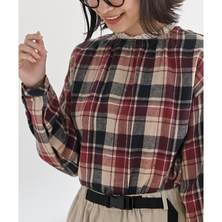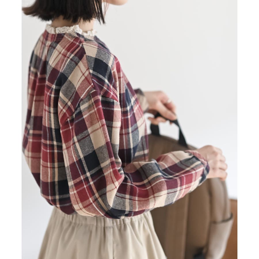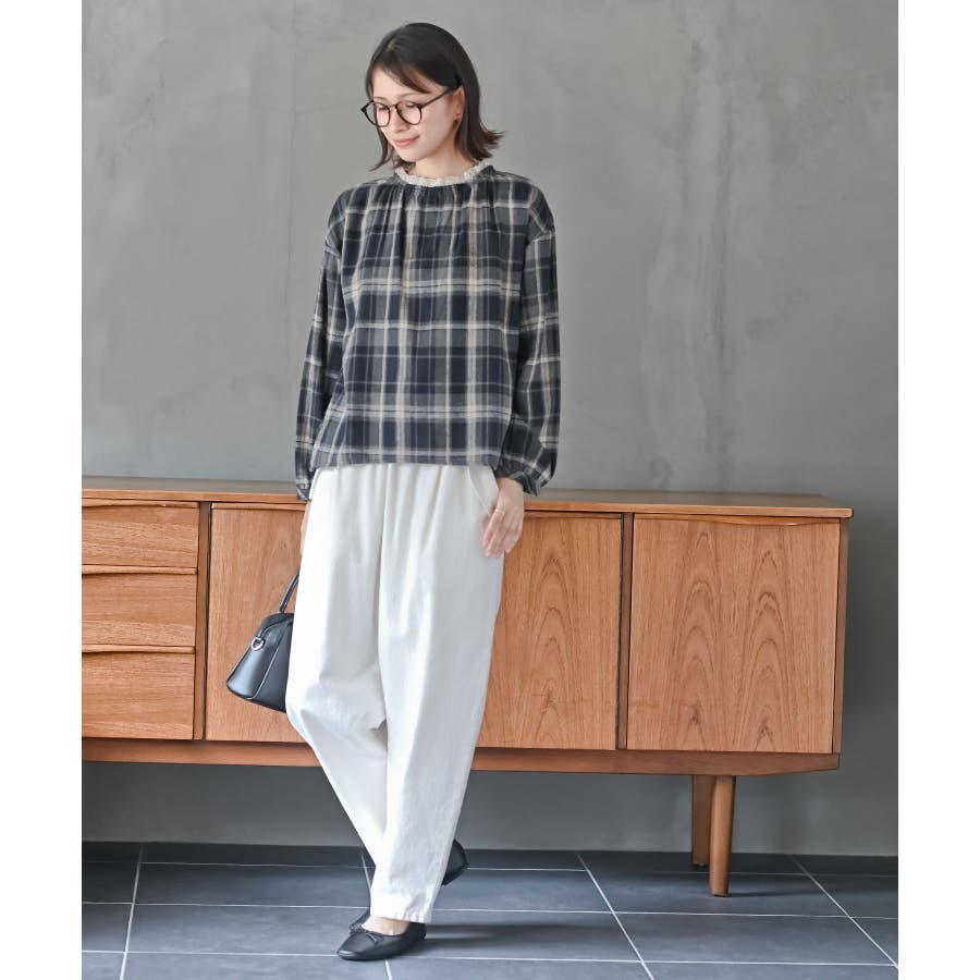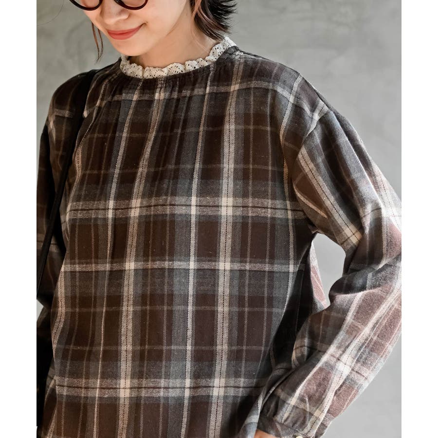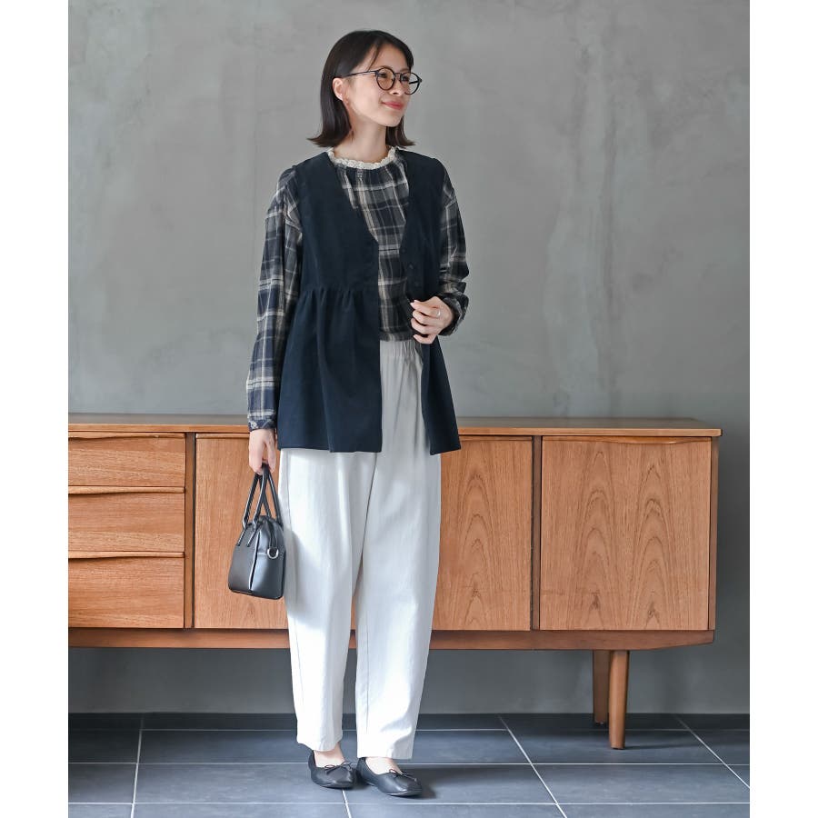 | 素材 | 本体: (マスタード・レッド) ポリエステル70%, 綿30%, (ブラウン・ネイビー) ポリエステル80%, 綿20%, レース部分: 綿100% |