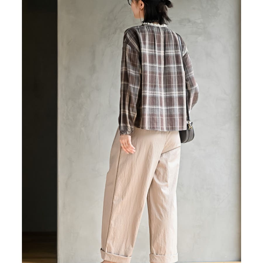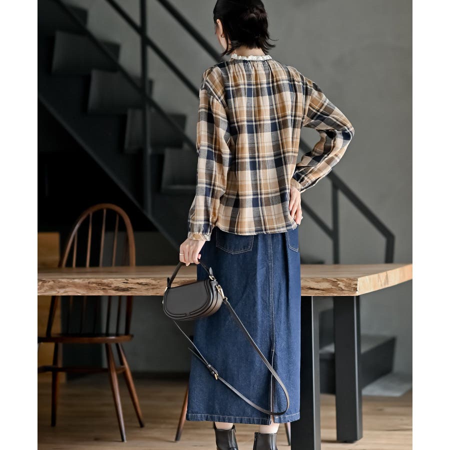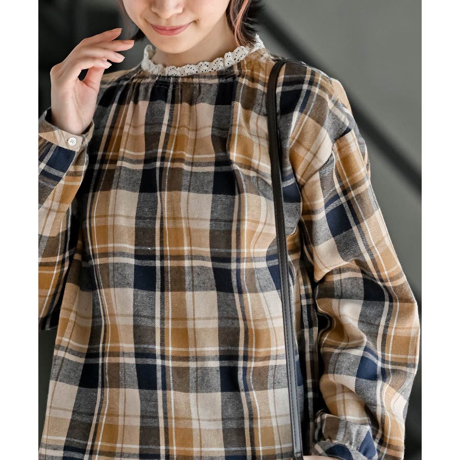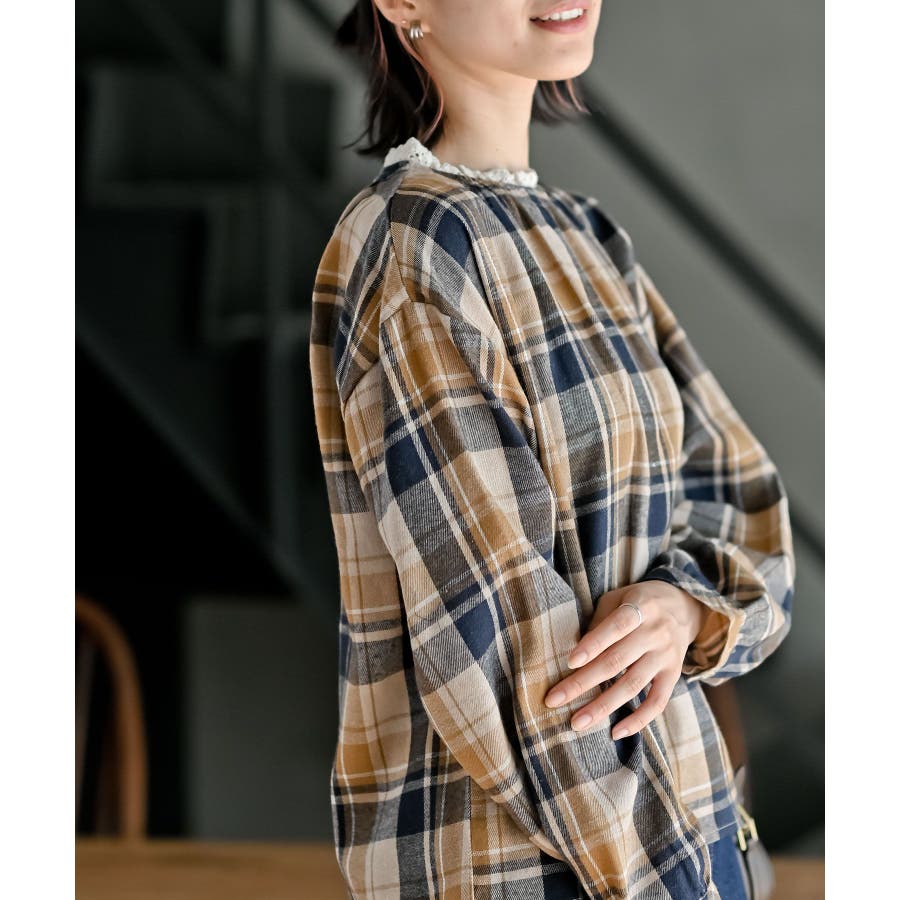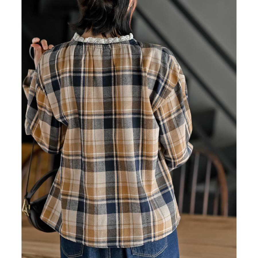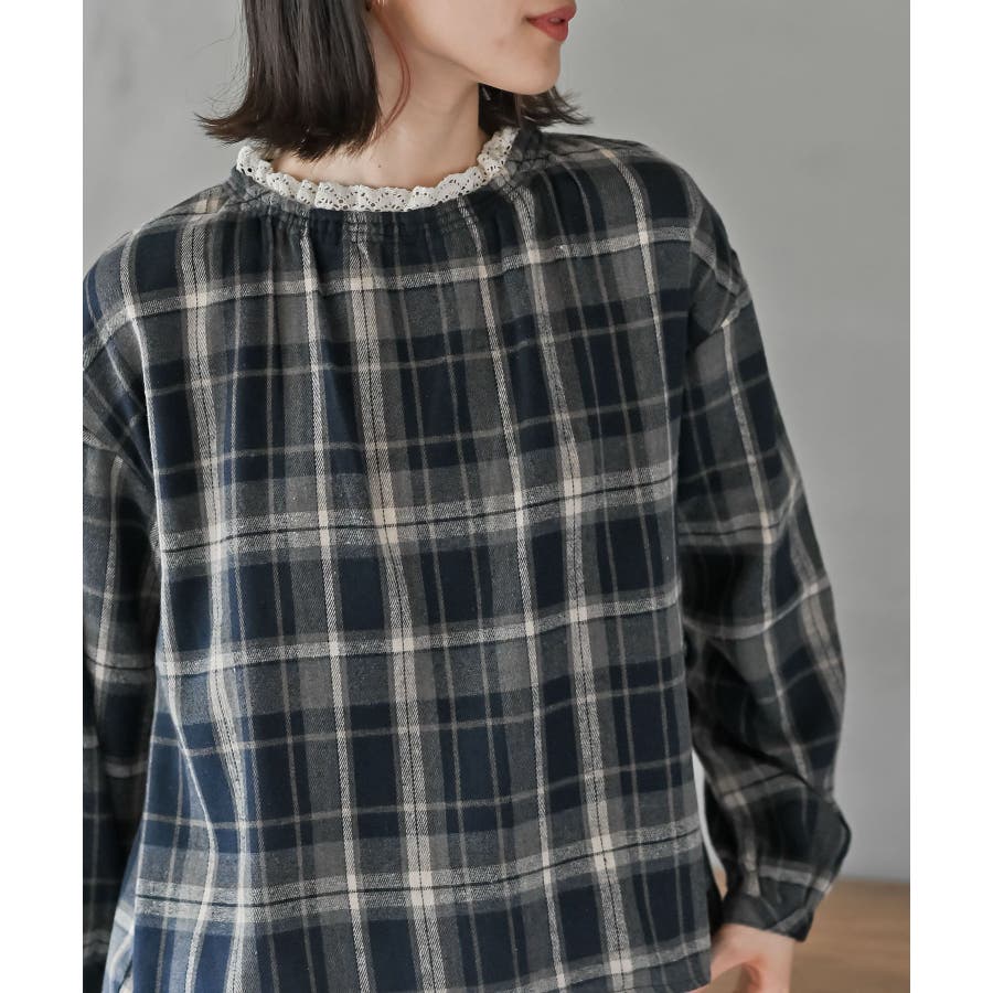 | 素材 | 本体: (マスタード・レッド) ポリエステル70%, 綿30%, (ブラウン・ネイビー) ポリエステル80%, 綿20%, レース部分: 綿100% |