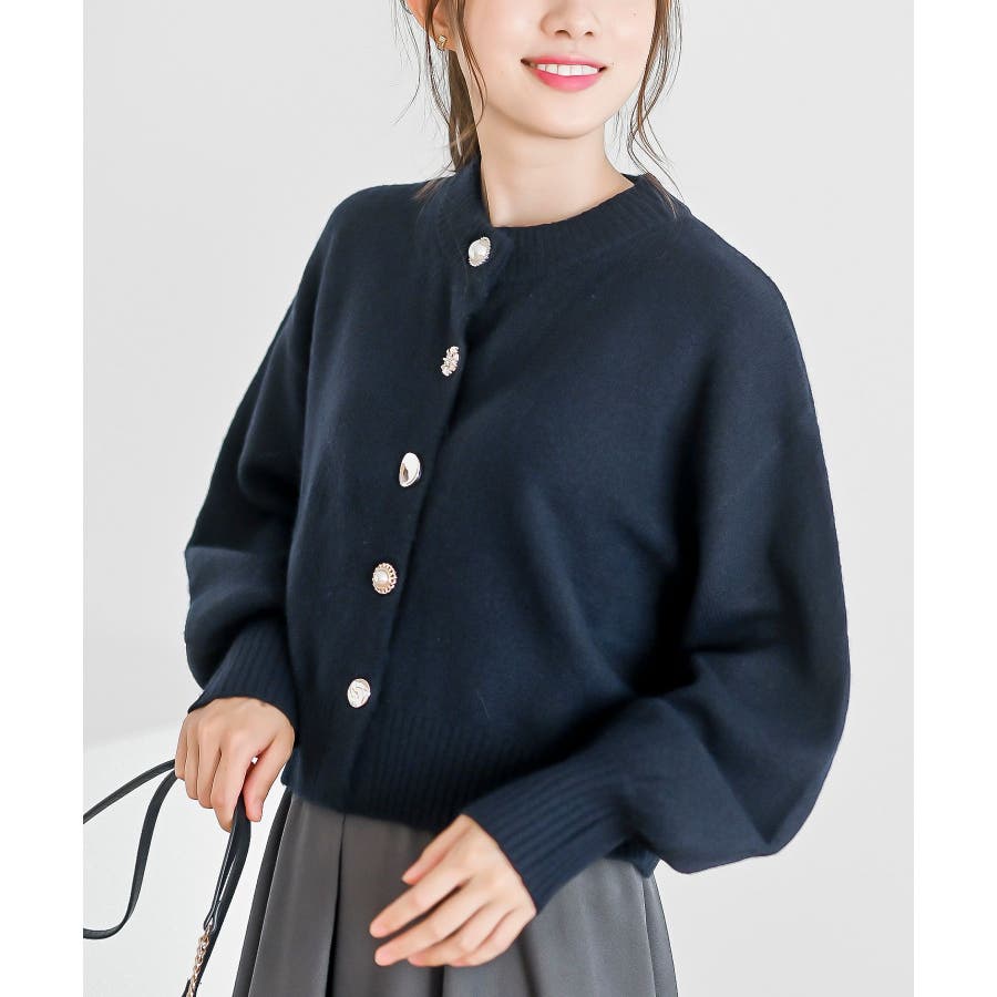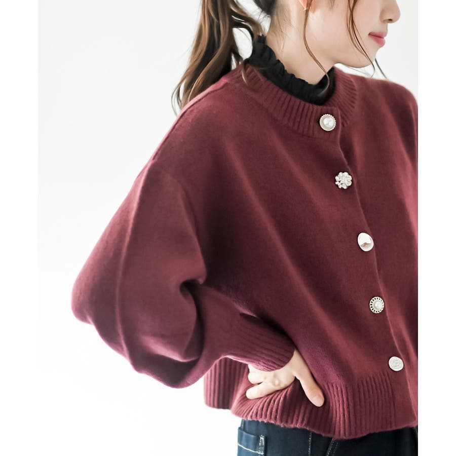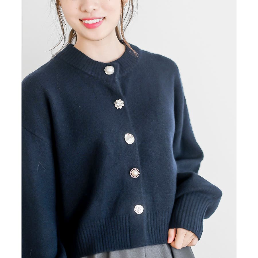 多釦ショート丈ニットカーディガン