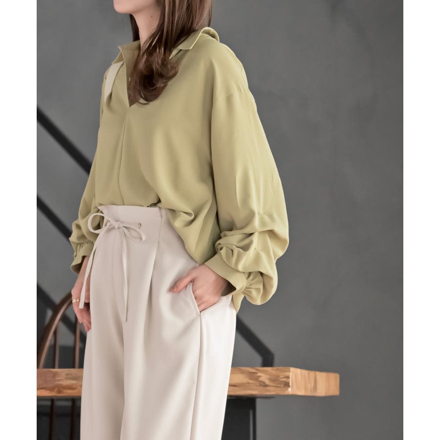 変形袖タックスキッパーブラウス
