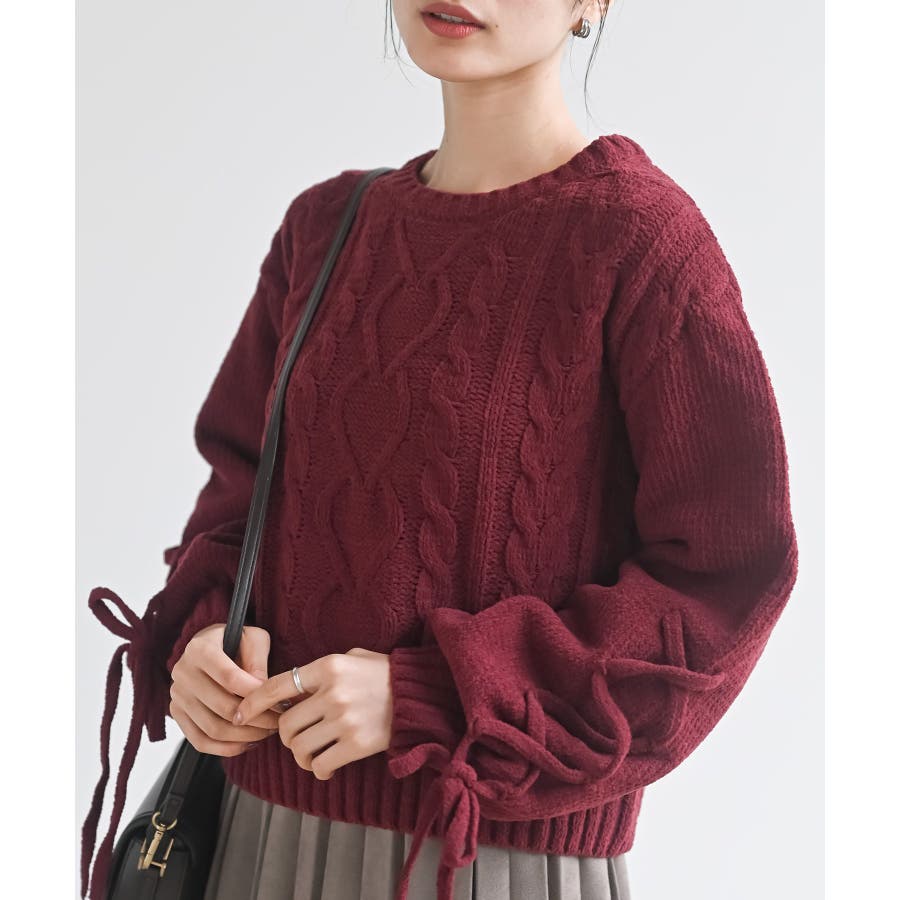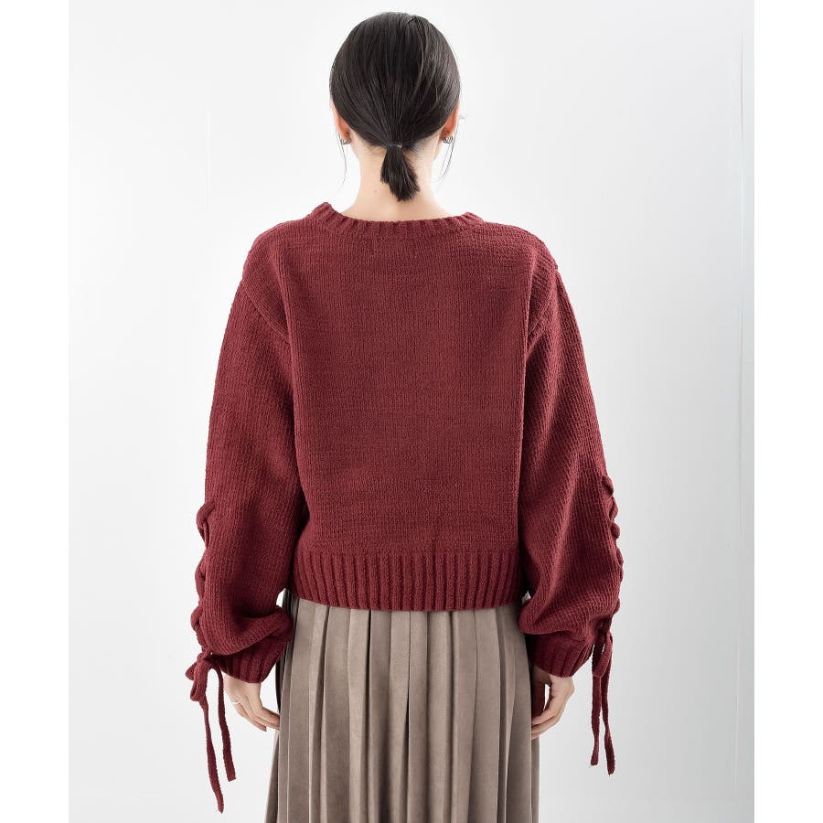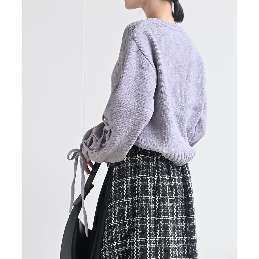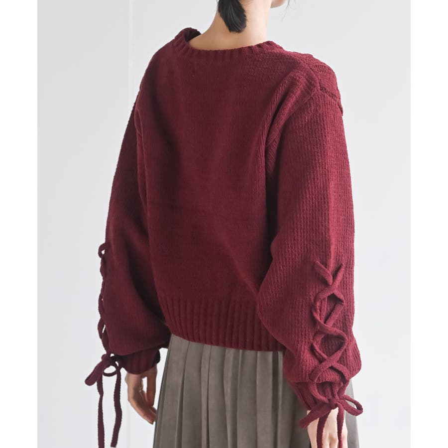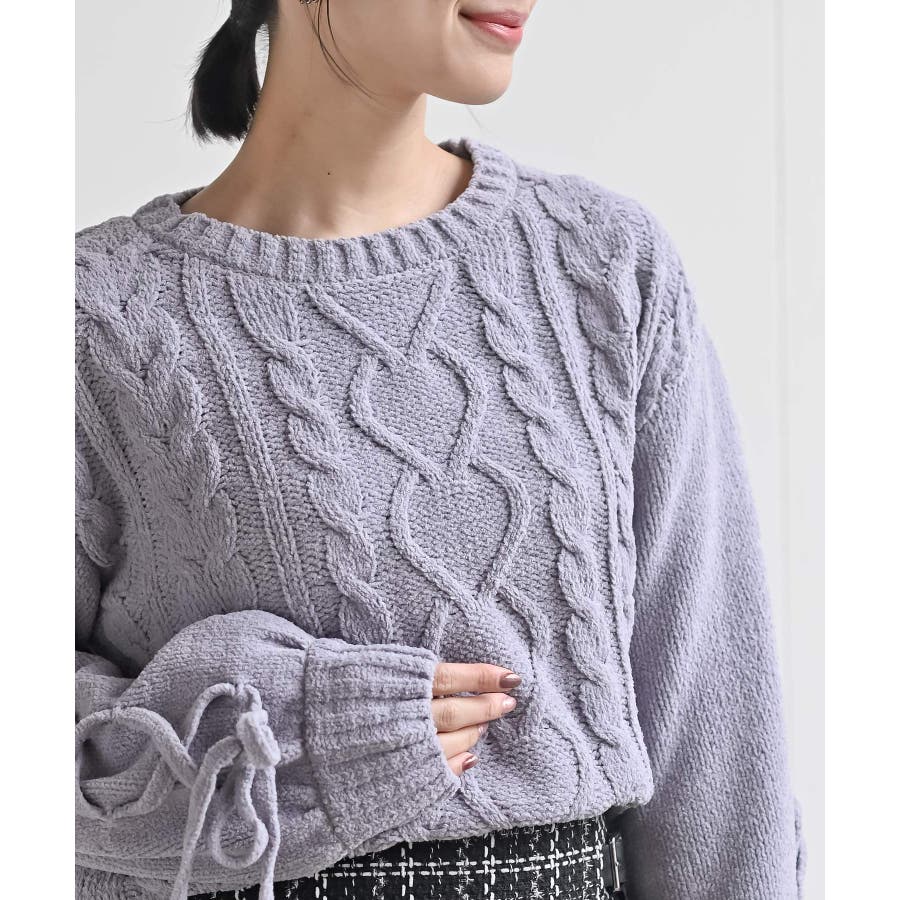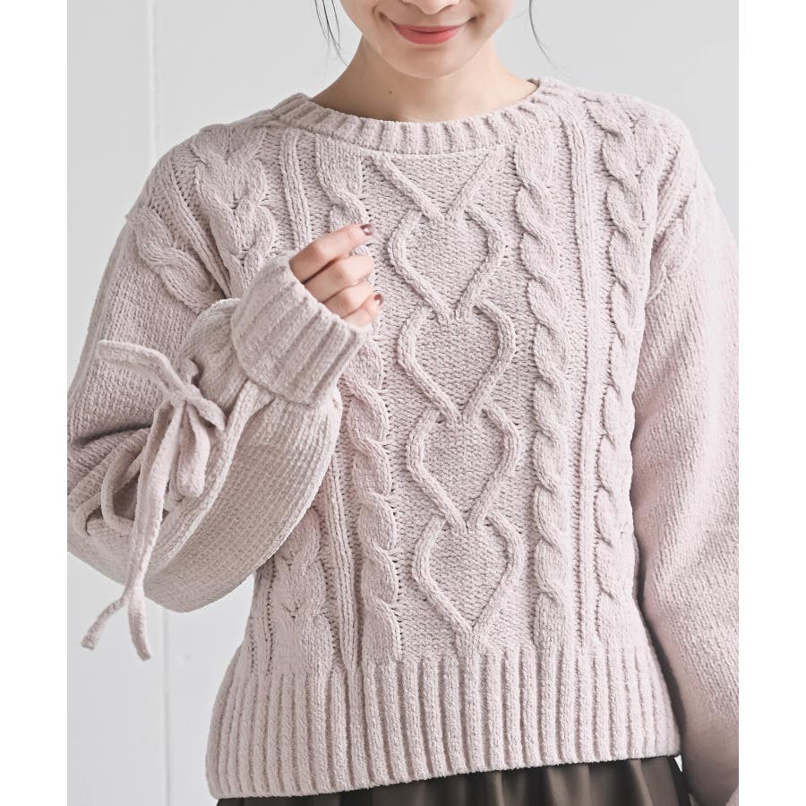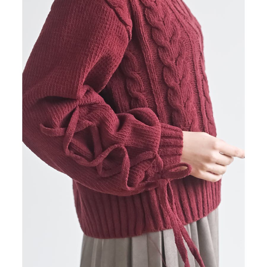 レースアップスリーブケーブルモールニットプルオーバー