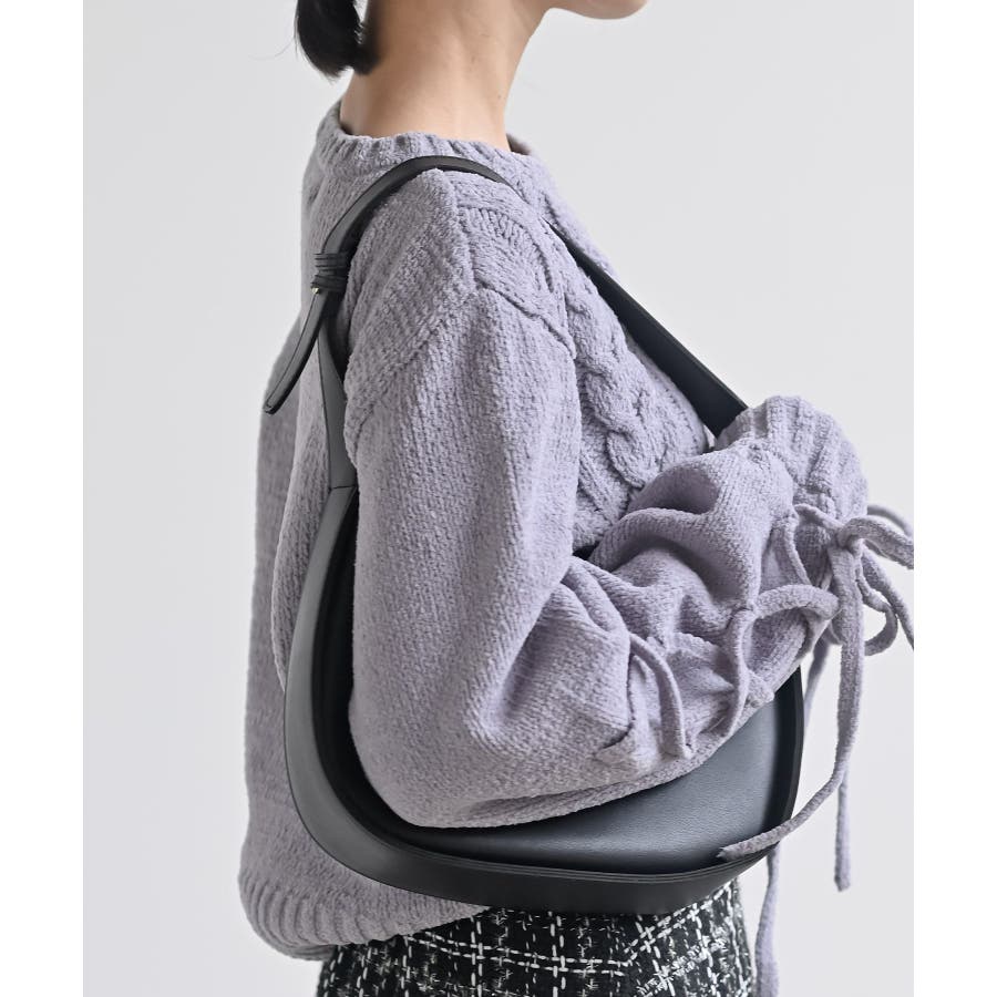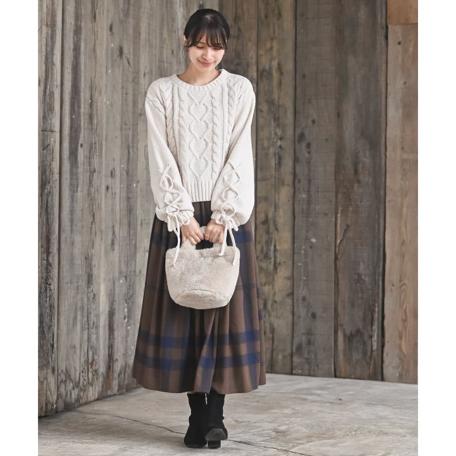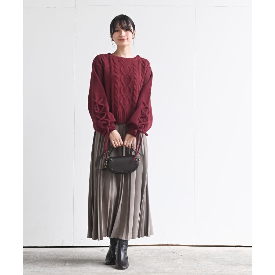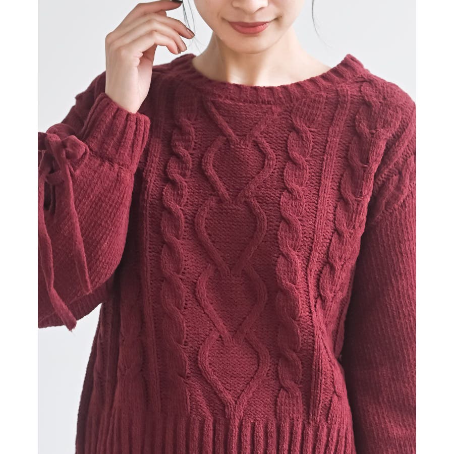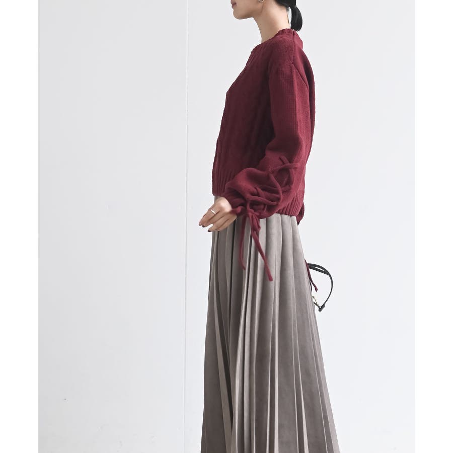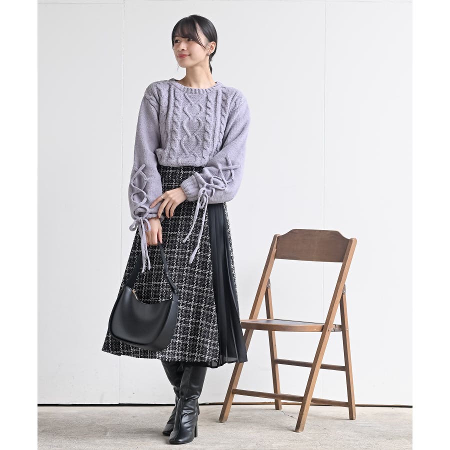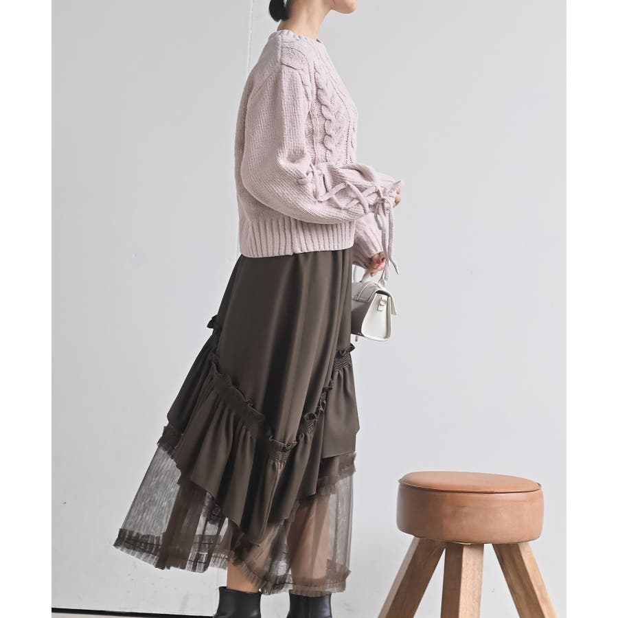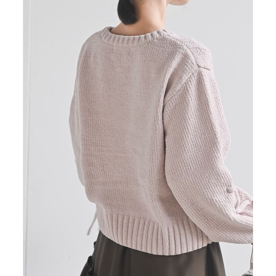 レースアップスリーブケーブルモールニットプルオーバー