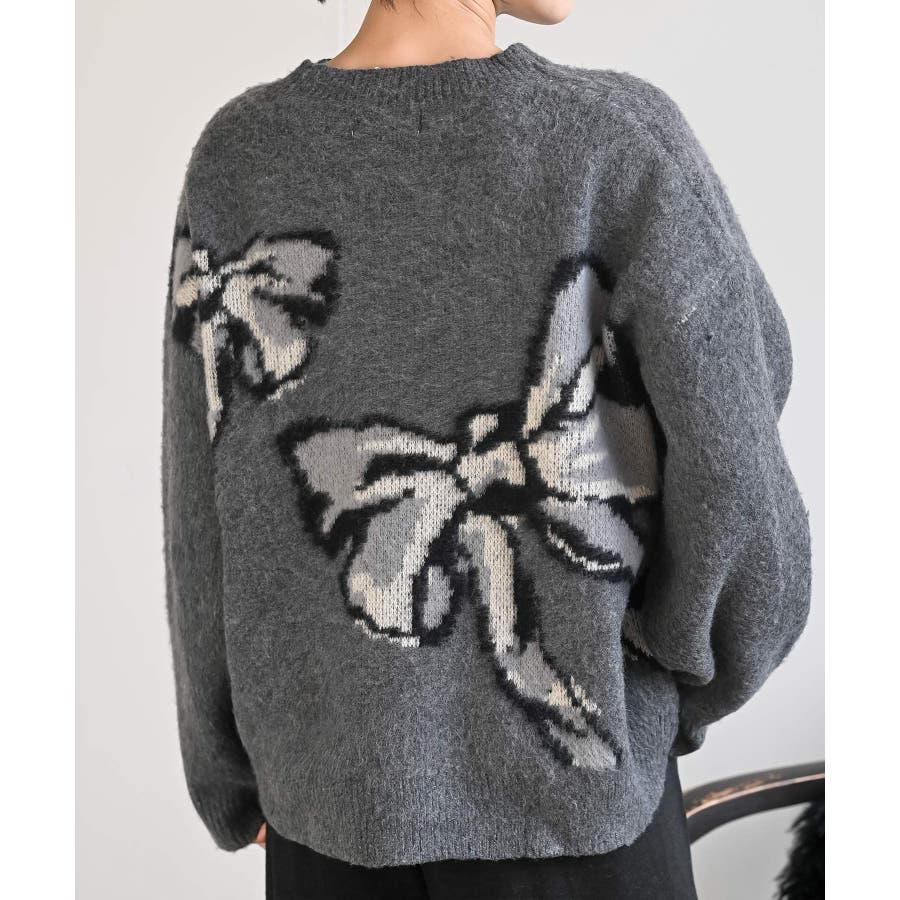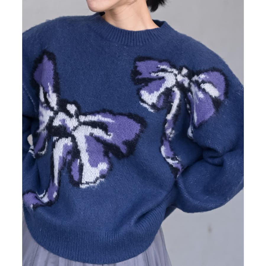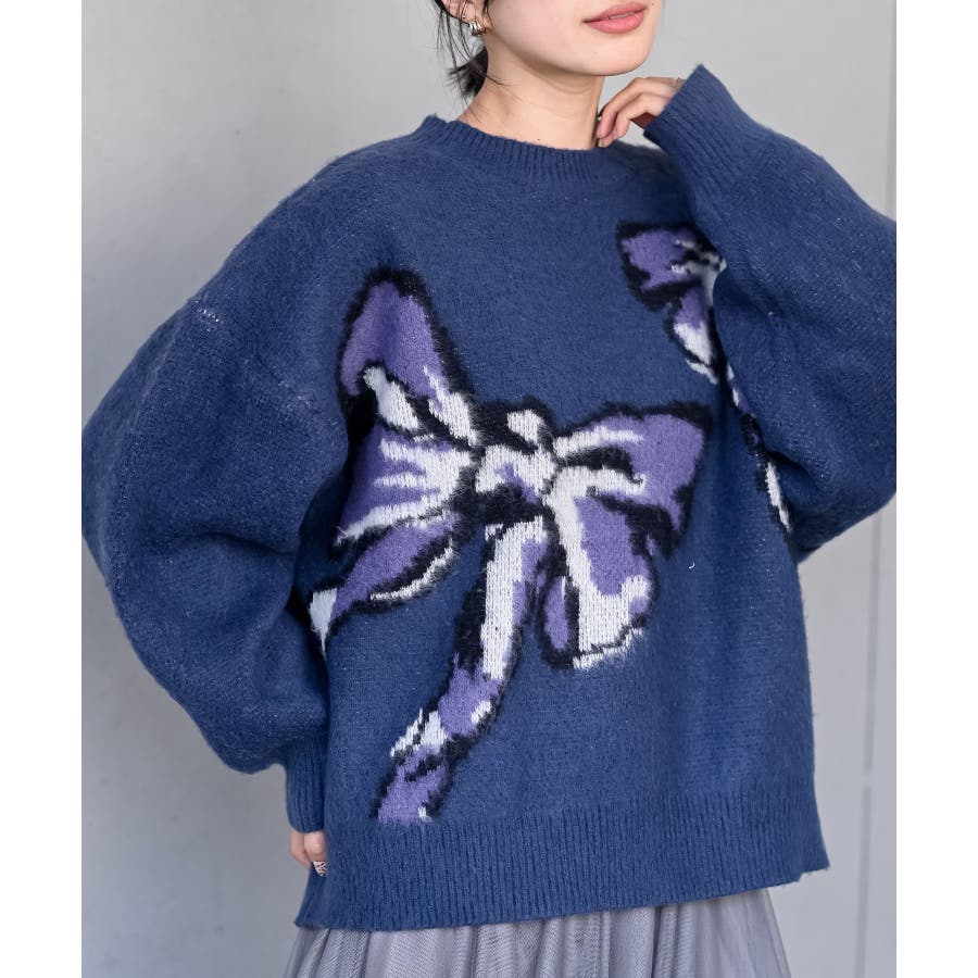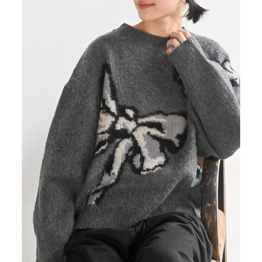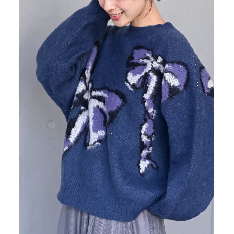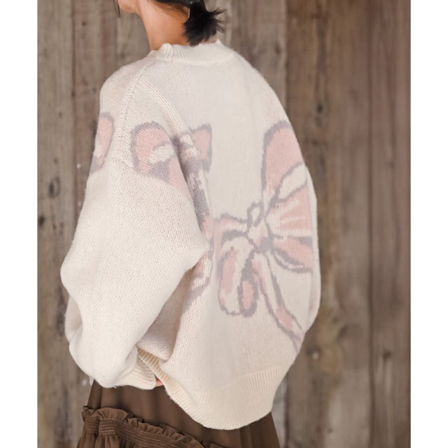 BIGリボン柄ニットプルオーバー