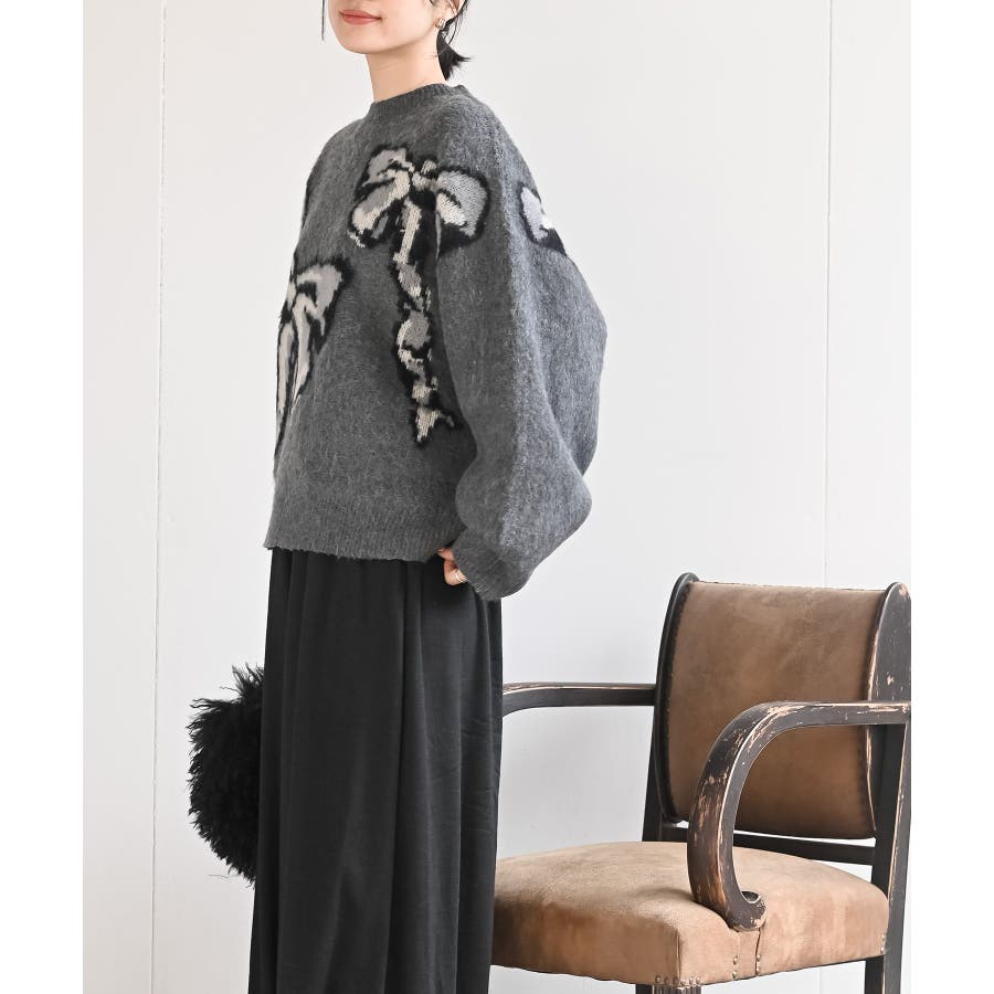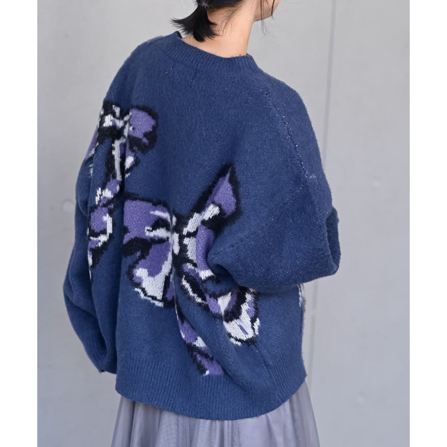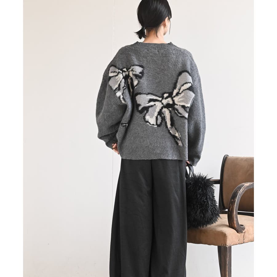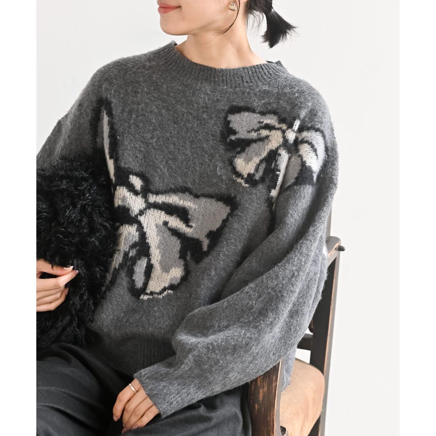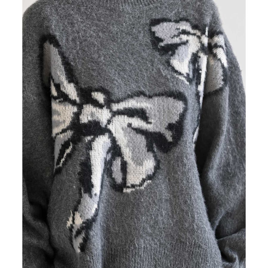 BIGリボン柄ニットプルオーバー