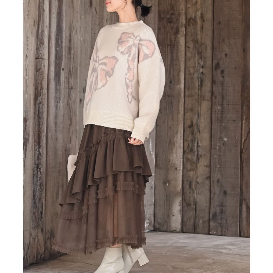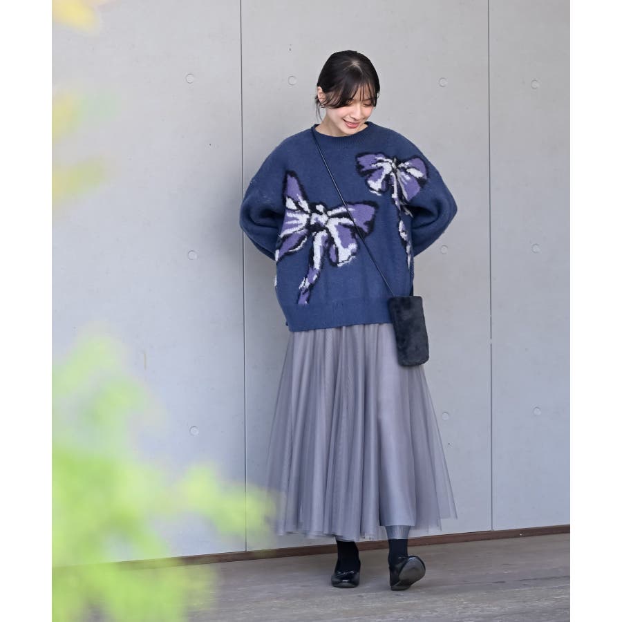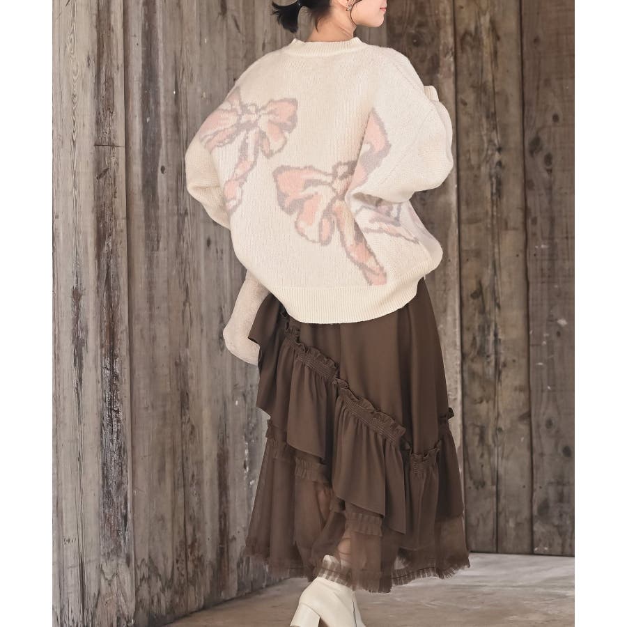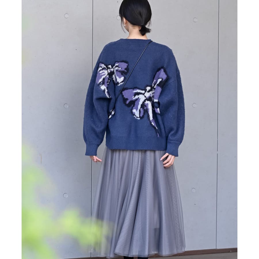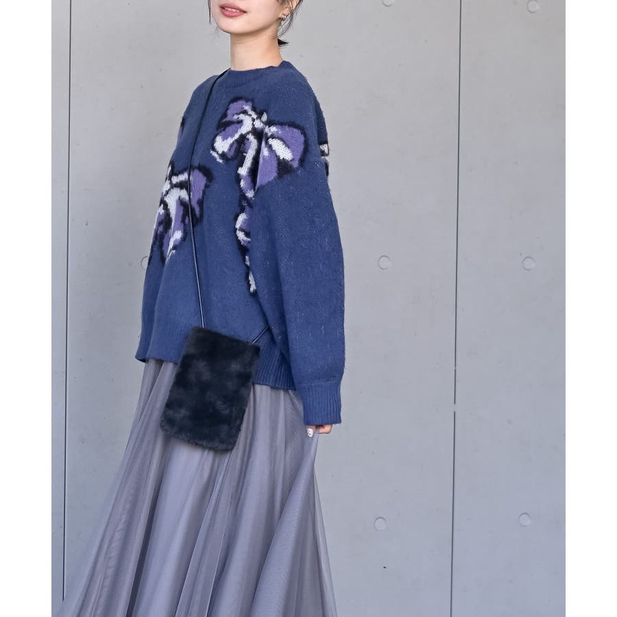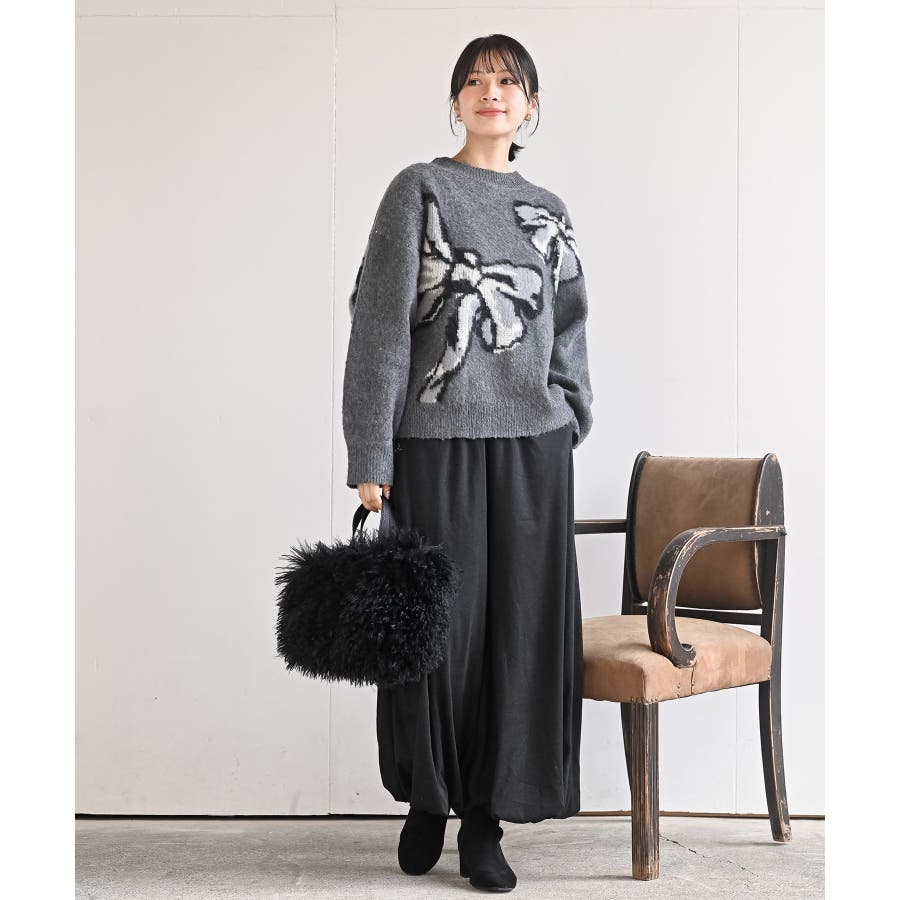 BIGリボン柄ニットプルオーバー
