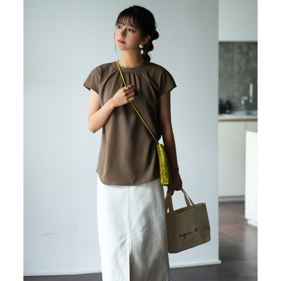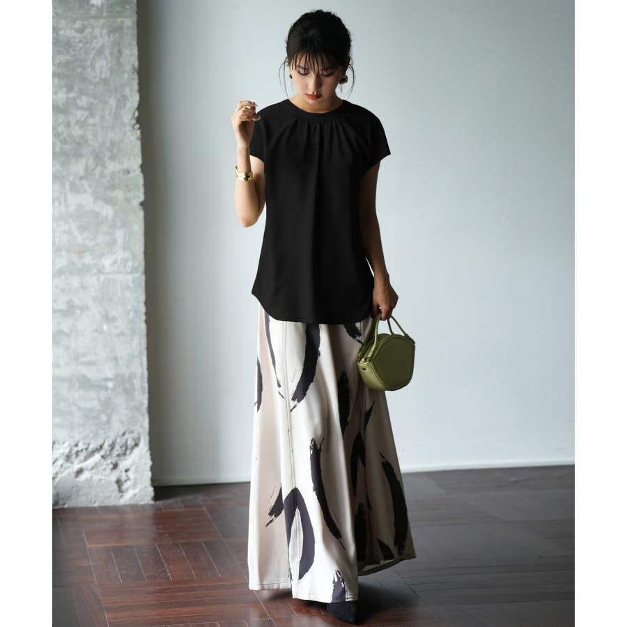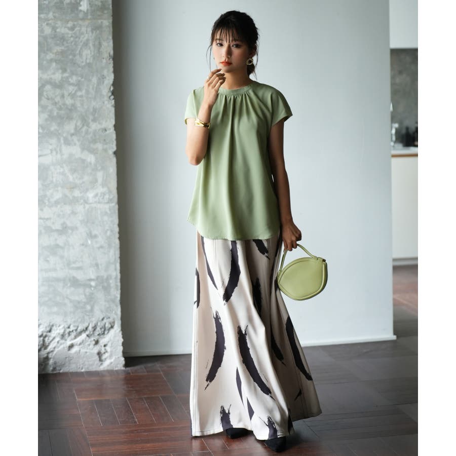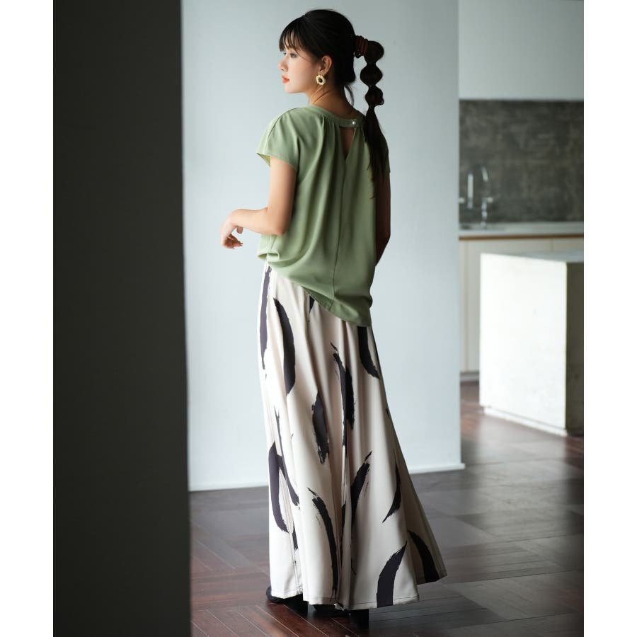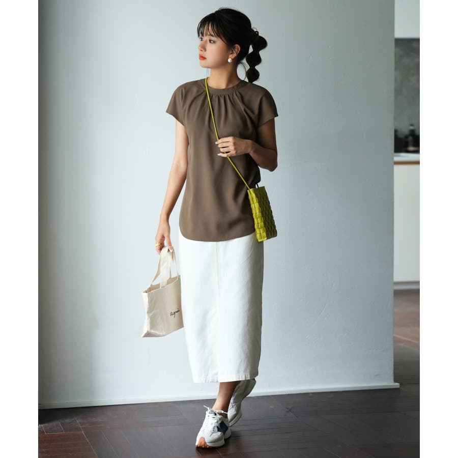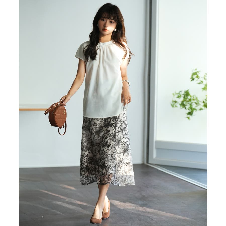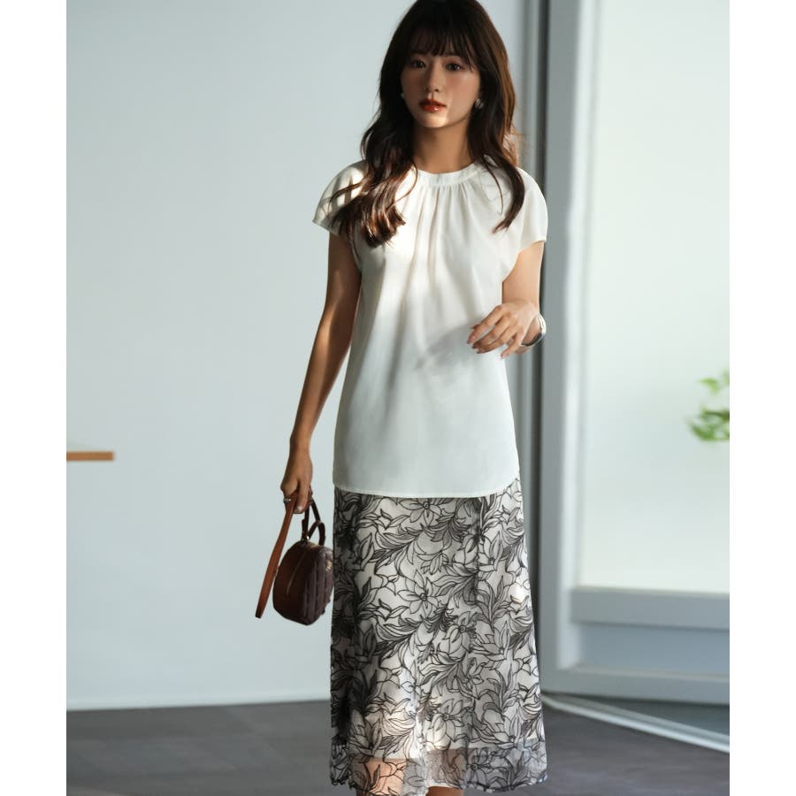 フレンチスリーブが涼しげな印象を与え、きれいめに見せてくれます。ブラウス感も高まり、オフィスカジュアルにもぴったり。