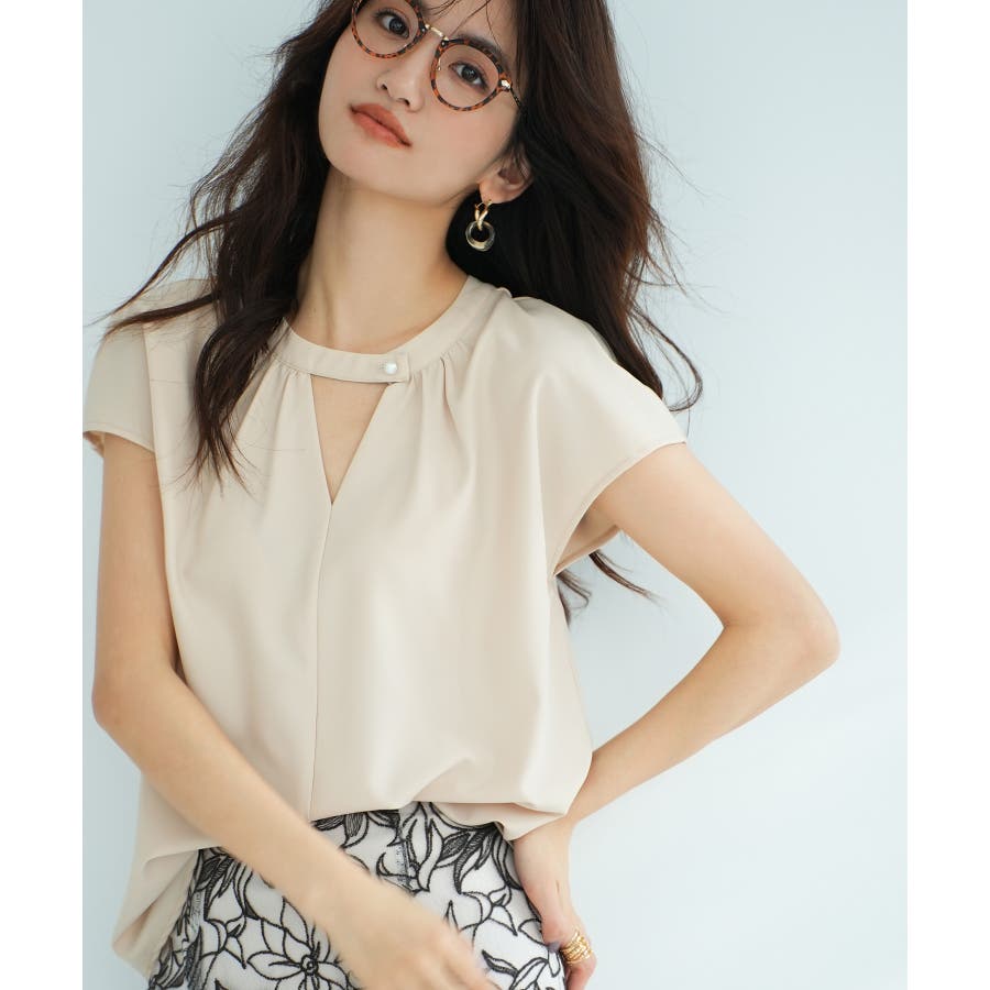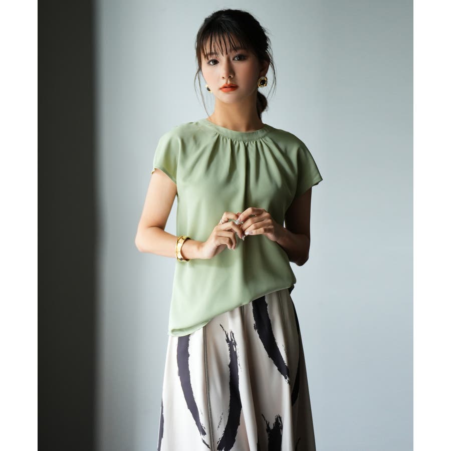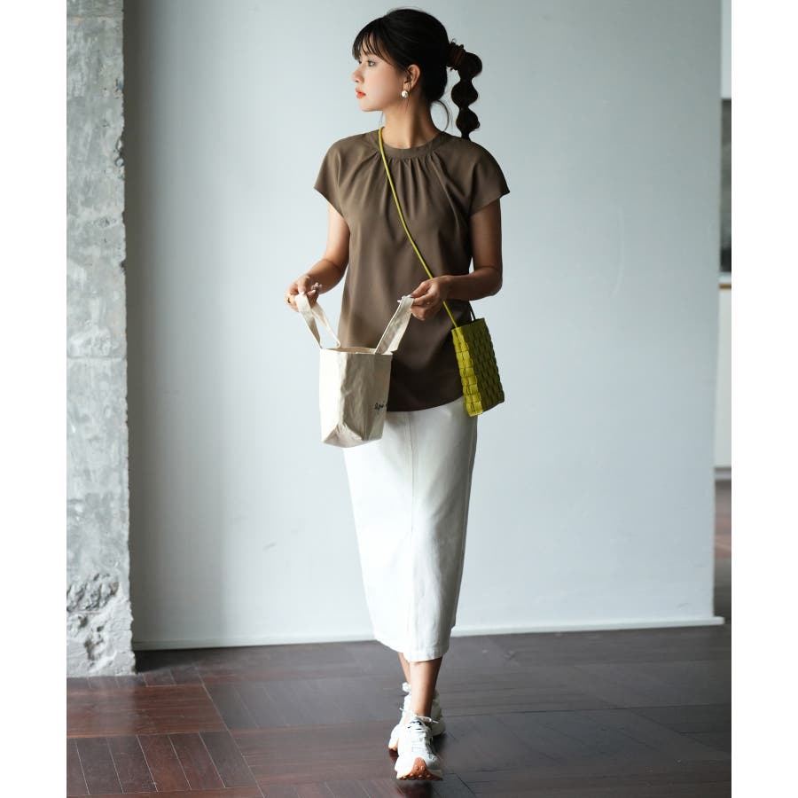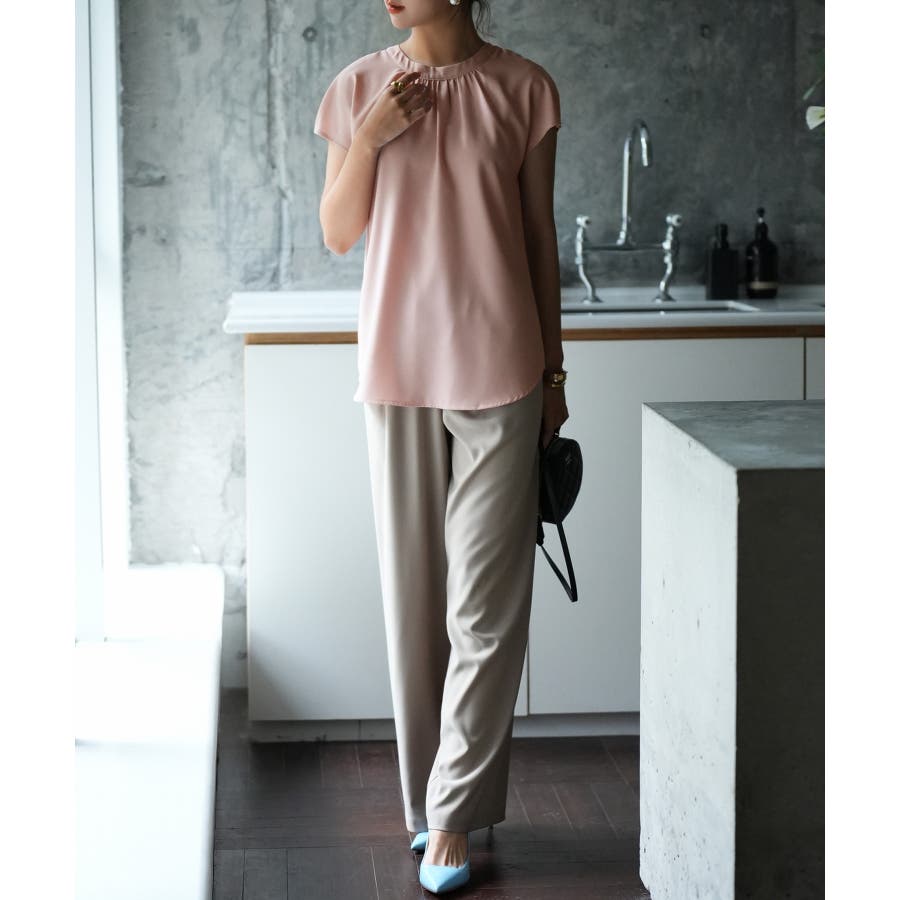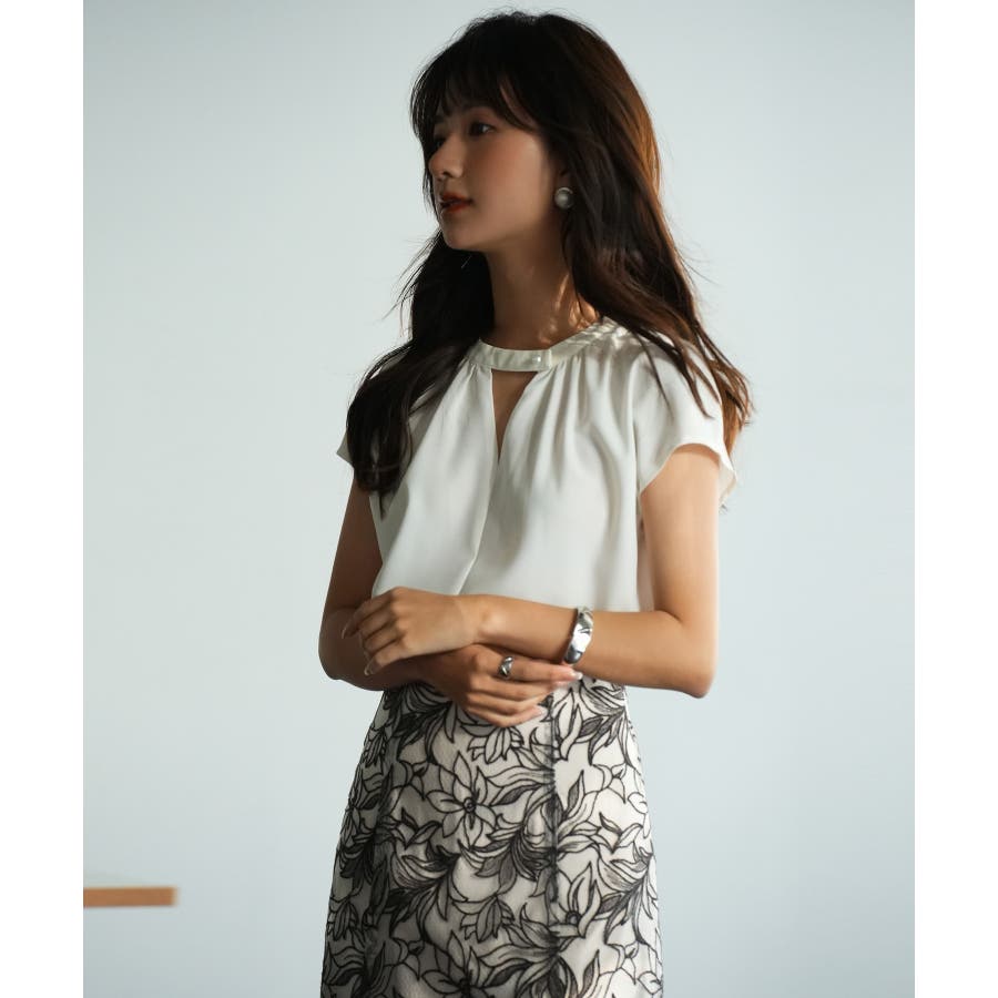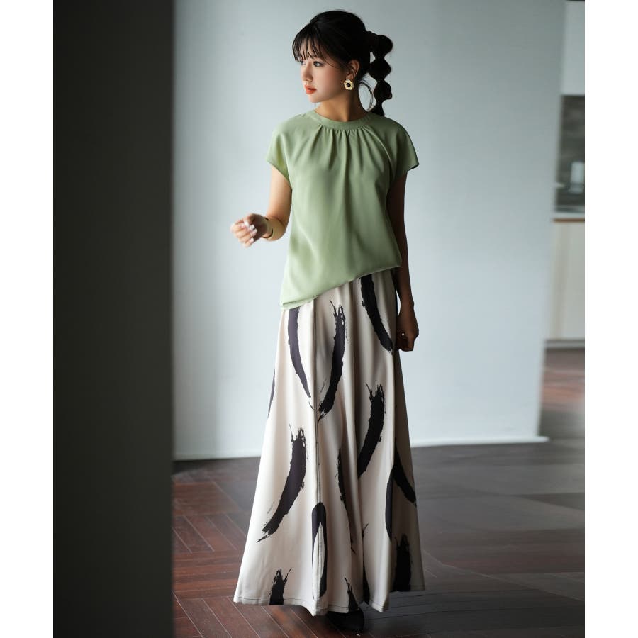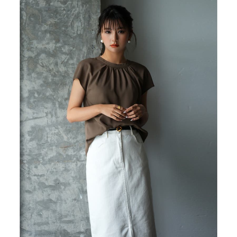 フレンチスリーブが涼しげな印象を与え、きれいめに見せてくれます。ブラウス感も高まり、オフィスカジュアルにもぴったり。