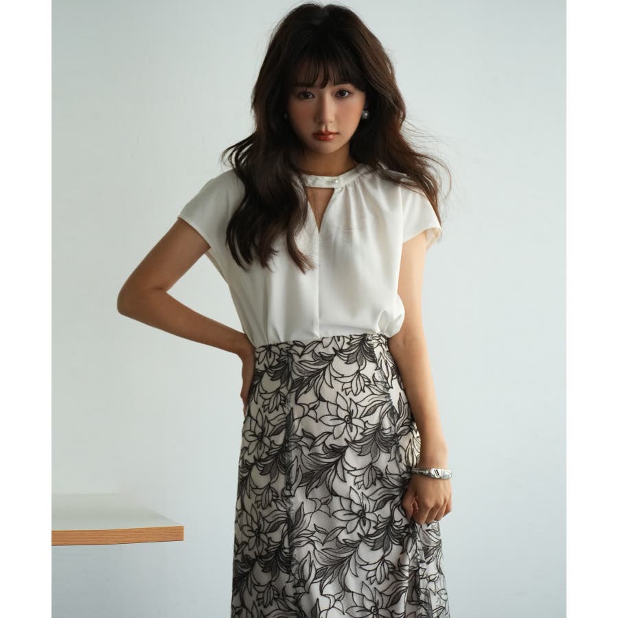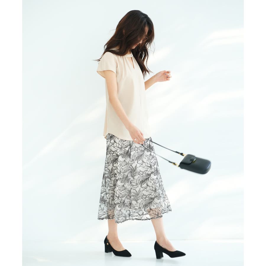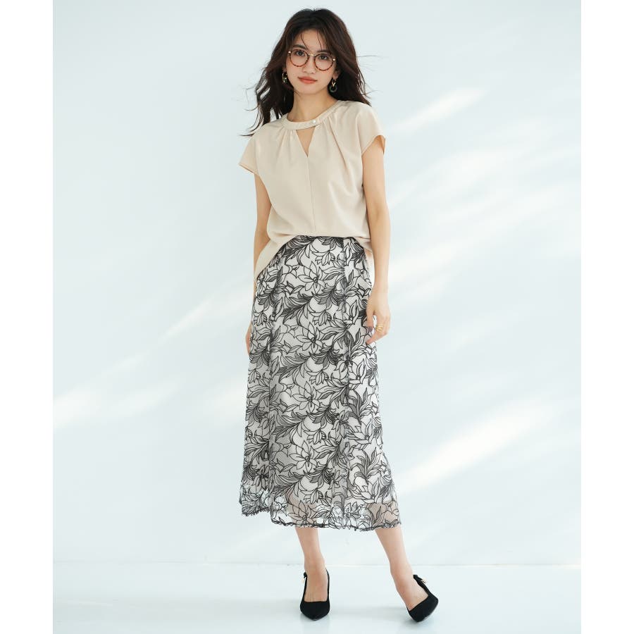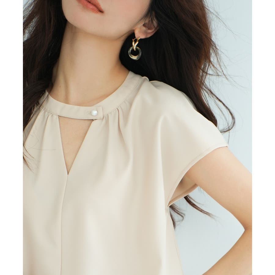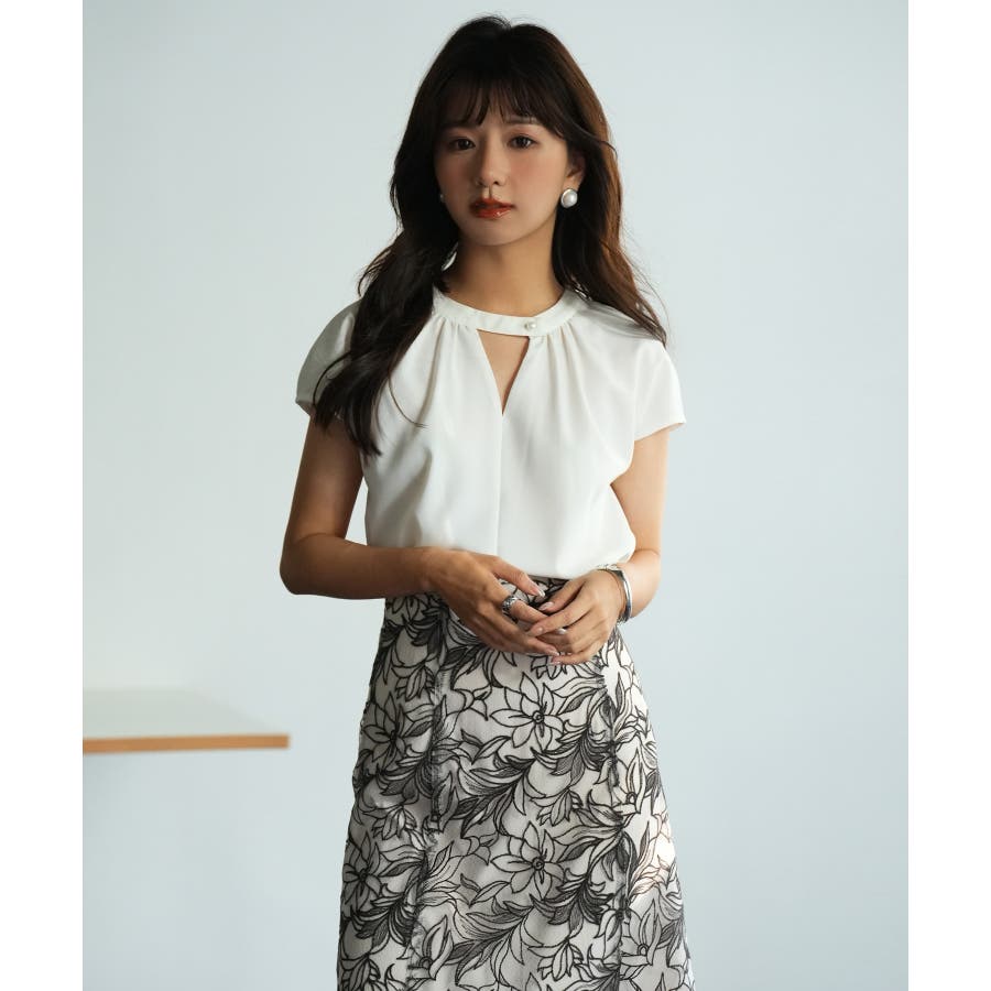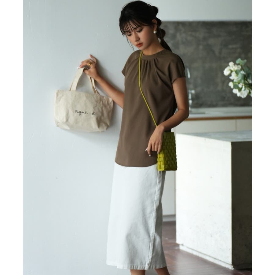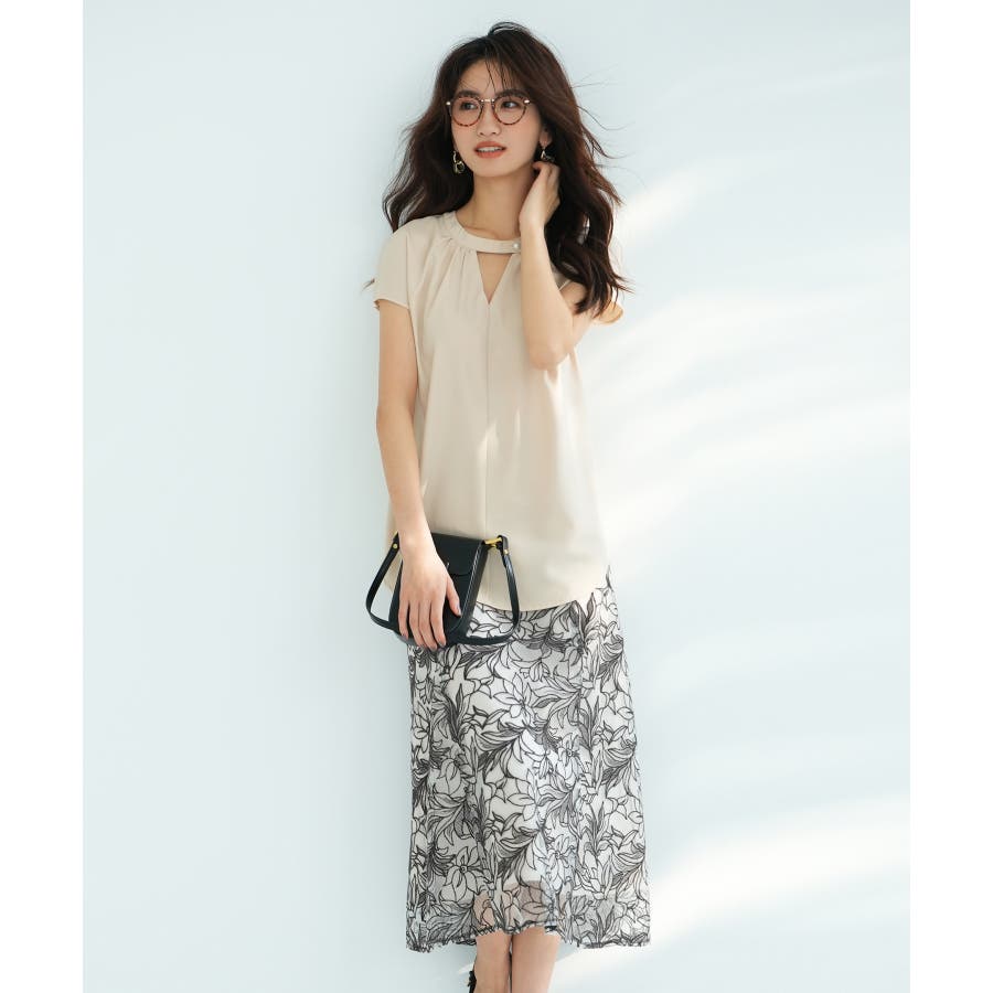 フレンチスリーブが涼しげな印象を与え、きれいめに見せてくれます。ブラウス感も高まり、オフィスカジュアルにもぴったり。