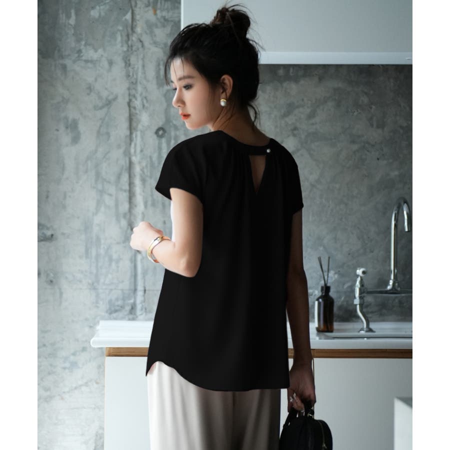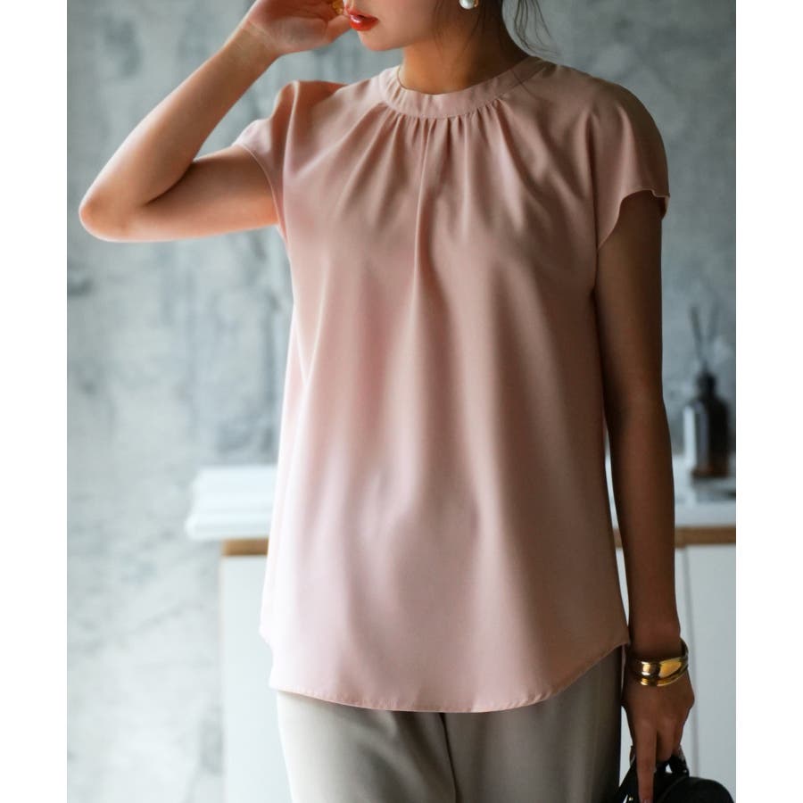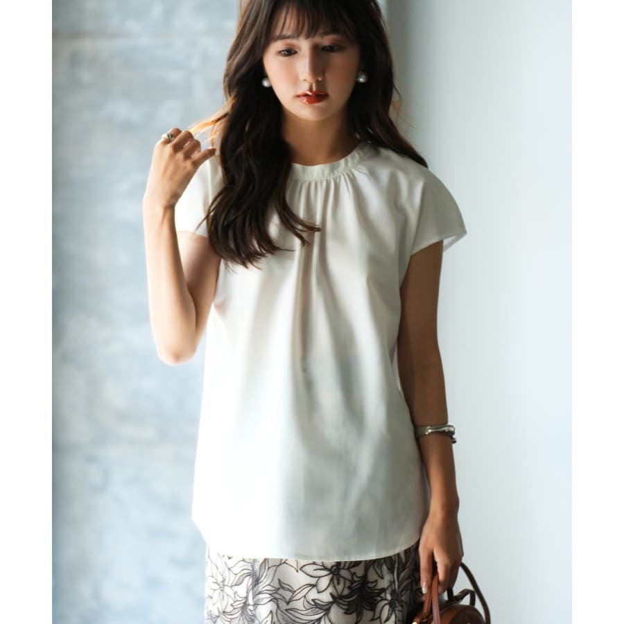 シンプルなのに一枚で大人きれいに着こなせる。前後2wayのフレンチスリーブブラウスです。
