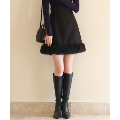 裾ファーが冬コーデを格上げするハイウエストミニスカートです。