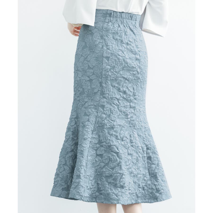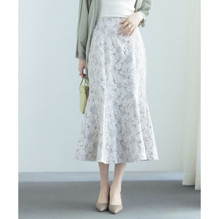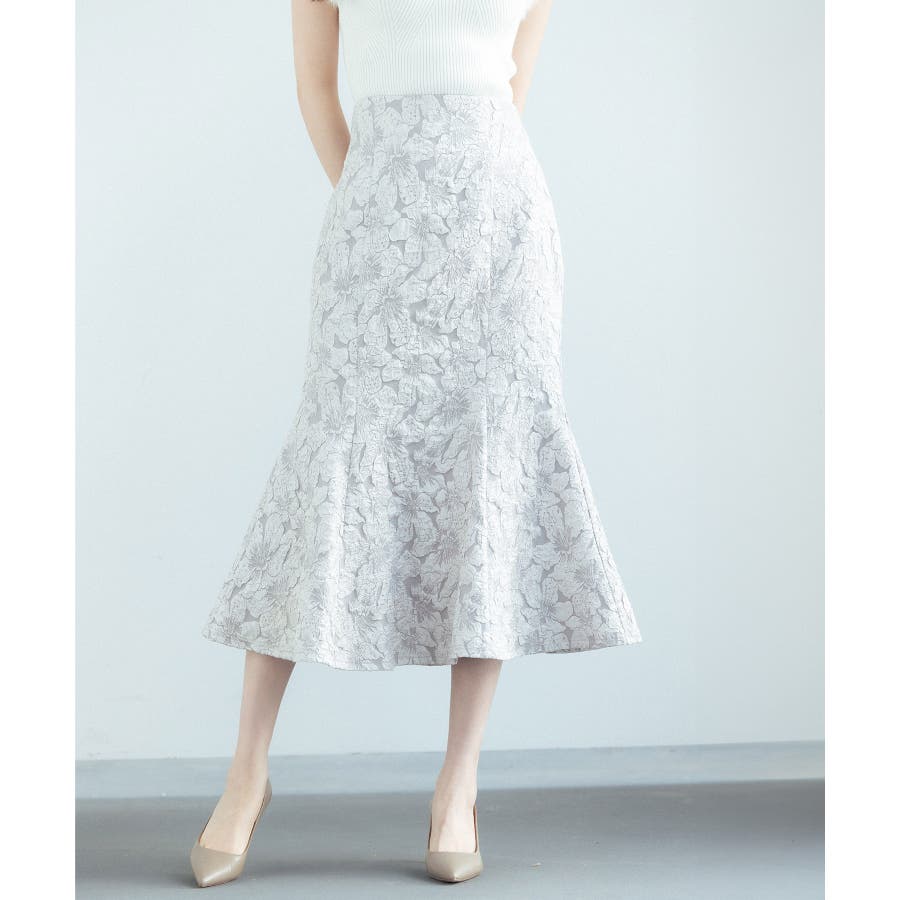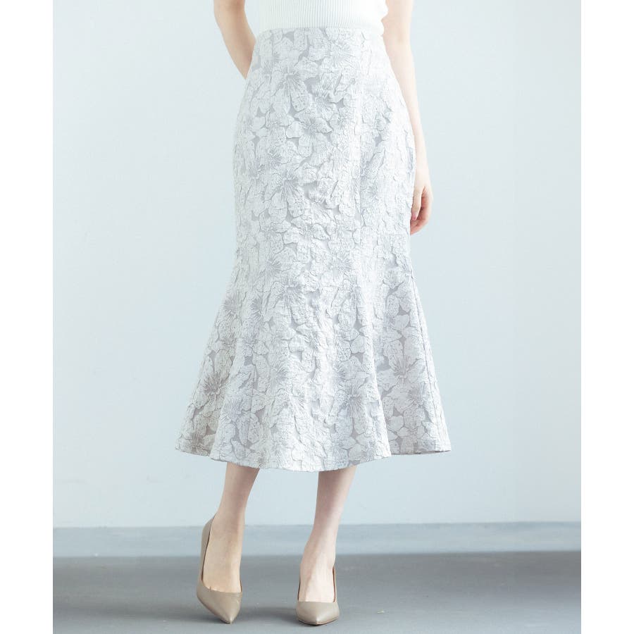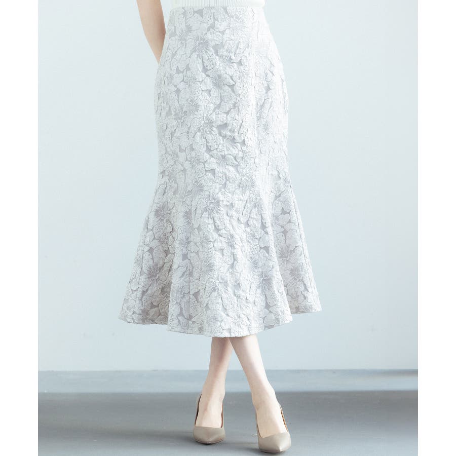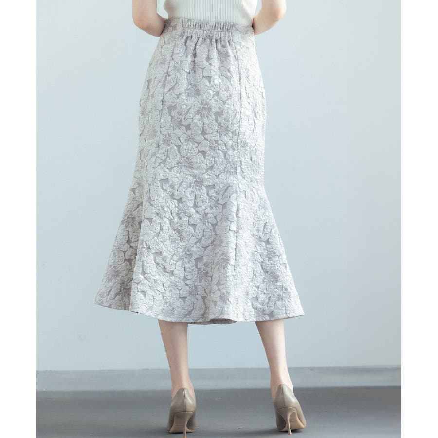裾にかけてふんわり広がったマーメイドシルエット。ヒップ周りを引き締め、スタイルアップと着痩せを実現します。