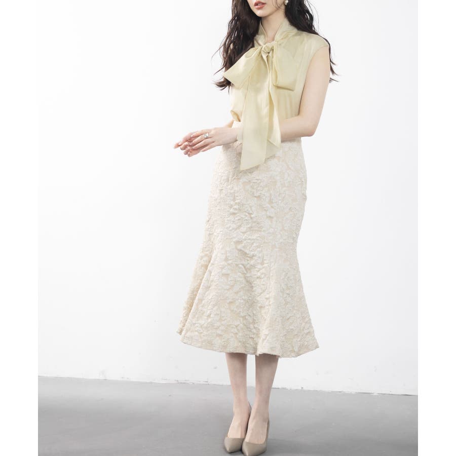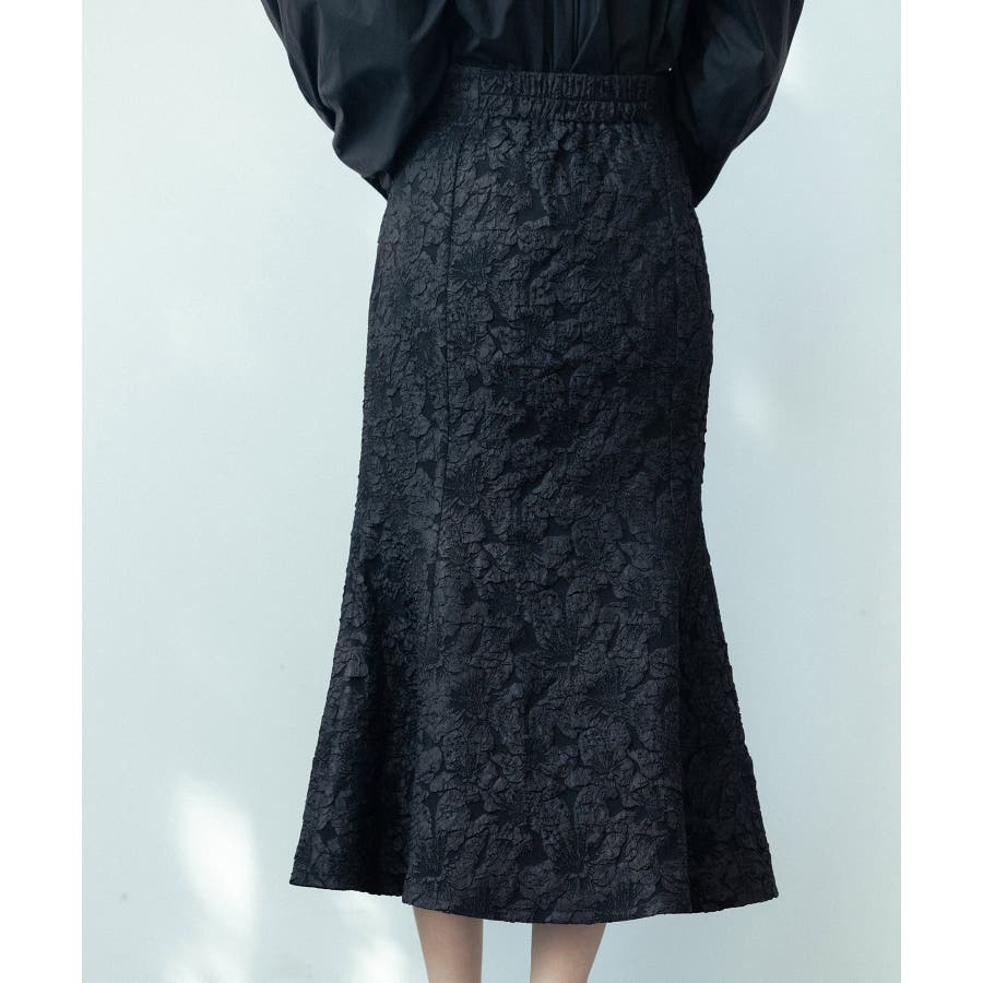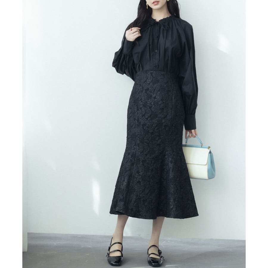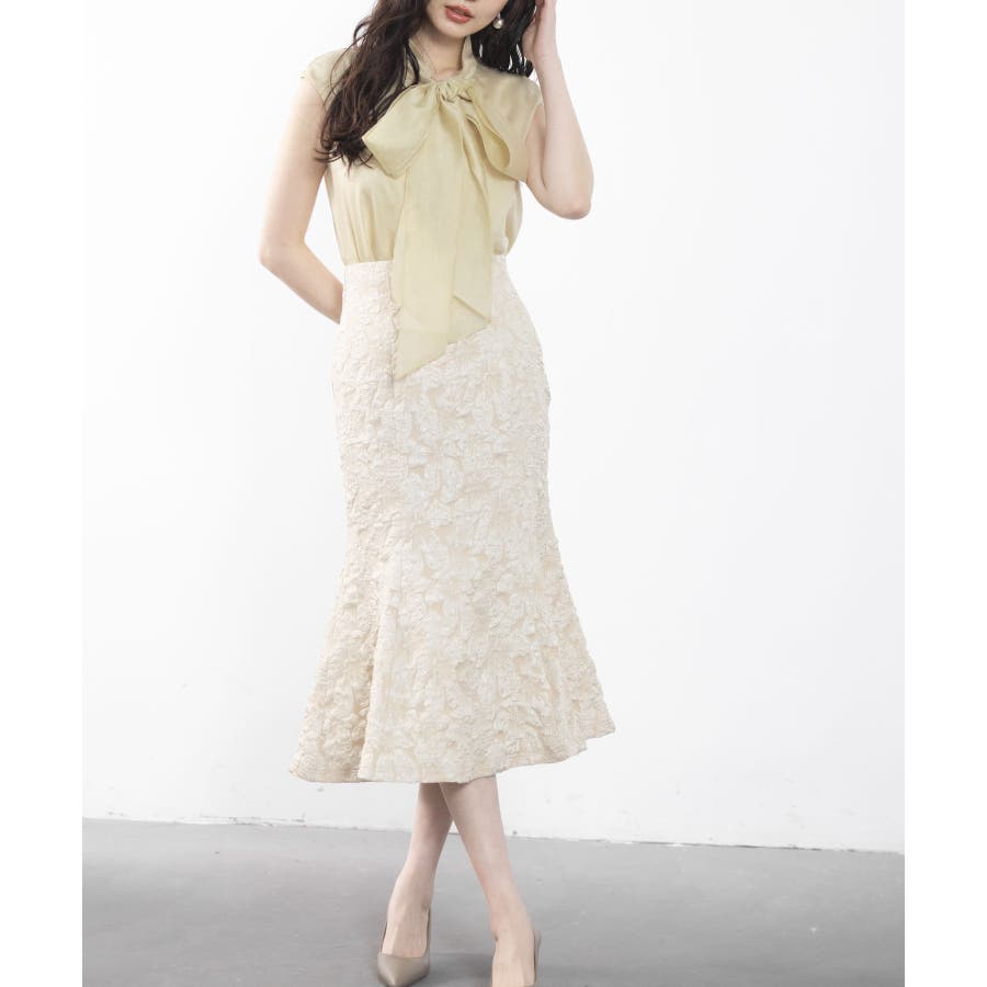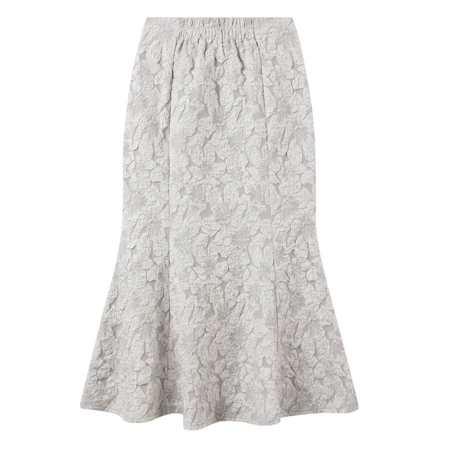 裾にかけてふんわり広がったマーメイドシルエット。ヒップ周りを引き締め、スタイルアップと着痩せを実現します。