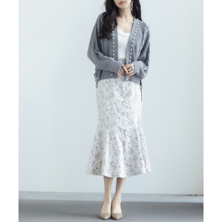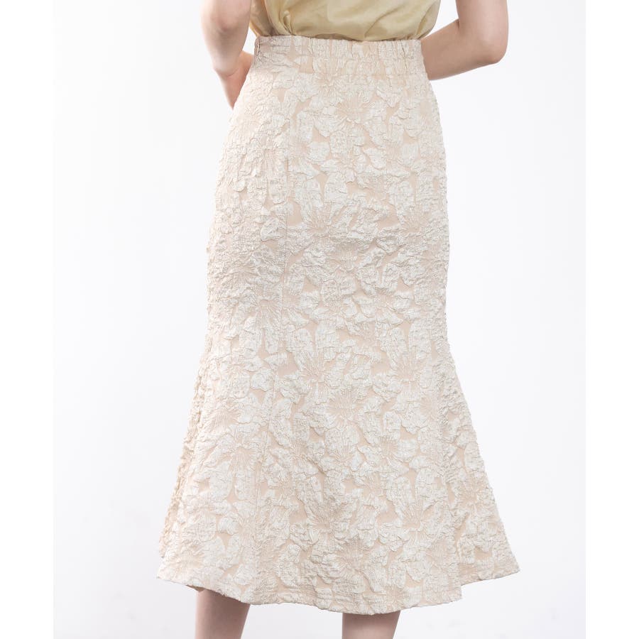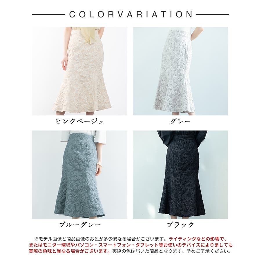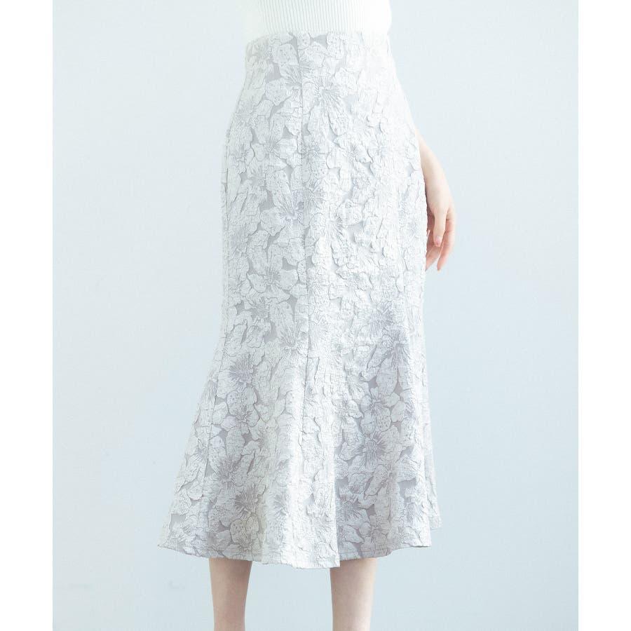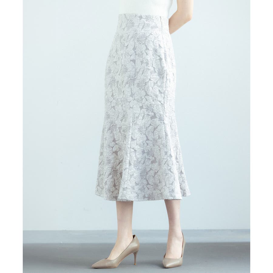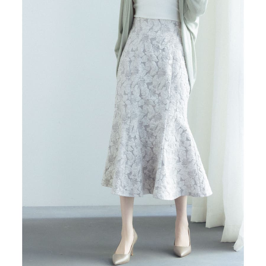 裾にかけてふんわり広がったマーメイドシルエット。ヒップ周りを引き締め、スタイルアップと着痩せを実現します。