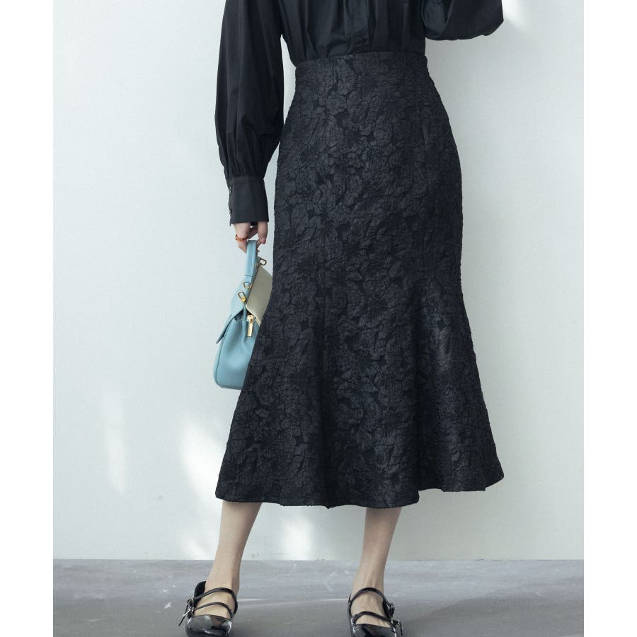フクレジャガードが上品できちんと感たっぷりなミモレ丈スカート。
