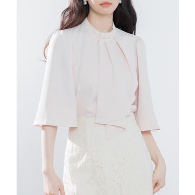 前襟中心からボウタイ風になったデザインがアクセント。オケージョン映えもデイリーにも一枚でサマになります。