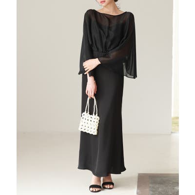 サテンキャミソールワンピースとふんわりシフォントップスのドッキングワンピース。