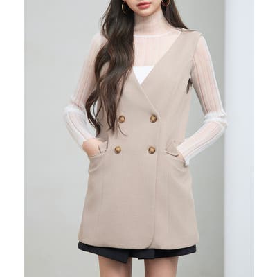 ノーカラーダブルブレストベスト