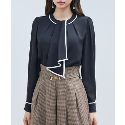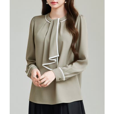 ボウタイorモックネックが選べる首元2wayブラウス。