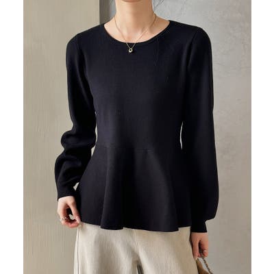 ペプラムシルエットが大人可愛い&体型カバーも叶えるクルーネックニットトップス 。