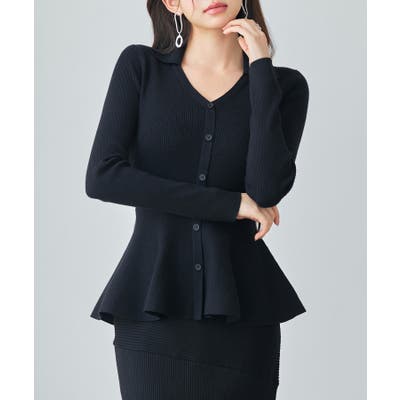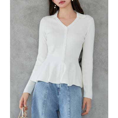 重ね着風スキッパーカラーのペプラムニットトッブス。