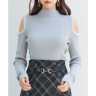 両肩穴が空いたヘルシーな色気があるデザインです。重たすぎない見栄えのニットの着こなしができます。