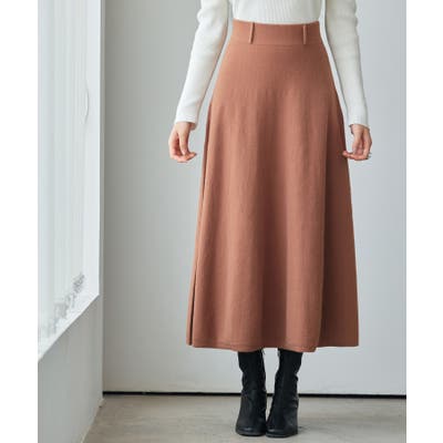すっきりとした腰回りから裾にかけて広がるミモレ丈のフレアニットスカートです。