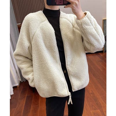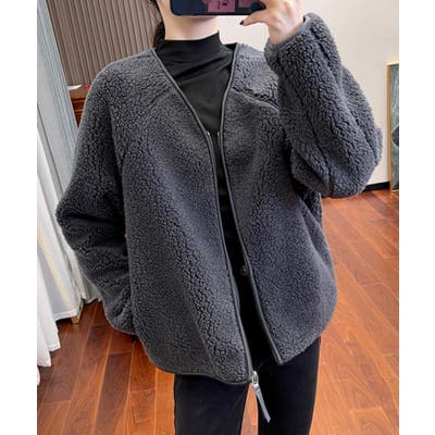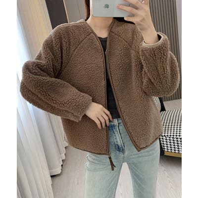 冬っぽくなれるボリューム満点のノーカラーラグラン・スリーブボアブルゾン。