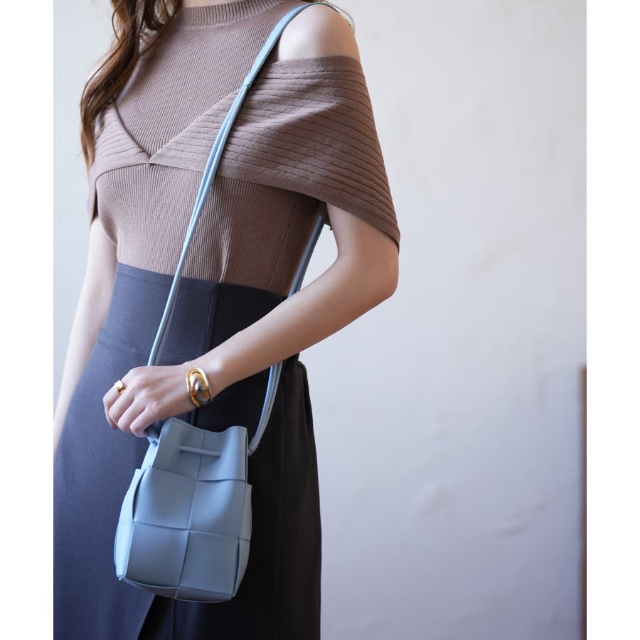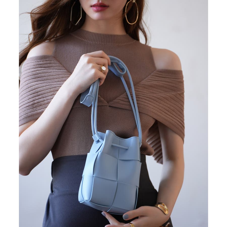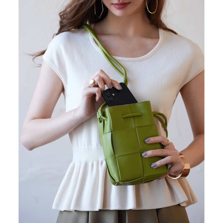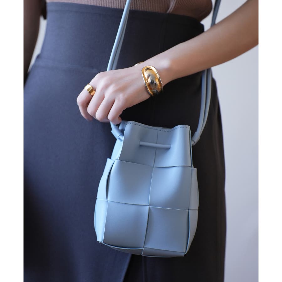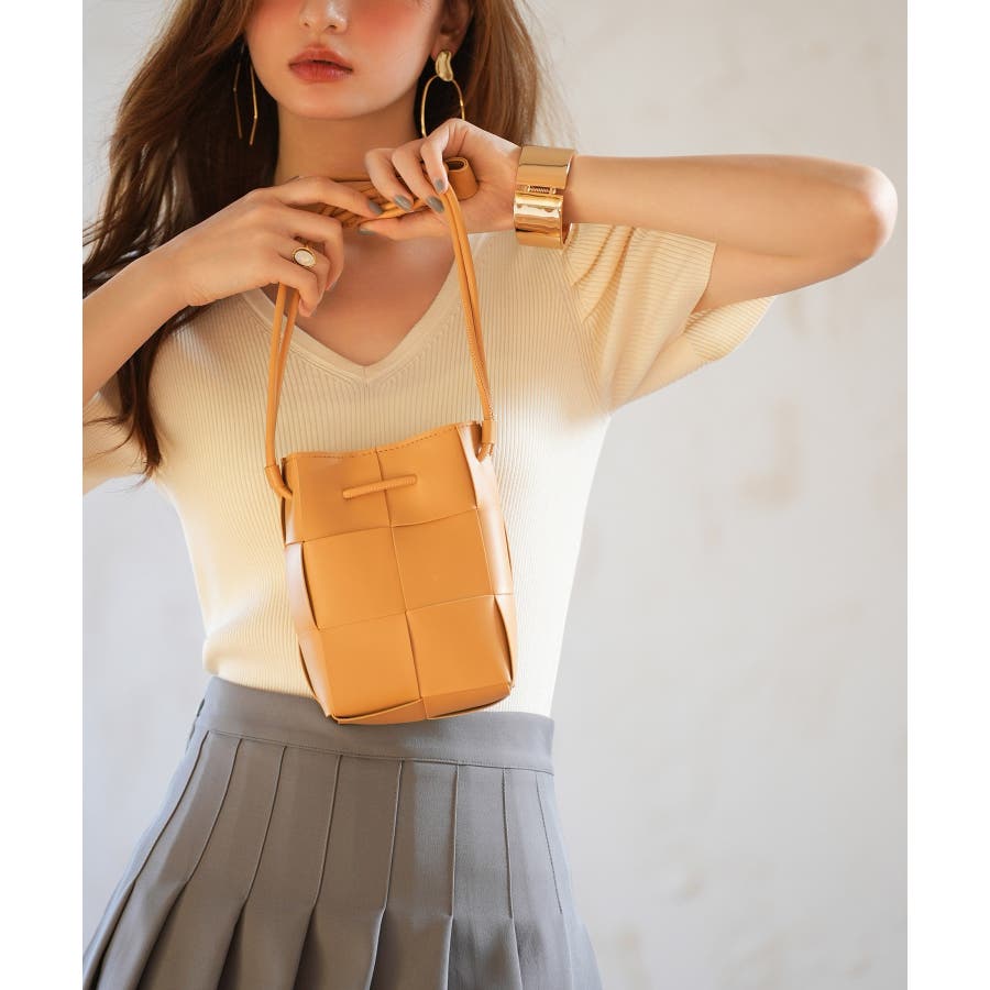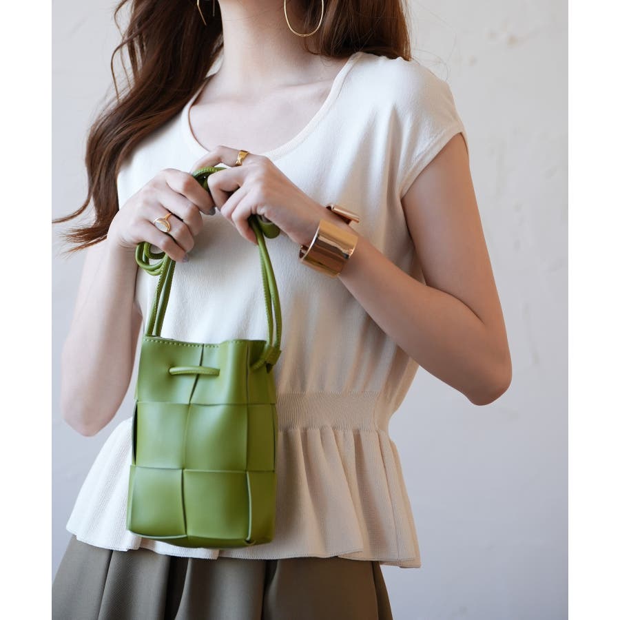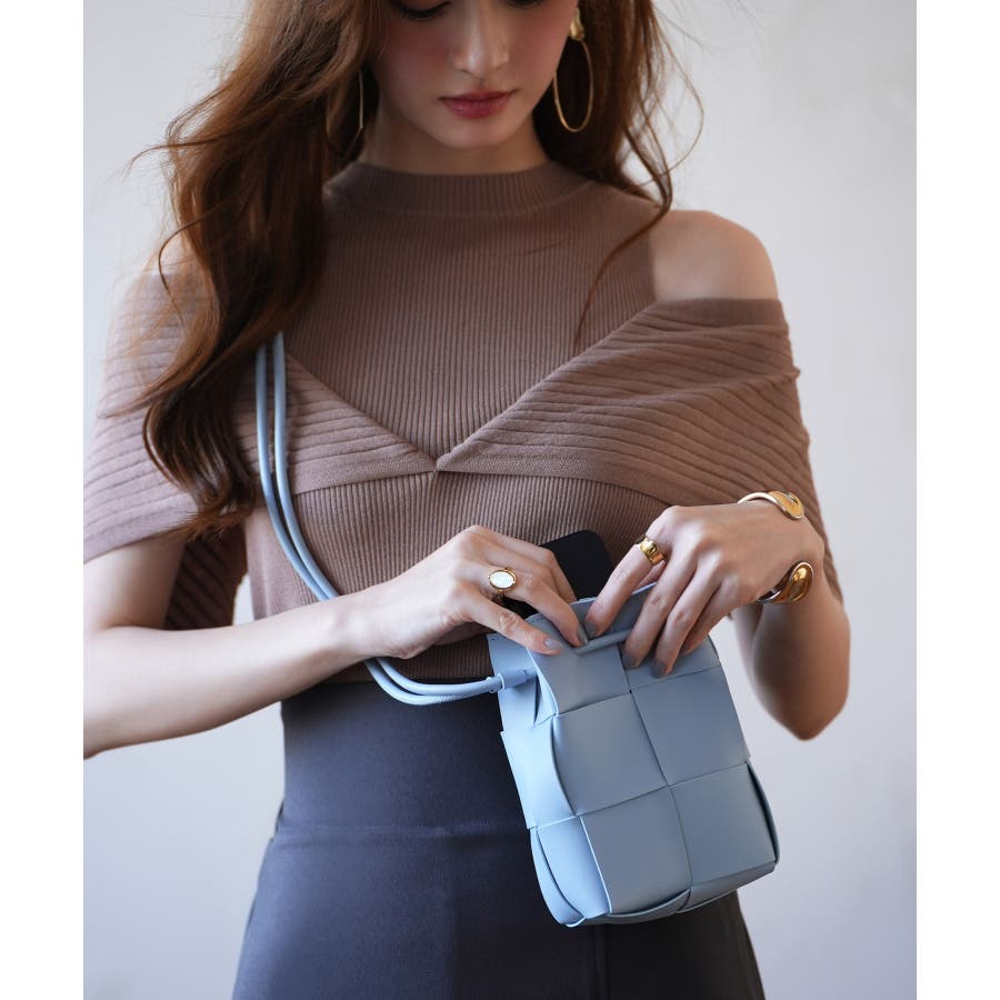 レザーの重なりが美しいメッシュデザイン。高級感もあり大人なスタイルにも映える華やかな存在感がGood。収納のしやすいスクエア型なので、最小限の荷物を入れてミニマルなお出かけを楽しむことができます。
