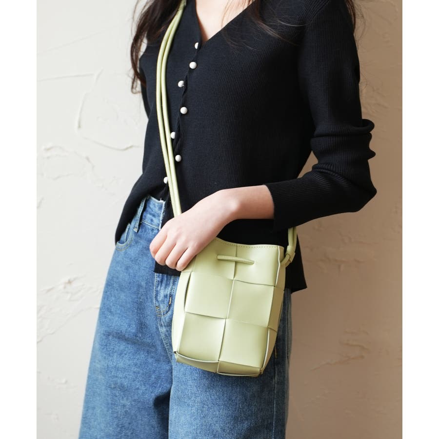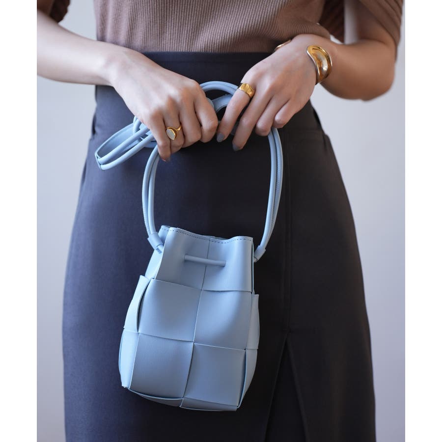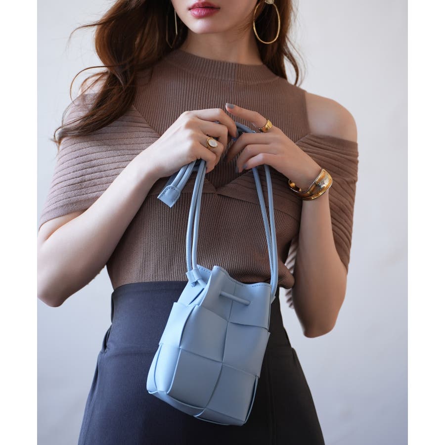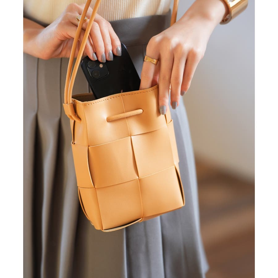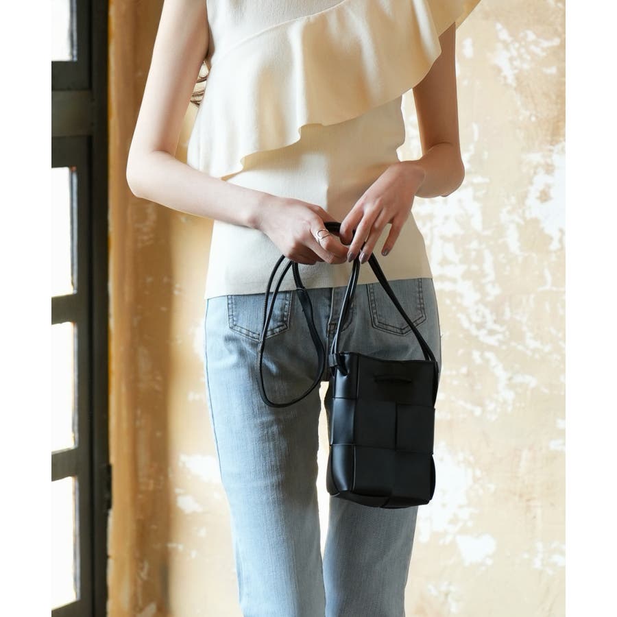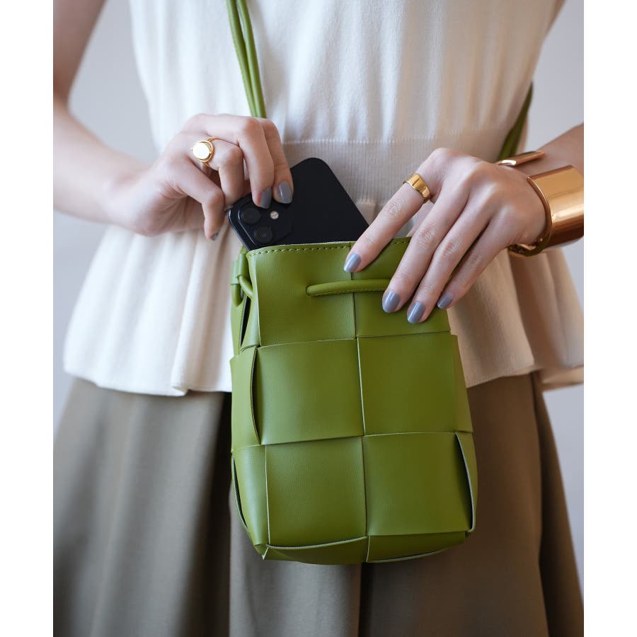 レザーの重なりが美しいメッシュデザイン。高級感もあり大人なスタイルにも映える華やかな存在感がGood。収納のしやすいスクエア型なので、最小限の荷物を入れてミニマルなお出かけを楽しむことができます。