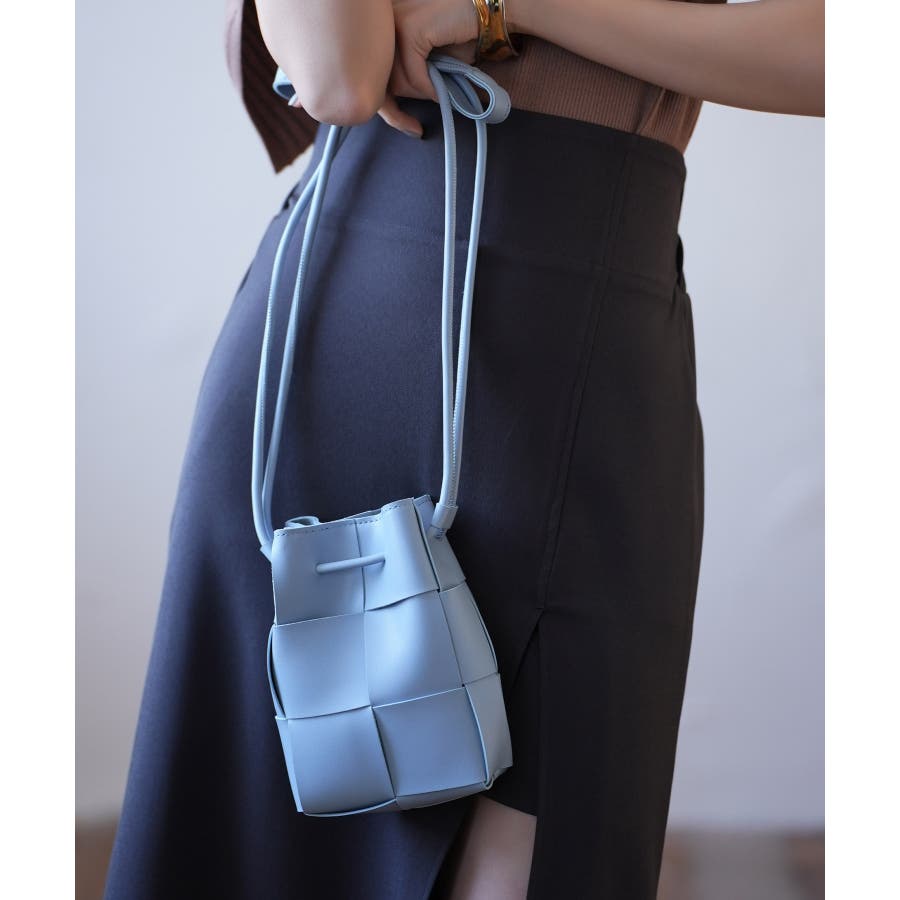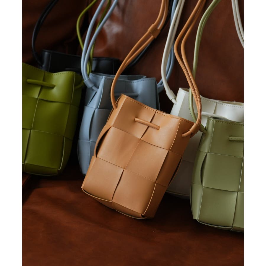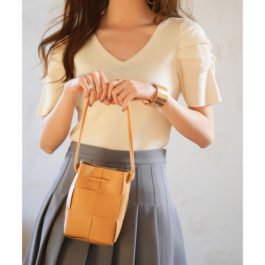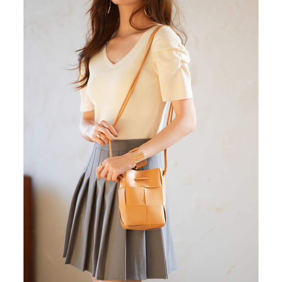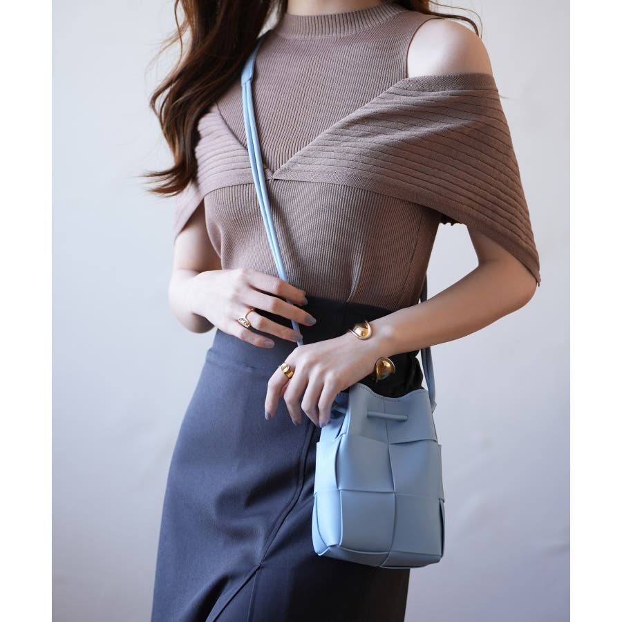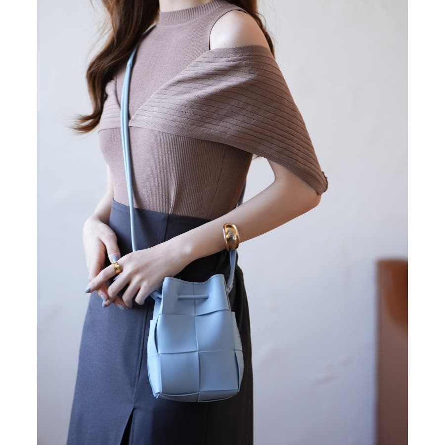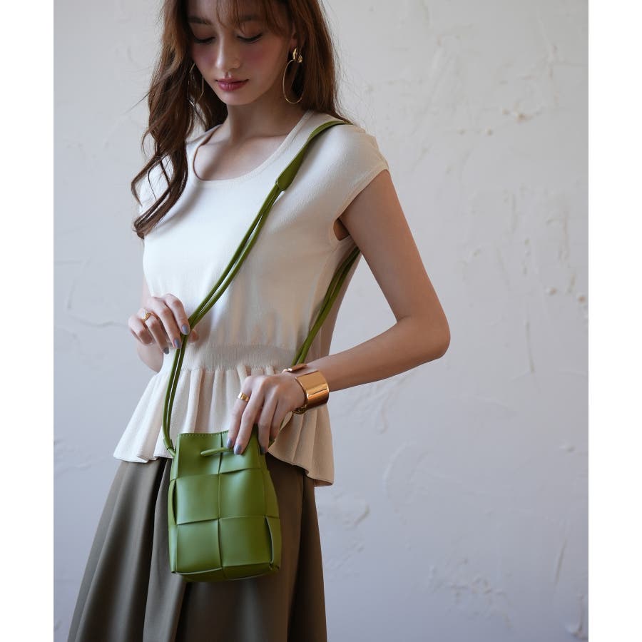 レザーの重なりが美しいメッシュデザイン。高級感もあり大人なスタイルにも映える華やかな存在感がGood。収納のしやすいスクエア型なので、最小限の荷物を入れてミニマルなお出かけを楽しむことができます。