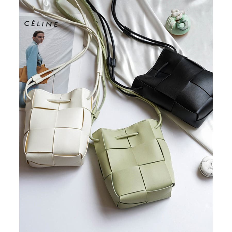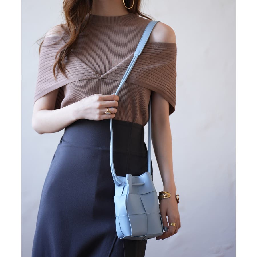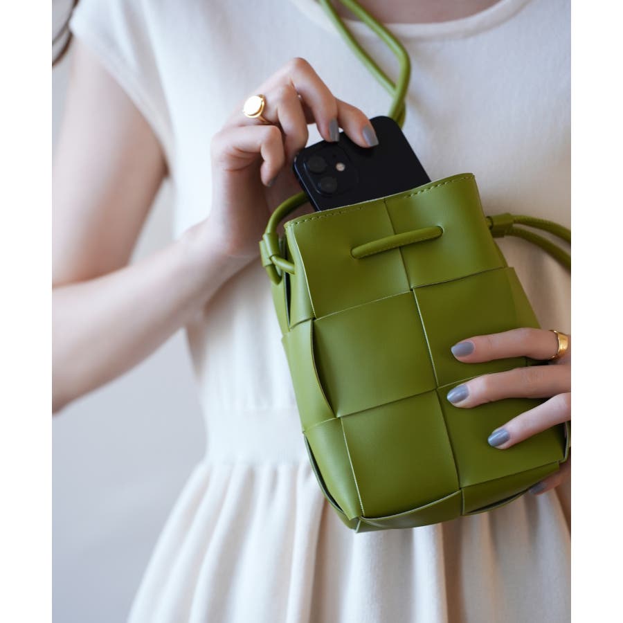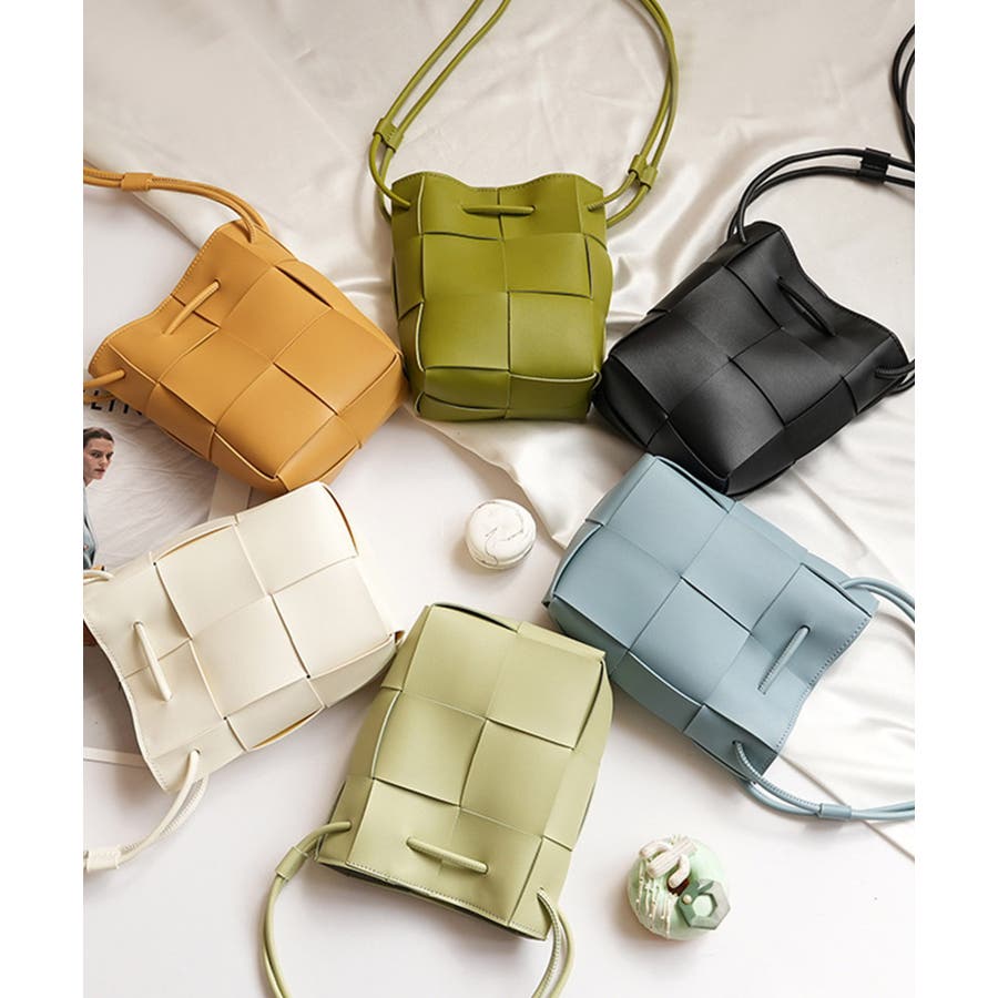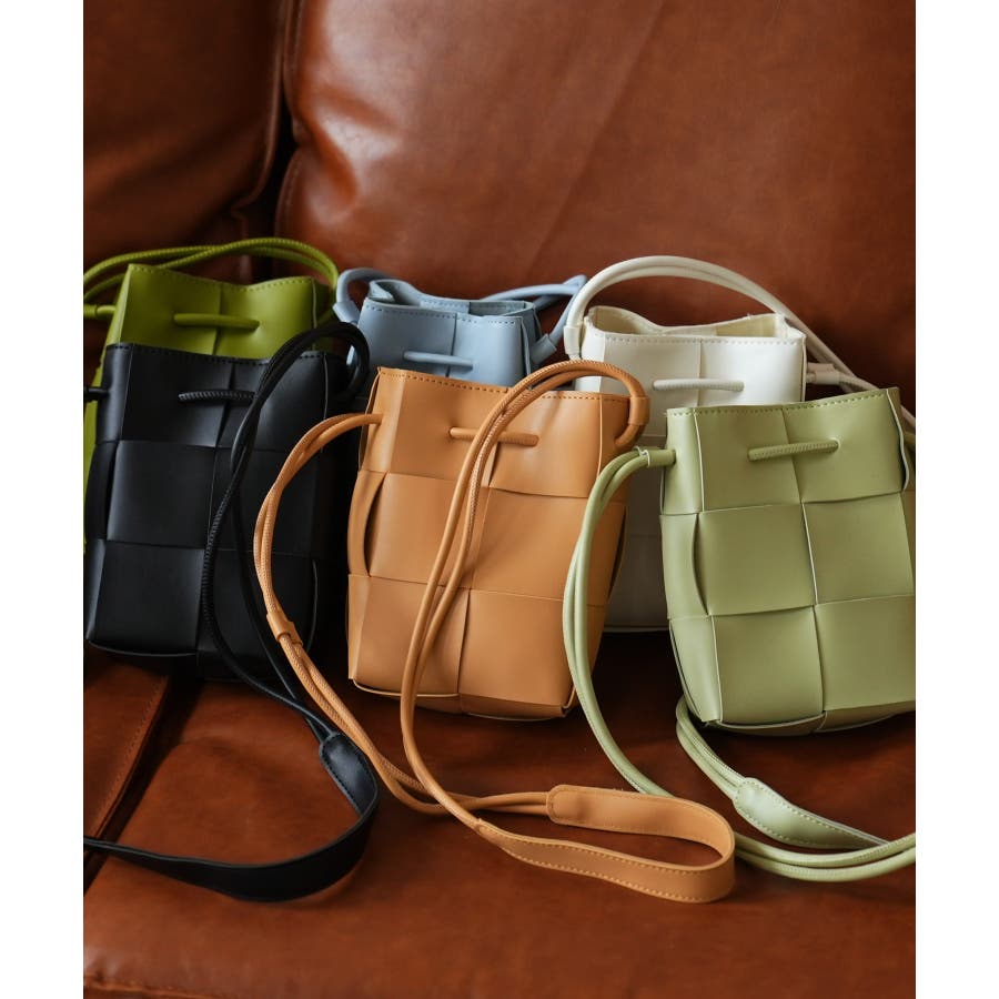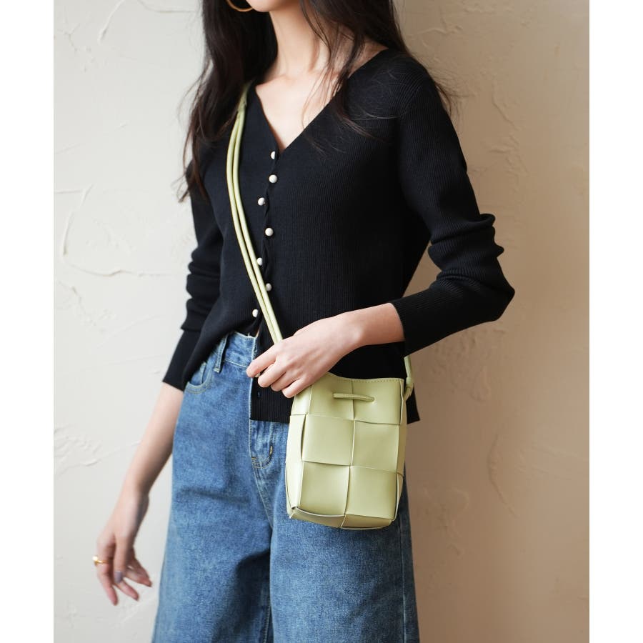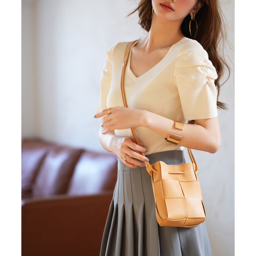 レザーの重なりが美しいメッシュデザイン。高級感もあり大人なスタイルにも映える華やかな存在感がGood。収納のしやすいスクエア型なので、最小限の荷物を入れてミニマルなお出かけを楽しむことができます。