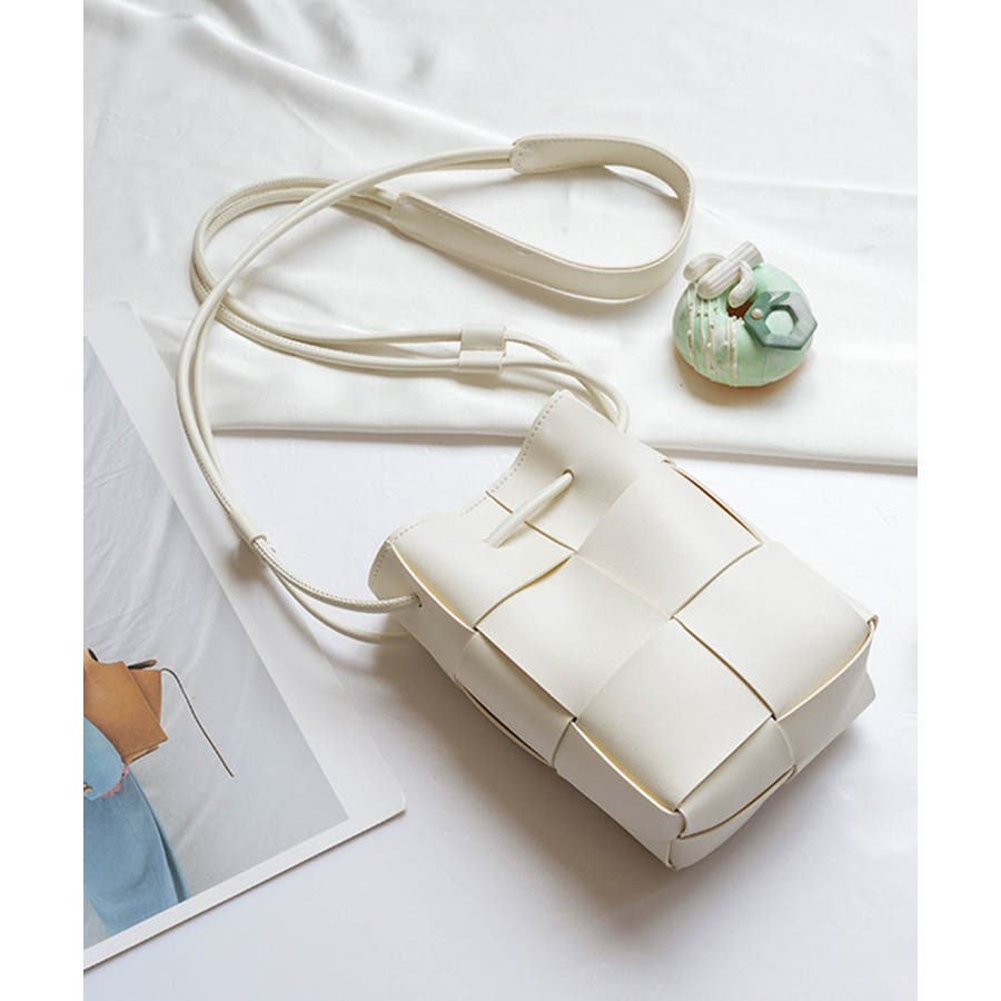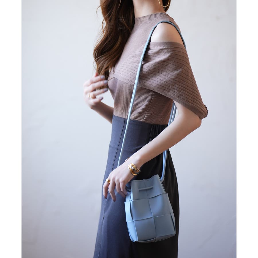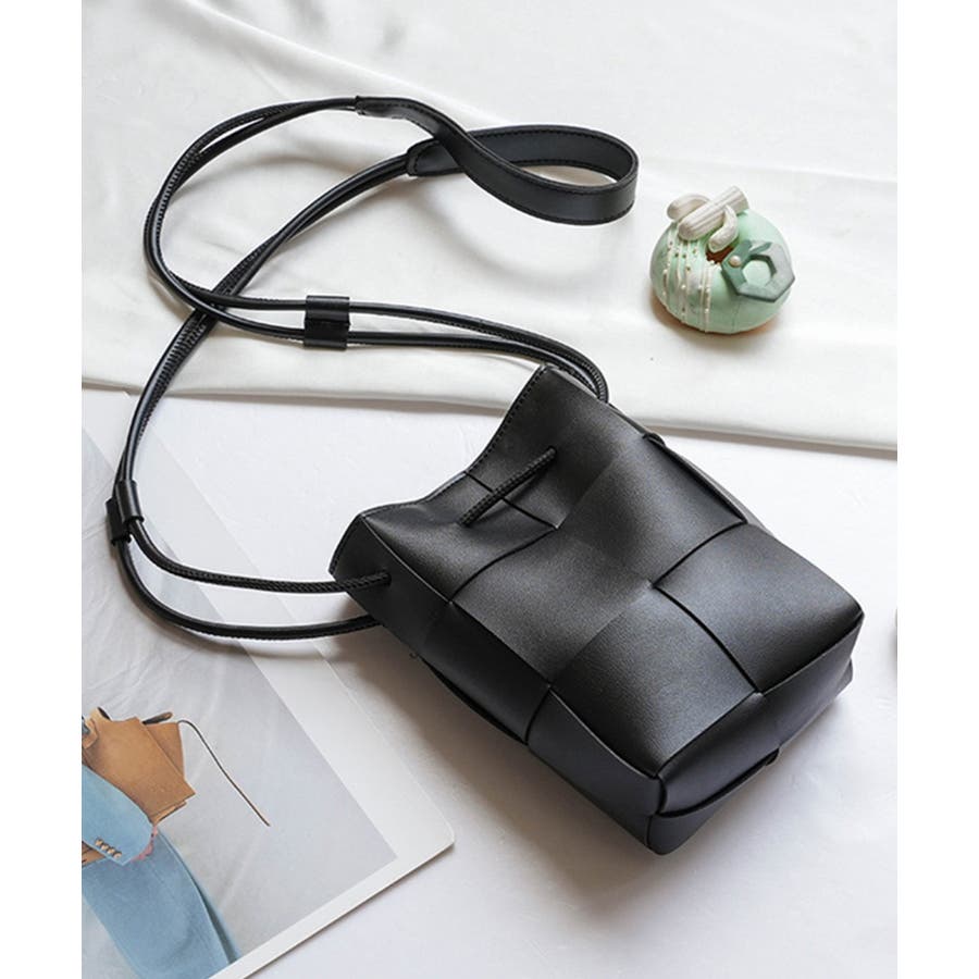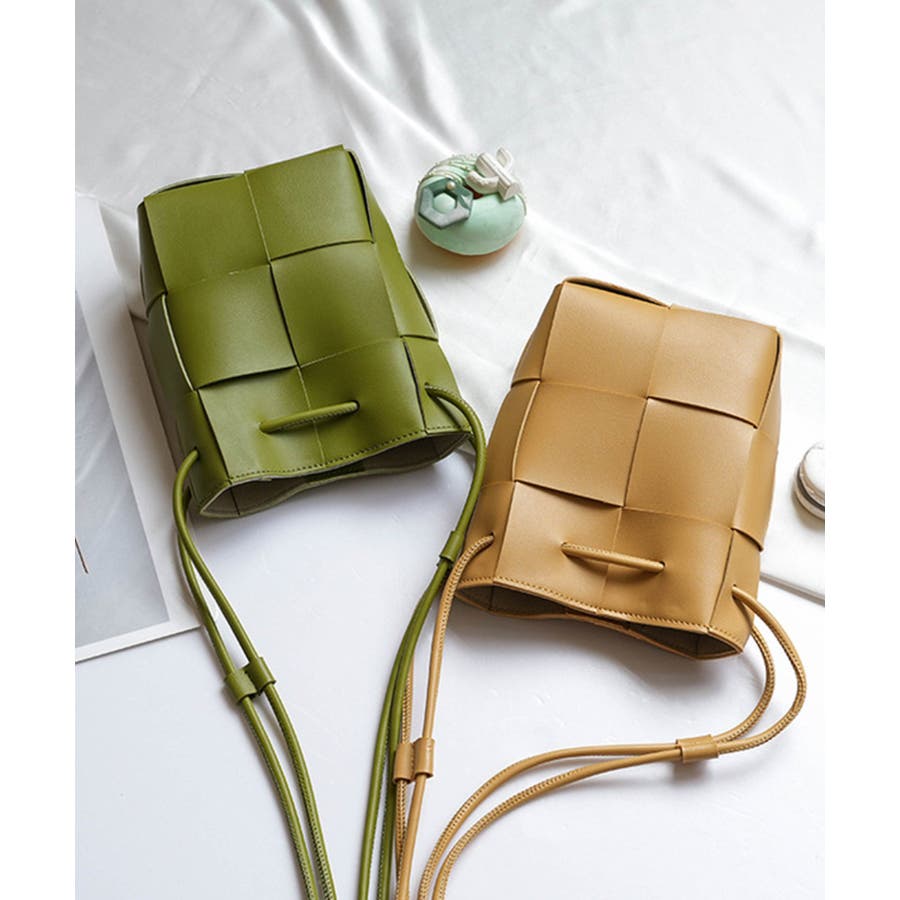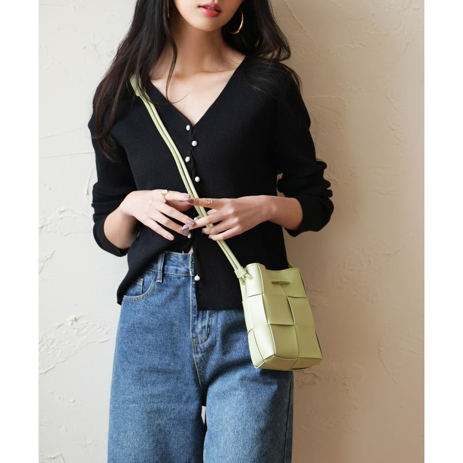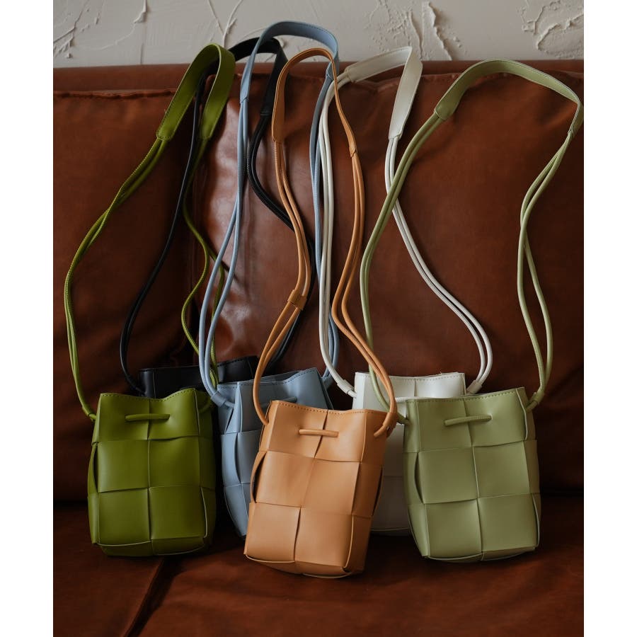 レザーの重なりが美しいメッシュデザイン。高級感もあり大人なスタイルにも映える華やかな存在感がGood。収納のしやすいスクエア型なので、最小限の荷物を入れてミニマルなお出かけを楽しむことができます。