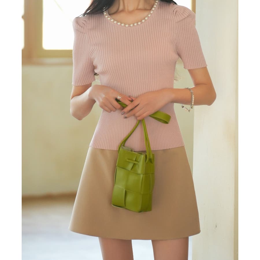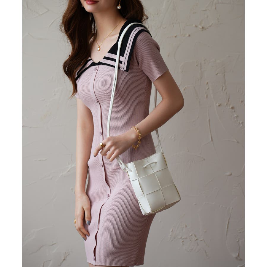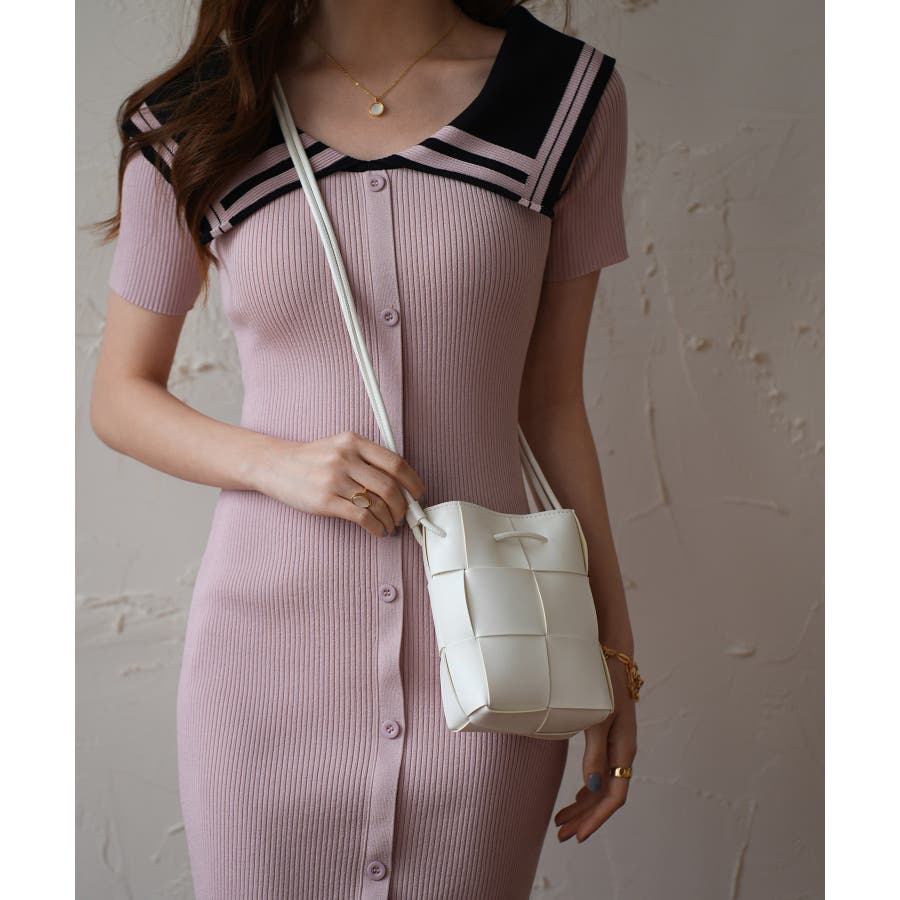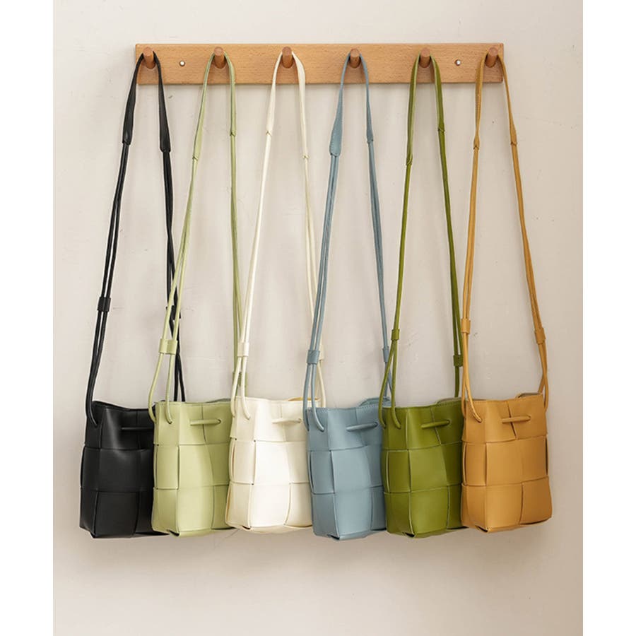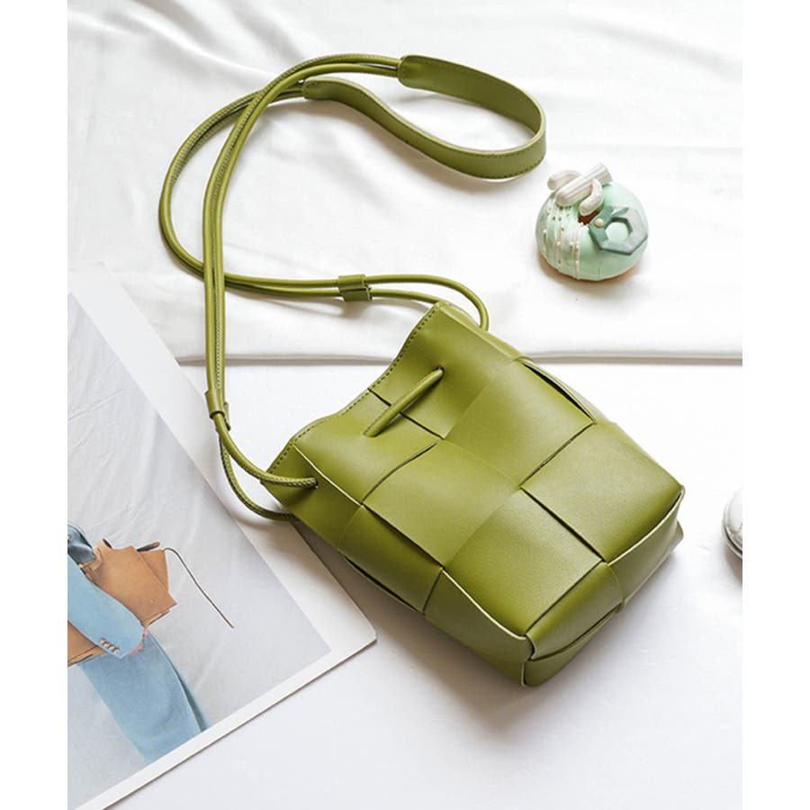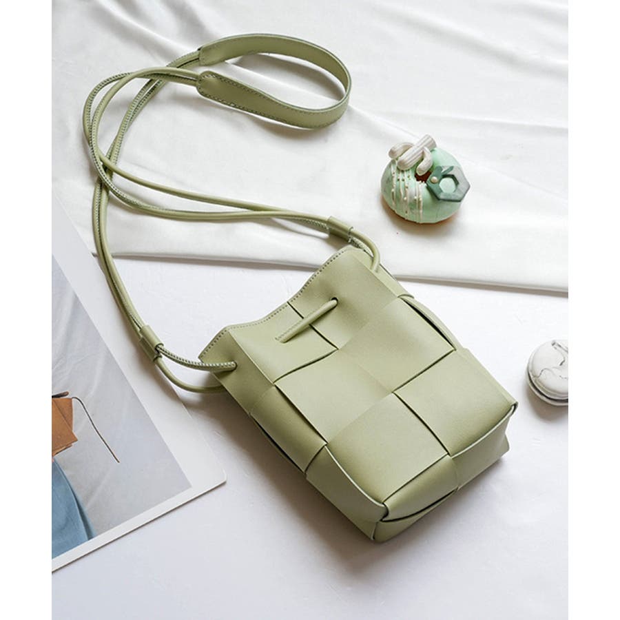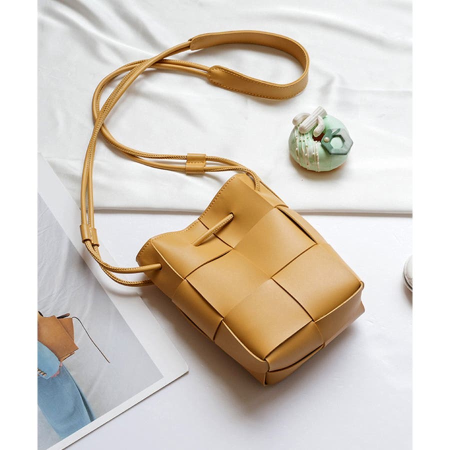 レザーの重なりが美しいメッシュデザイン。高級感もあり大人なスタイルにも映える華やかな存在感がGood。収納のしやすいスクエア型なので、最小限の荷物を入れてミニマルなお出かけを楽しむことができます。