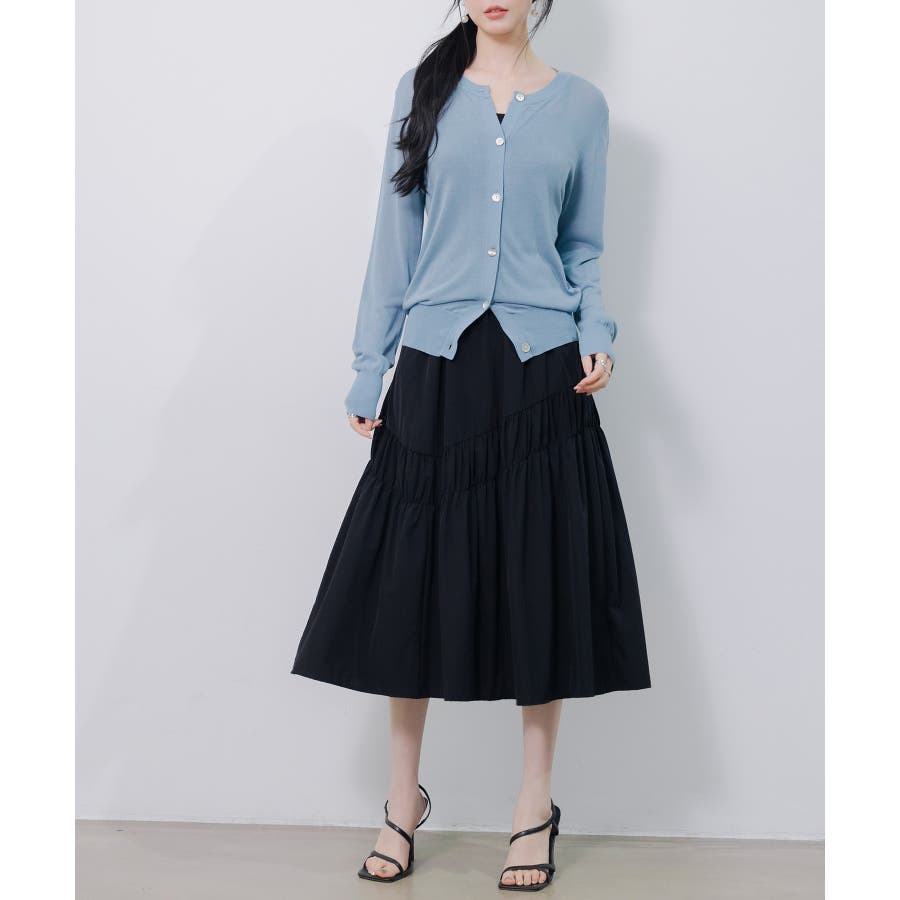 裾をブラウジングして短めの着丈で合わせるのもおすすめです。