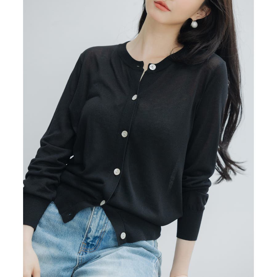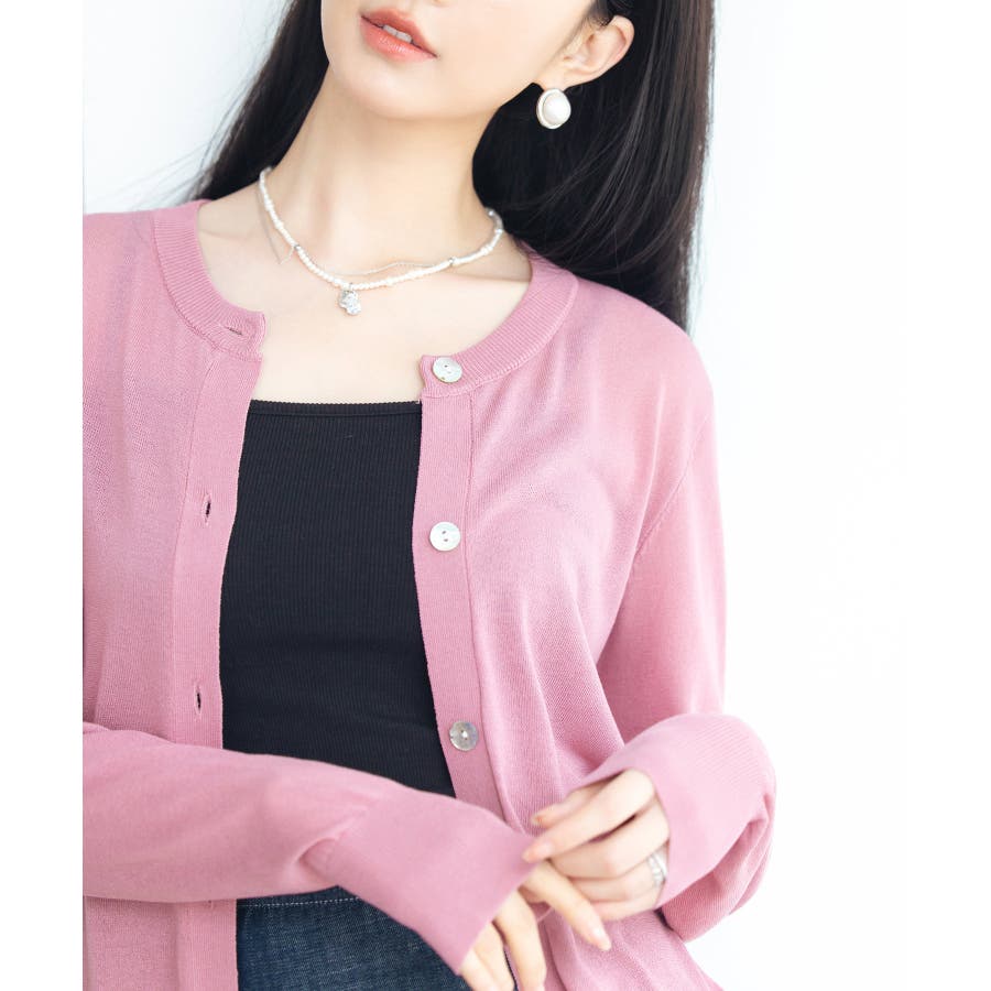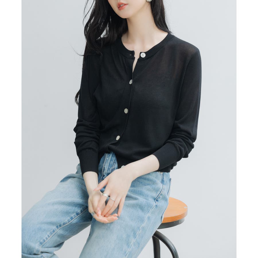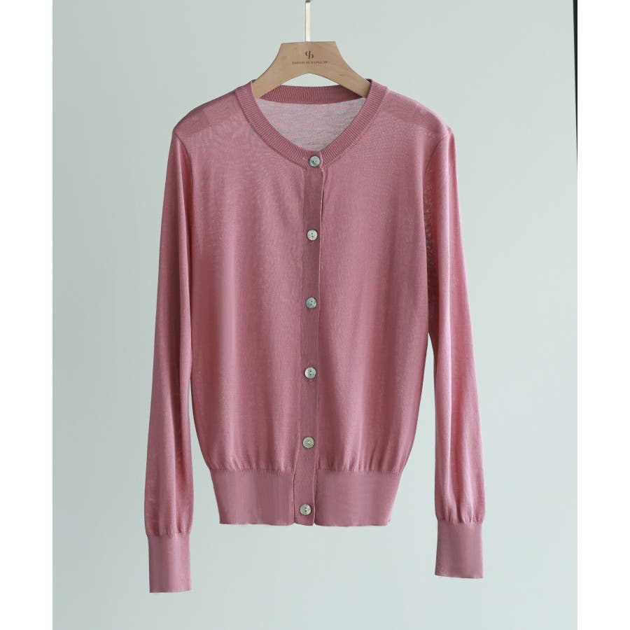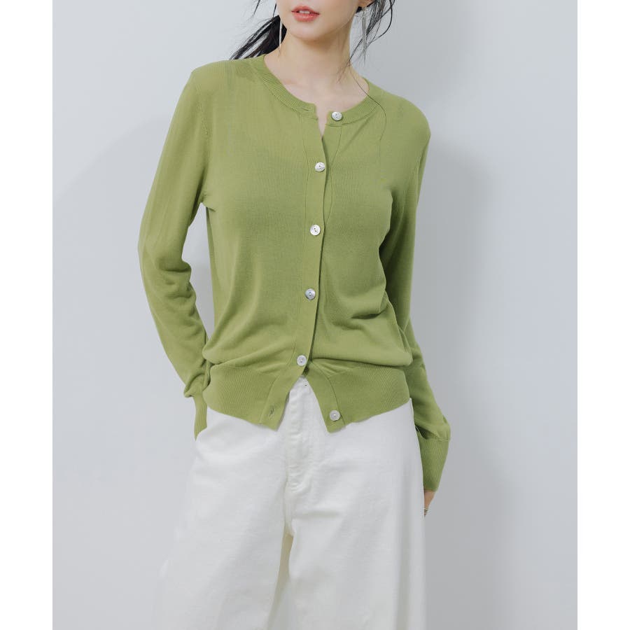涼やかな素材感を定番シルエで仕上げた クルーネックサマーニットカーディガン。