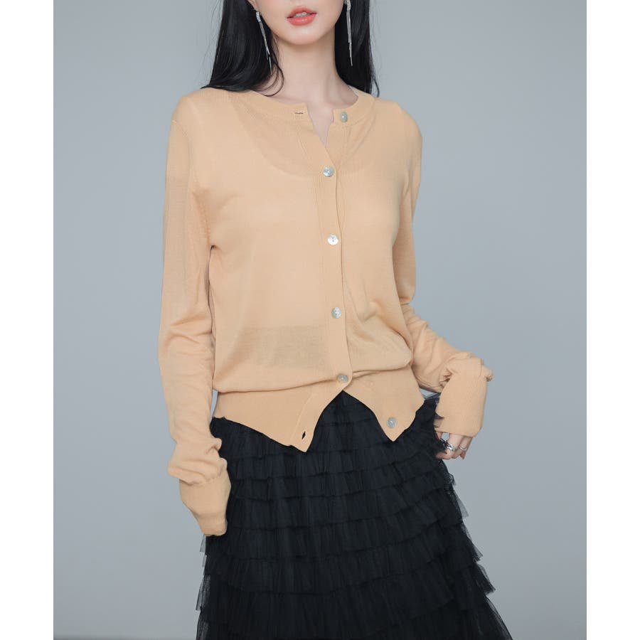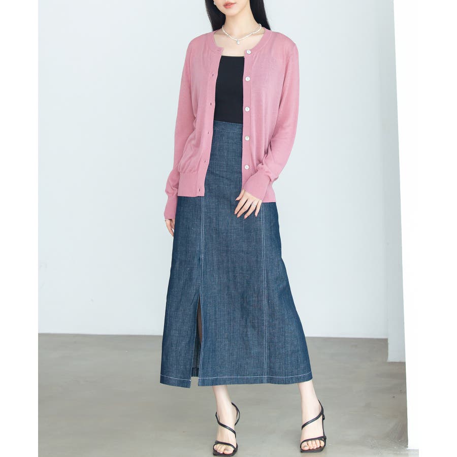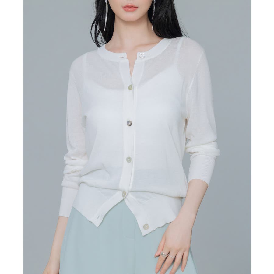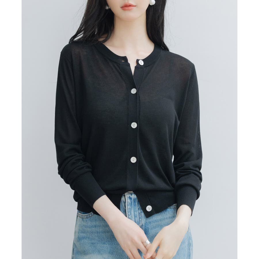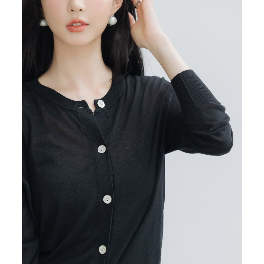涼やかな素材感を定番シルエで仕上げた クルーネックサマーニットカーディガン。