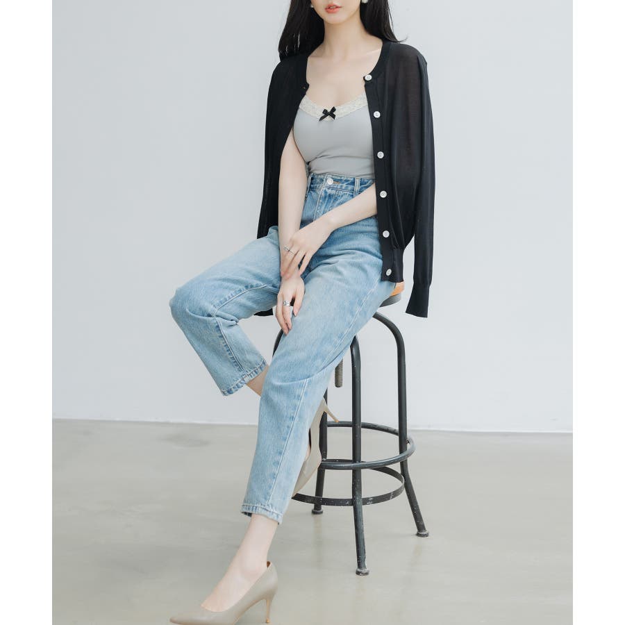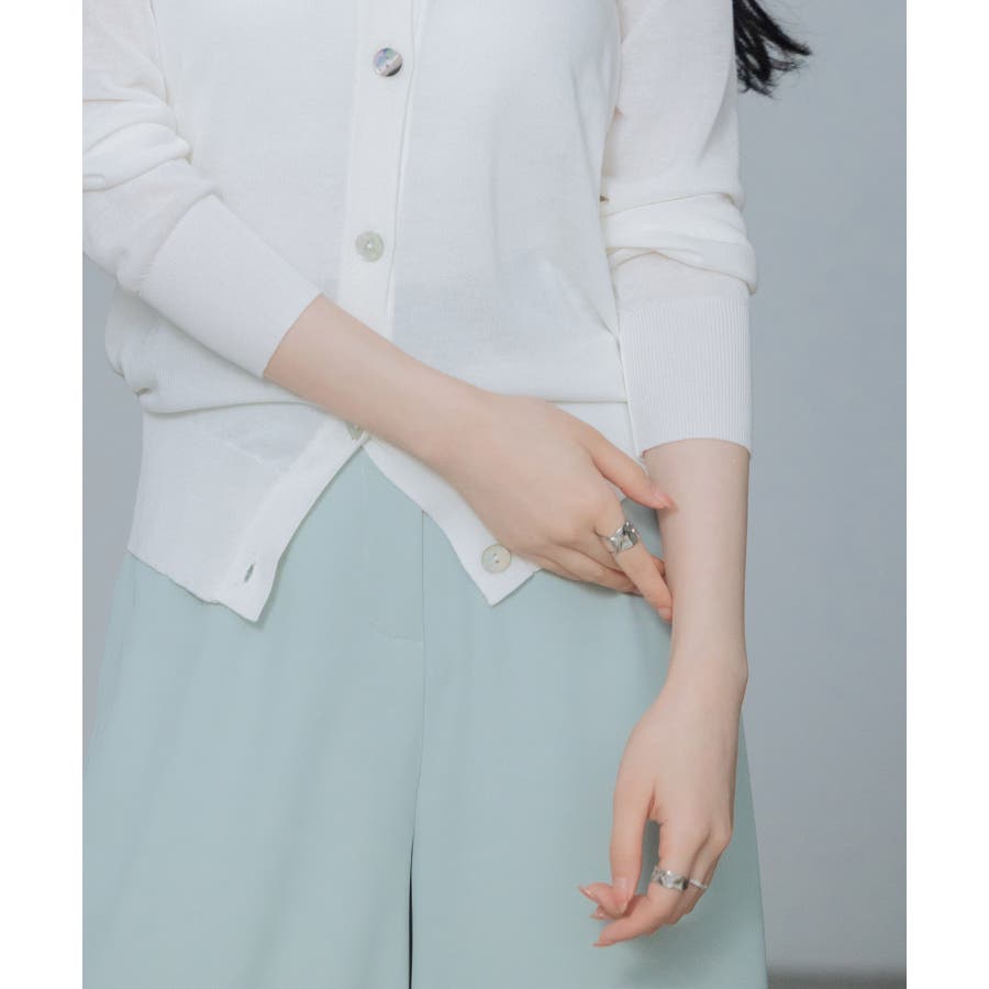 フロントにはこだわりのシェルボタンをあしらい上品で女性らしい雰囲気に。