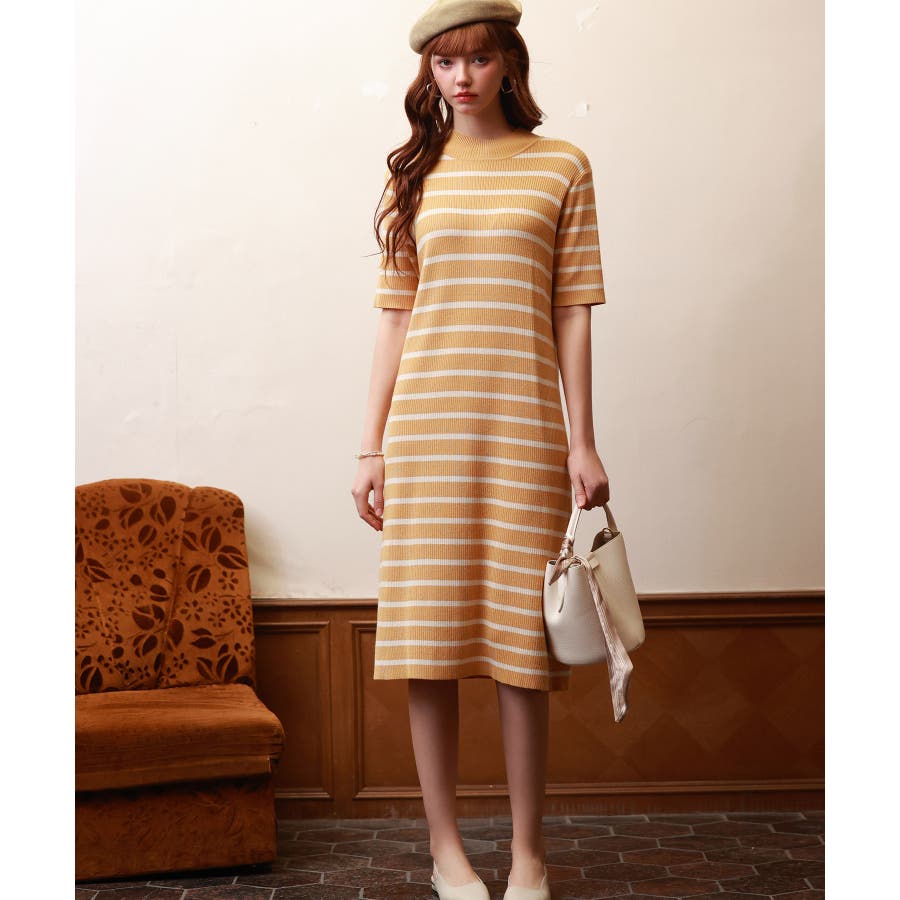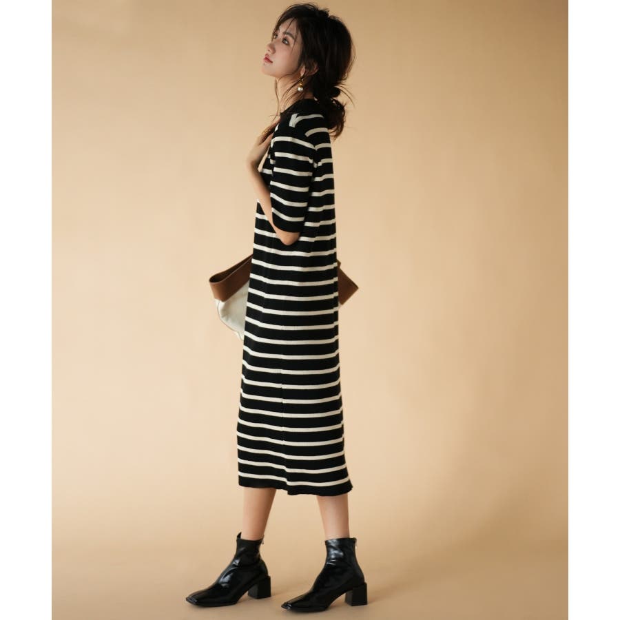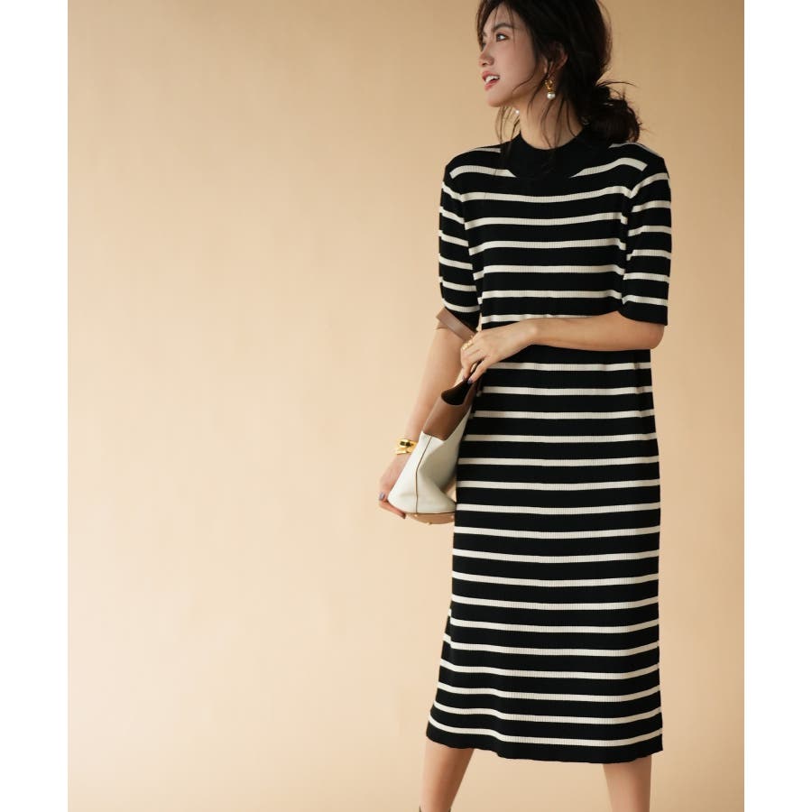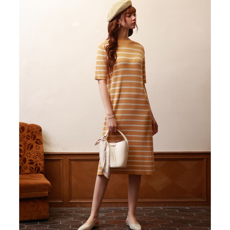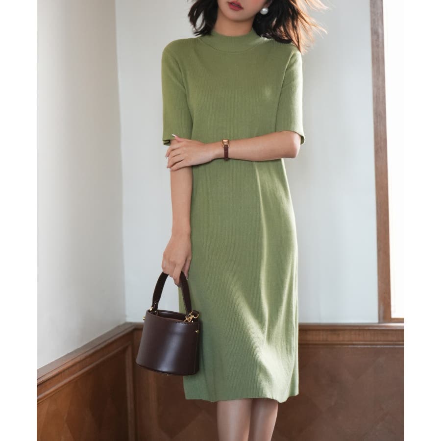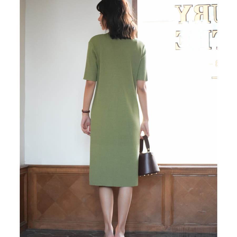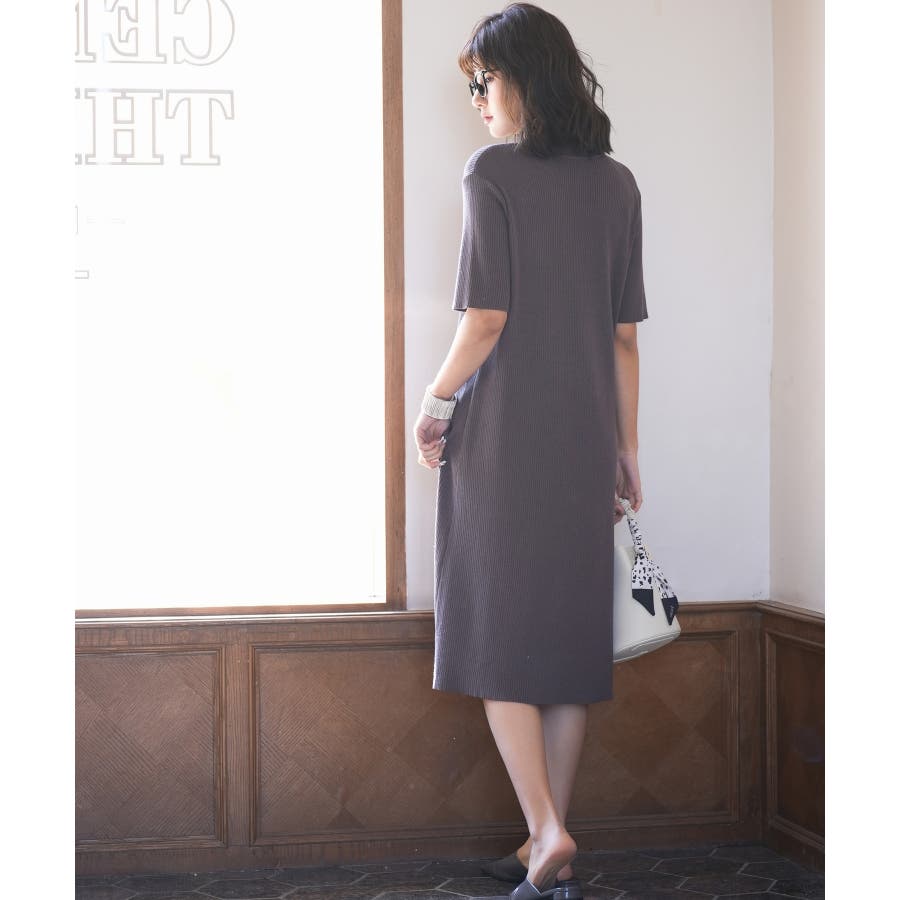 シンプルながらも、ミモレ丈、クルーネックと大人のきちんと感を演出するデザインが魅力。着心地の良さも兼ね備え、デイリーに活躍する一枚です。
