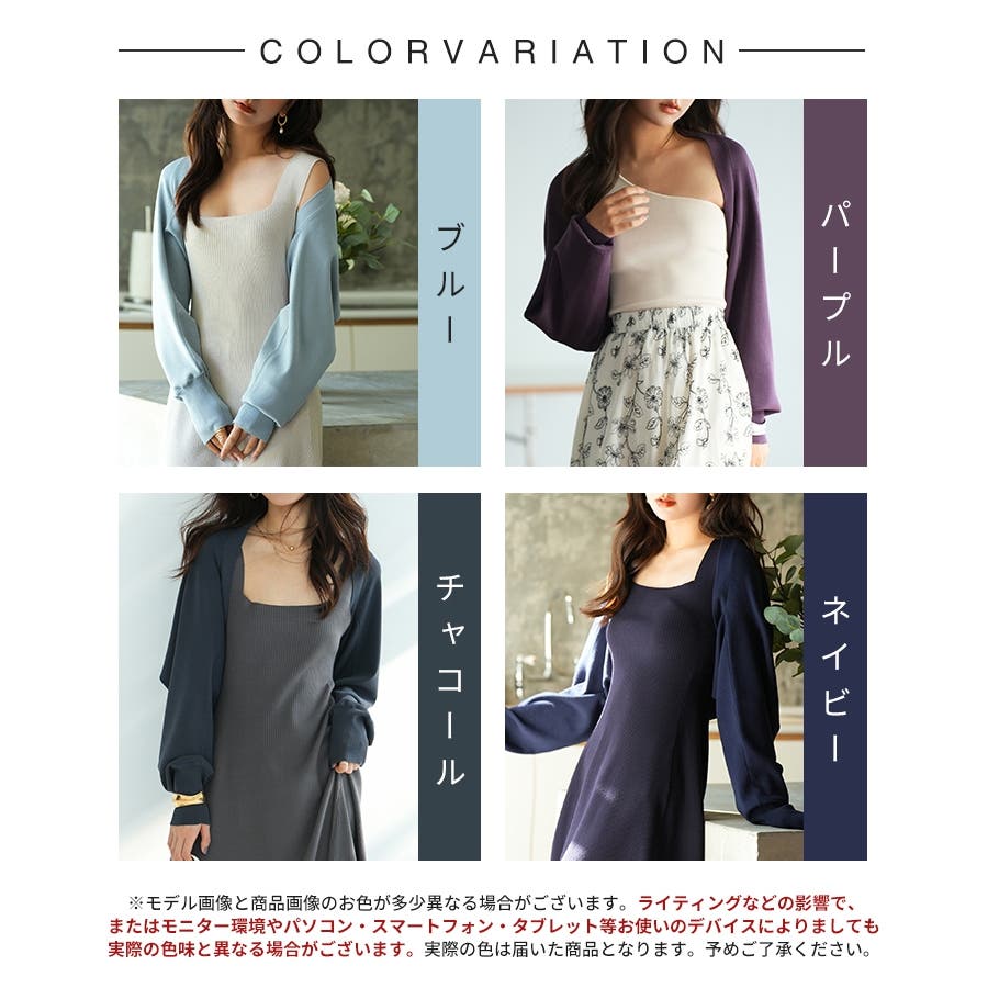 ボレロ丈もちょうどいいので気に入ってます。さん (40代 / 女性 / 身長160~165cm )購入アイテム:サイズ Mサイズカラー パープルいつものトップスサイズ:Sサイズ感:ぴったり