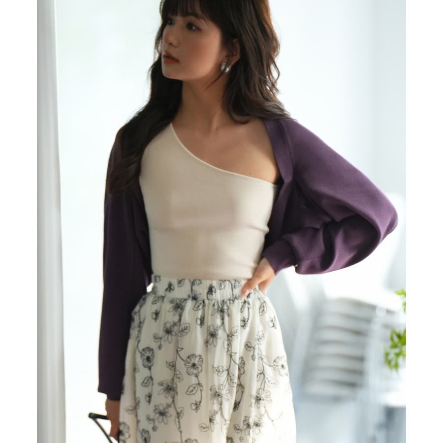 ボレロの特徴でもあるショート丈は、ウエスト位置が高く見えるので足長効果もあり◎
