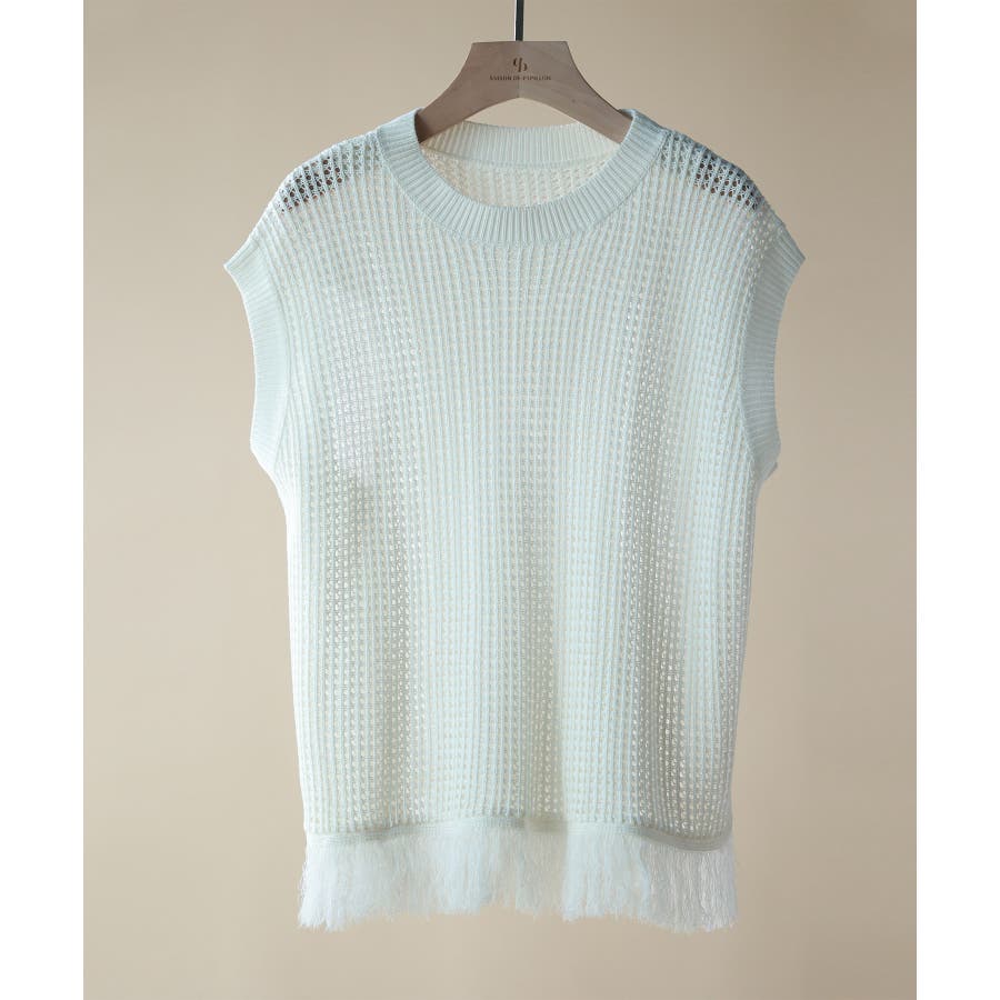 春夏コーデの主役になる。フリンジデザインの透かし編みニット。