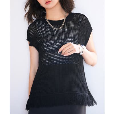 裾にあしらわれたフリンジがアクセントになり、コーデも華やかな印象に。シンプルなボトムに合わせてもサマ見えし着映えも狙えます。